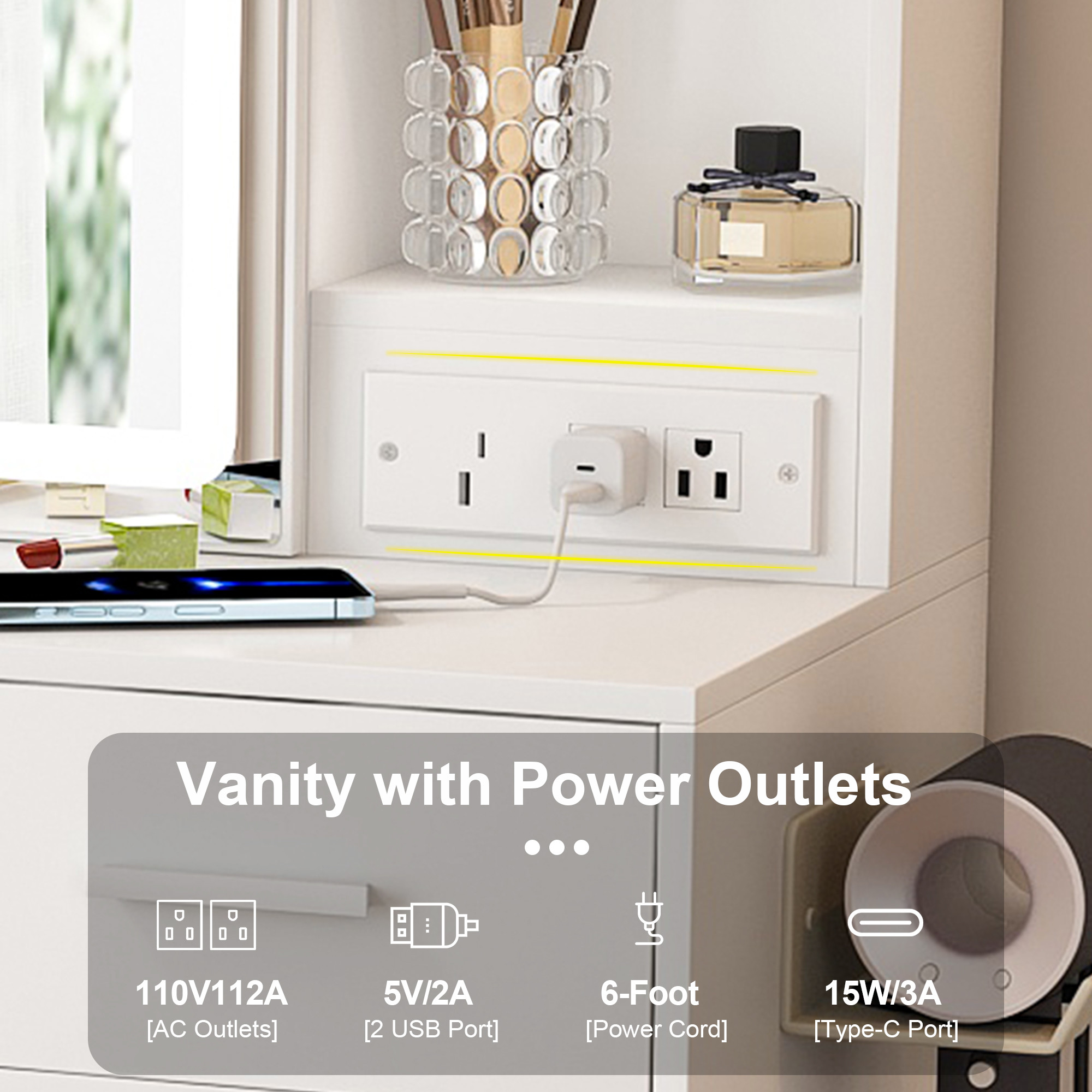 Upgrade your beauty routine with our versatile 24-inch white wood mirrored two drawer vanity table and lights. Add a touch of modern style to your bedroom or bathroom with this fabulous sparkling mirrored vanity table. This table has a manufactured base, which is an unmatchable combination of beauty and durability. Experience a new level of luxury and convenience. Our versatile vanity will cater to your grooming needs, whether it's keeping organized, applying makeup, styling your hair, or achieving your best look every day. 53.74-inch h x 23.62-inch w x 14.17-inch d.