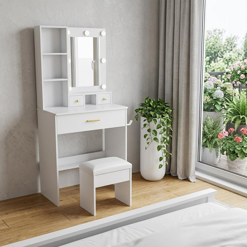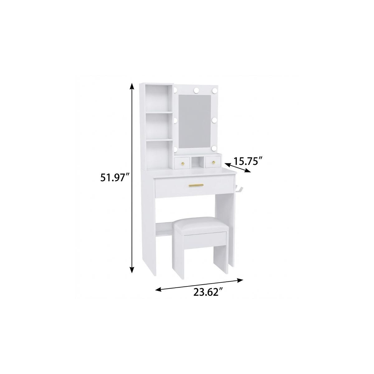 Enhance your room into a visually delightful and highly functional space with this 24-inch white wood lighted mirrored three drawer dresser. This vertical standard dresser has a convenient and wide top area for your getting ready needs and supplies. Equipped with three easy open drawers for practical and good looking clothing storage. The white coloration of this piece is neutral and will blend easily with most any decor. 51.97-inch h x 23.62-inch w x 15.75-inch d.