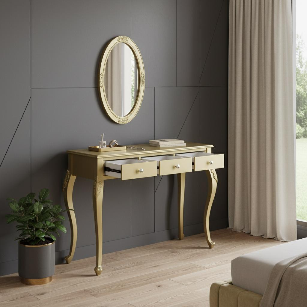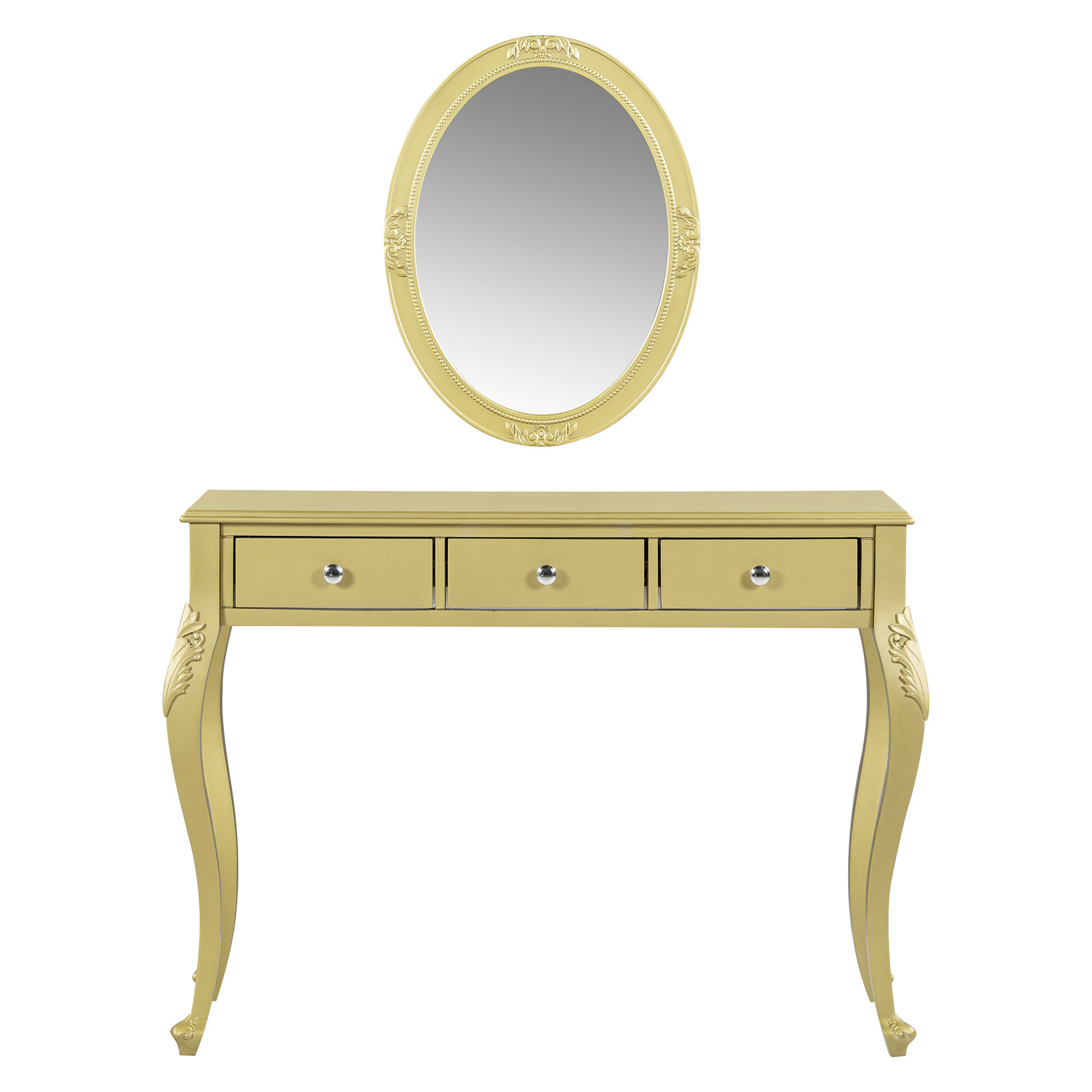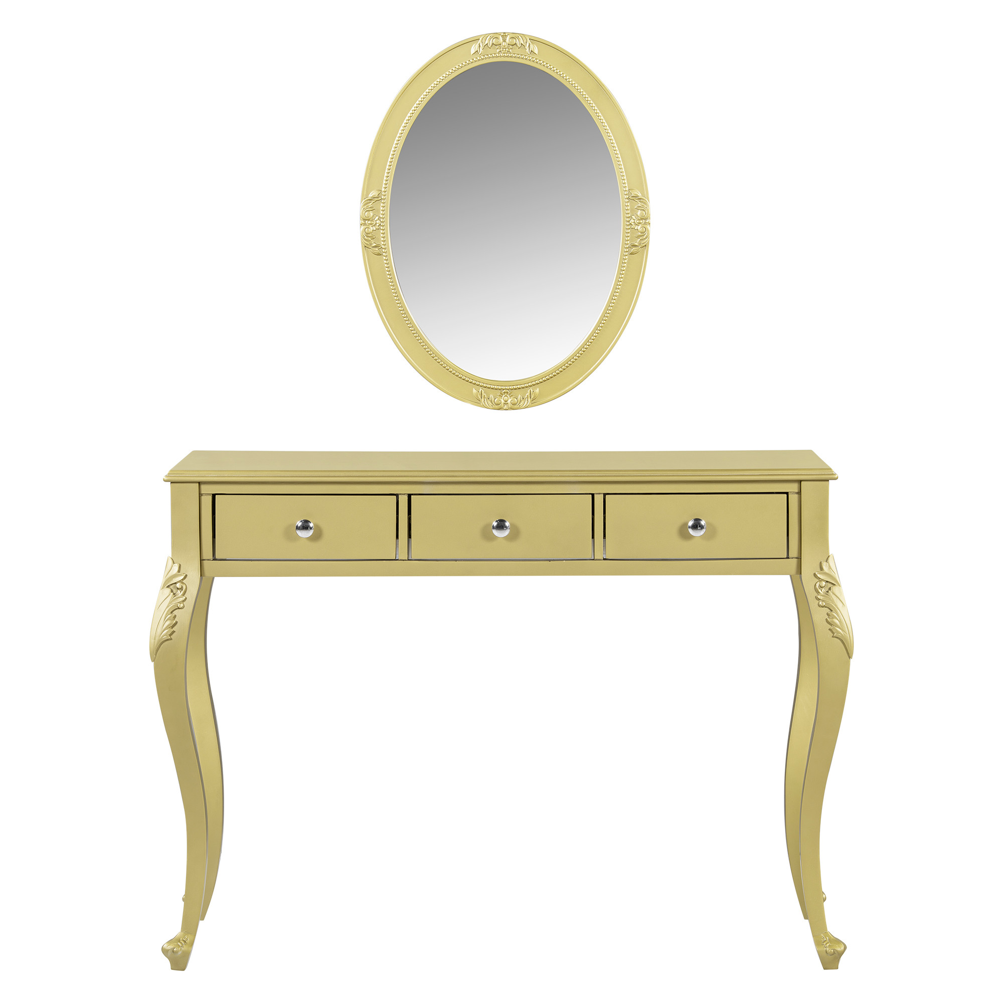 Our 39-inch brown wood mirrored three drawer vanity table is designed to make getting ready a breeze. Add a touch of modern style to your bedroom or bathroom with this fabulous sparkling mirrored vanity table. Have no fear of accidental scratches or spills, this table features a manufactured wood base which is easy to clean and maintain. Upgrade your beauty routine with our high-quality vanity table. Our versatile vanity will cater to your grooming needs, whether it's keeping organized, applying makeup, styling your hair, or achieving your best look every day. 29.70-inch h x 39.40-inch w x 15.70-inch d.