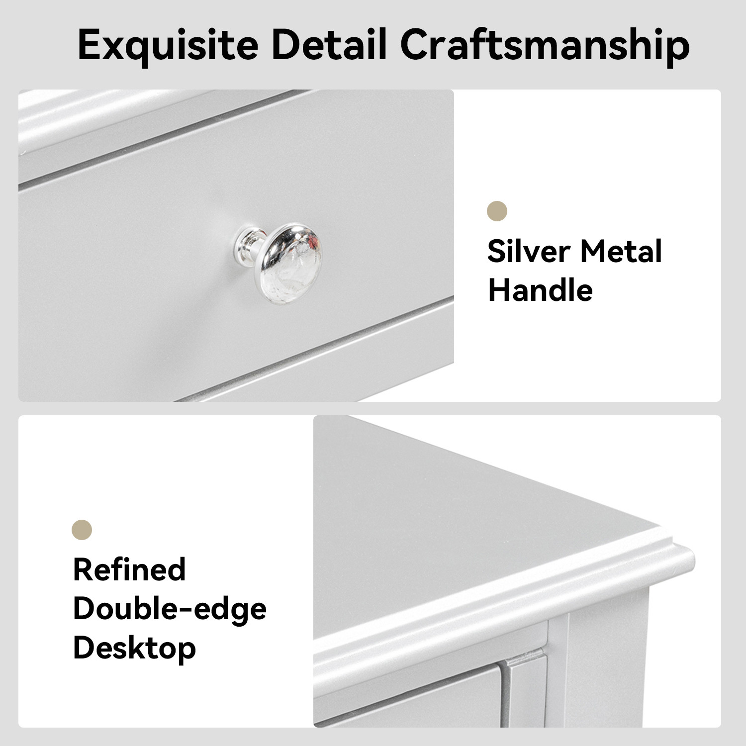 wood mirrored drawer vanity table, mirrored drawer vanity table, silver wood mirrored drawer vanity, wood mirrored drawer vanity, 39" silver wood mirrored drawer |