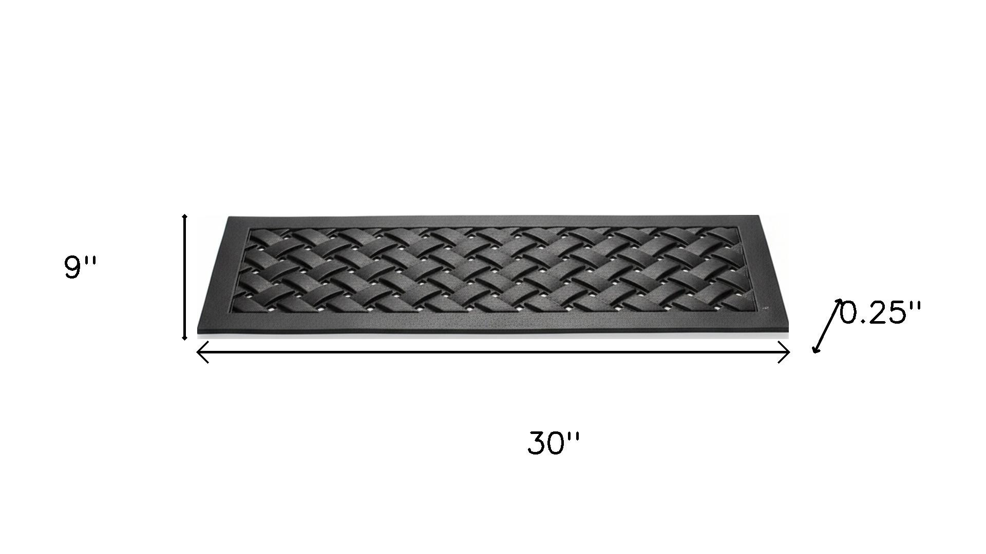 Ready to withstand heavy foot traffic, this set of six black lattice outdoor rubber stair treads is an ideal option for outdoor stairs to your home or business. Crafted from a mix of heavy duty rubber products, these non skid mats feature a basket weave lattice weave and are a decorative and functional way to make your stairs safer and easier to manage. They are suitable for use indoors or outdoors so not only ideal for giving added traction to staircases, but also work on steps to a sunken tub, or by the pool, spa, or sauna 9.00-inch h x 30.00-inch w x 0.25-inch d.