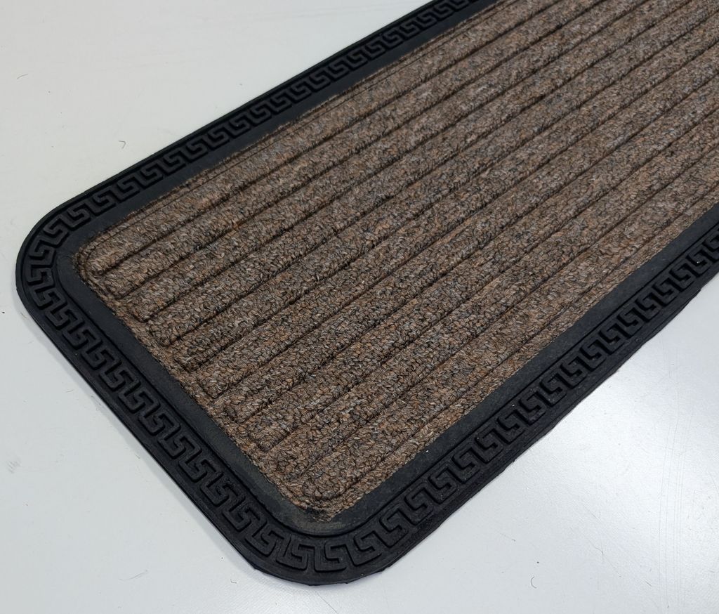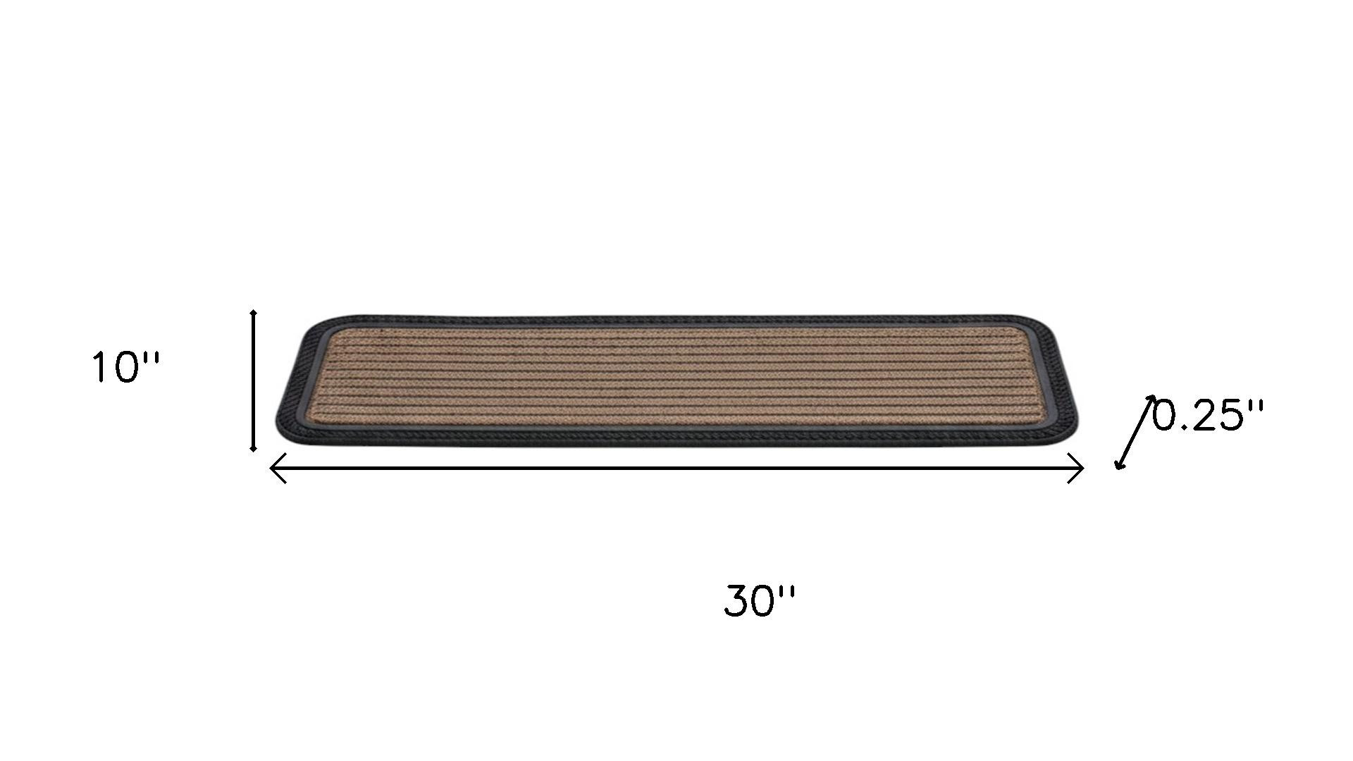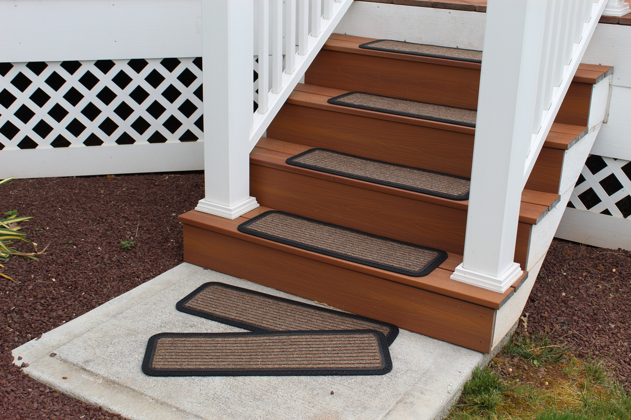 Ready to withstand heavy foot traffic, this set of six black and natural polypropylene and rubber stair treads is an ideal option for the front door, garage, pool area, basement, or entrance way of your home or business. Crafted from a mix of polypropylene and rubber, these non skid mats feature texture and are a decorative and functional way to make your stairs safer and easier to manage. They are suitable for use indoors or outdoors so not only ideal for giving added traction to staircases, but also work on steps to a sunken tub, or by the pool, spa, or sauna 10.00-inch h x 30.00-inch w x 0.25-inch d.