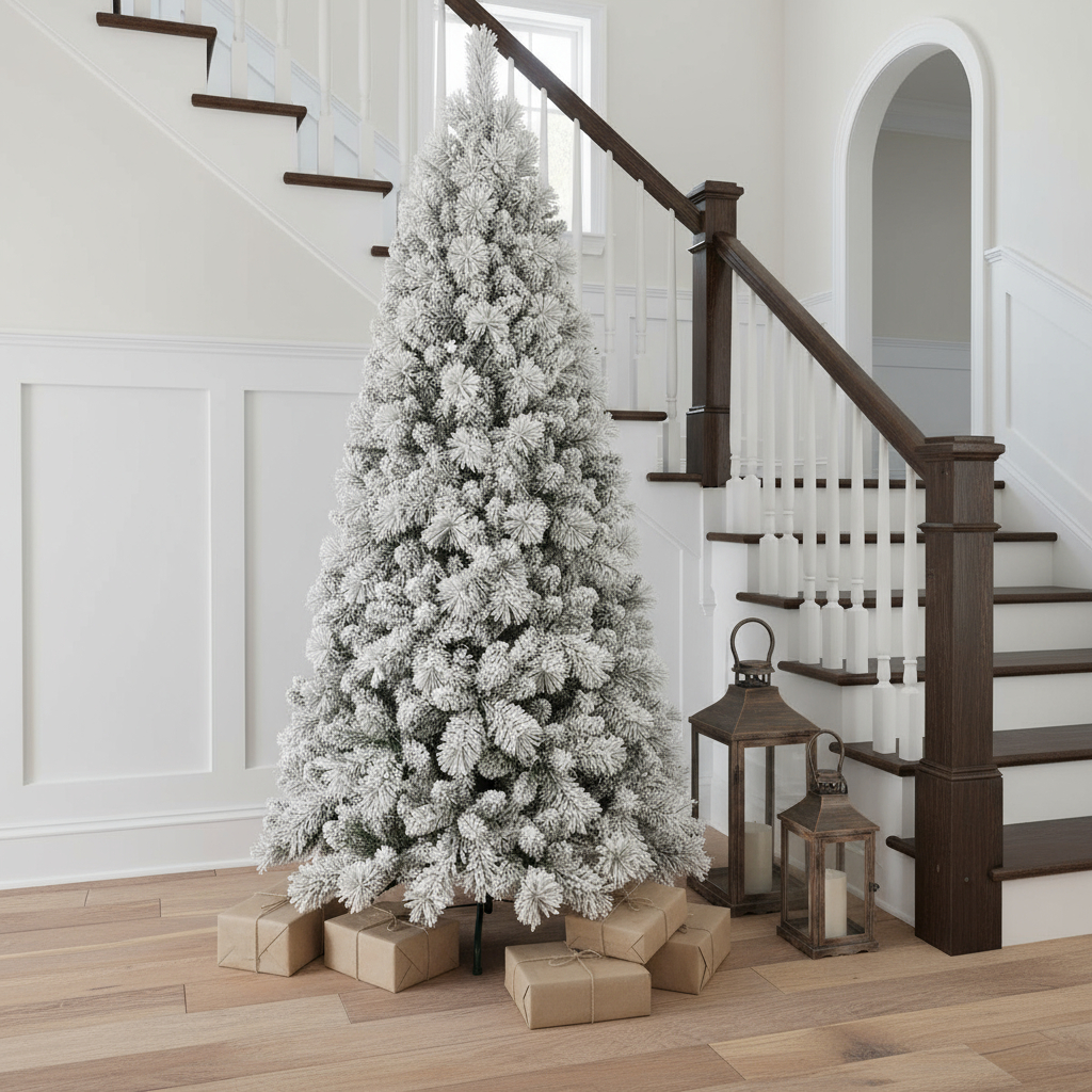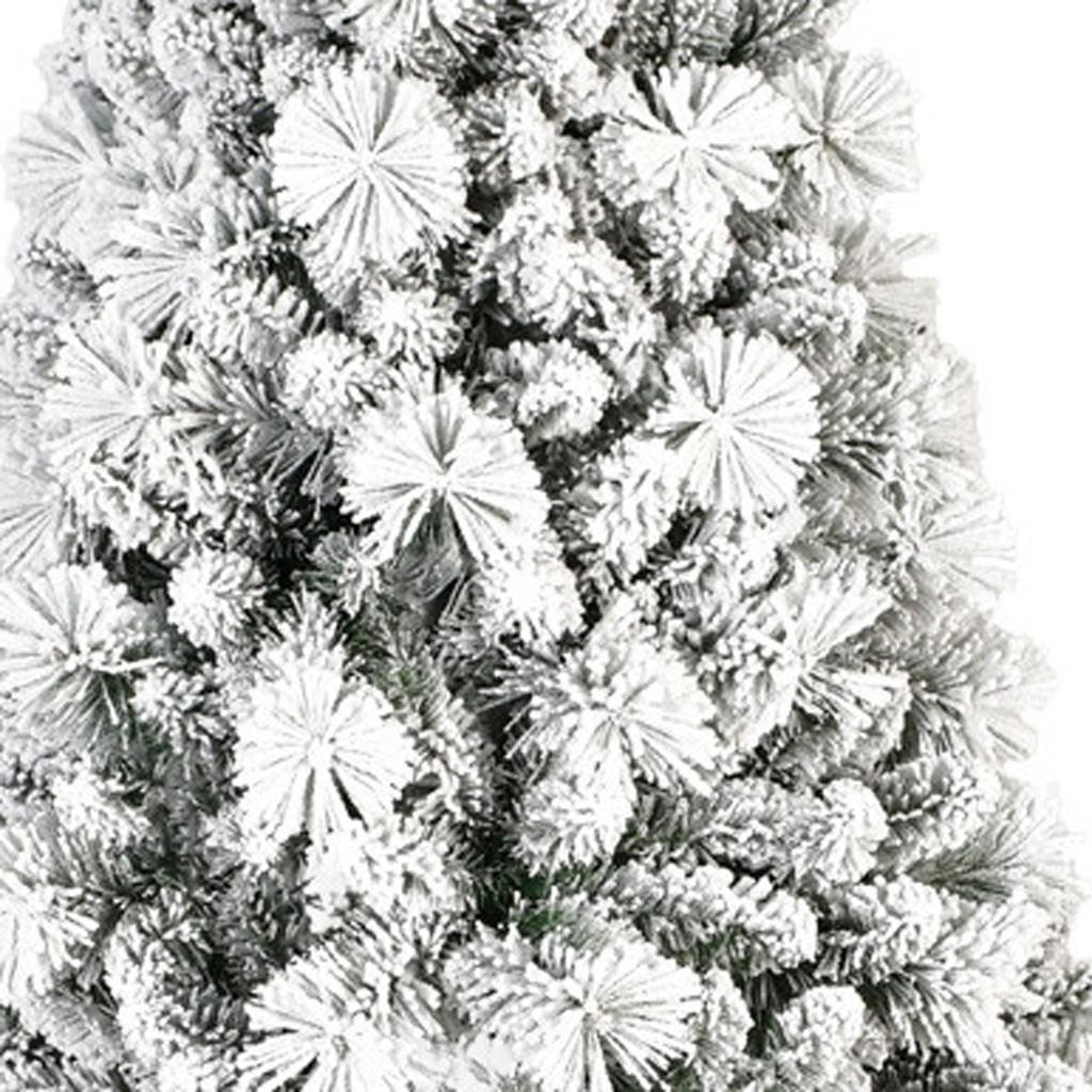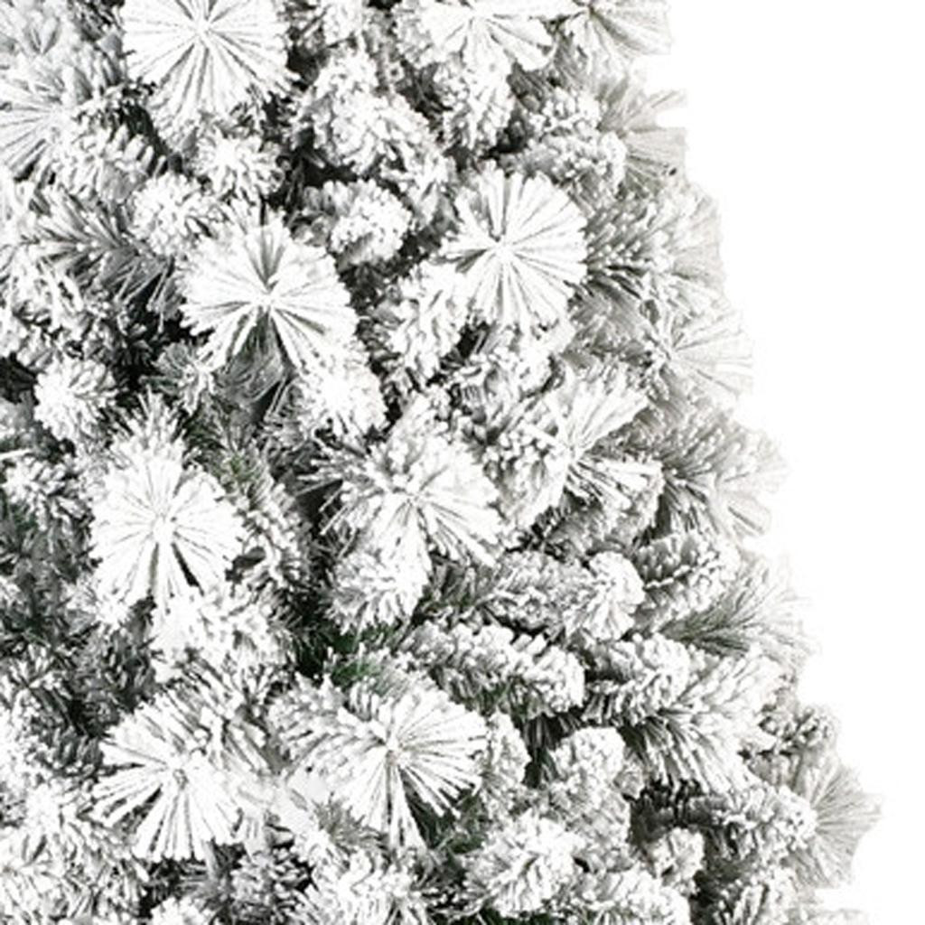 Add some festive spirit to your space with this designer style Christmas tree. This 7-foot artificial pine features a stunning flocked design that mimics the beauty of freshly fallen snow. Easy to set up and easy to store, this tree promises longevity year after year. The thick branches and slender shape provides a modern silhouette that is easy to decorate and adds some sophisticated style to your space. This easy to put together tree uses wire memory to auto fluff and help your tree to look full and as realistic as possible. Add some festive cheer and unique style to your space with this modern white Christmas tree.84.00-inch h x 47.00-inch w x 47.00-inch d.