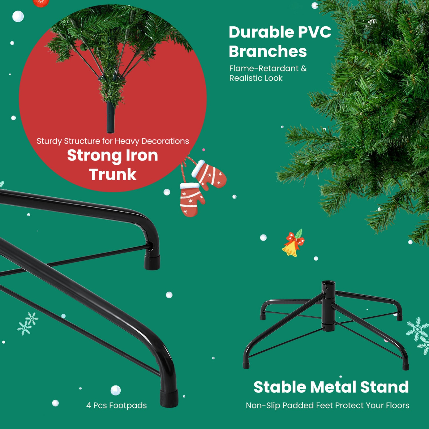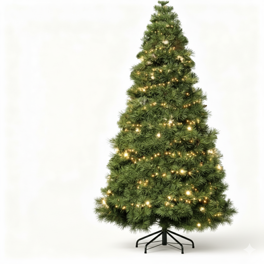 Add some festive spirit to your space with this christmas tree. This beautifully crafted artificial spruce tree features lush green needles that create a realistic appearance. Designed with regular fullness, it provides ample space for your favorite ornaments and decorations. With 347 branch tips and 120 warm LED lights included, this festive tree adds a warm and inviting glow to any setting. A sturdy tree stand is included to ensure stability and support for your delightful display. This tree adds charm and warmth to any holiday gathering. 108.00-inch h x 58.00-inch w x 58.00-inch d.