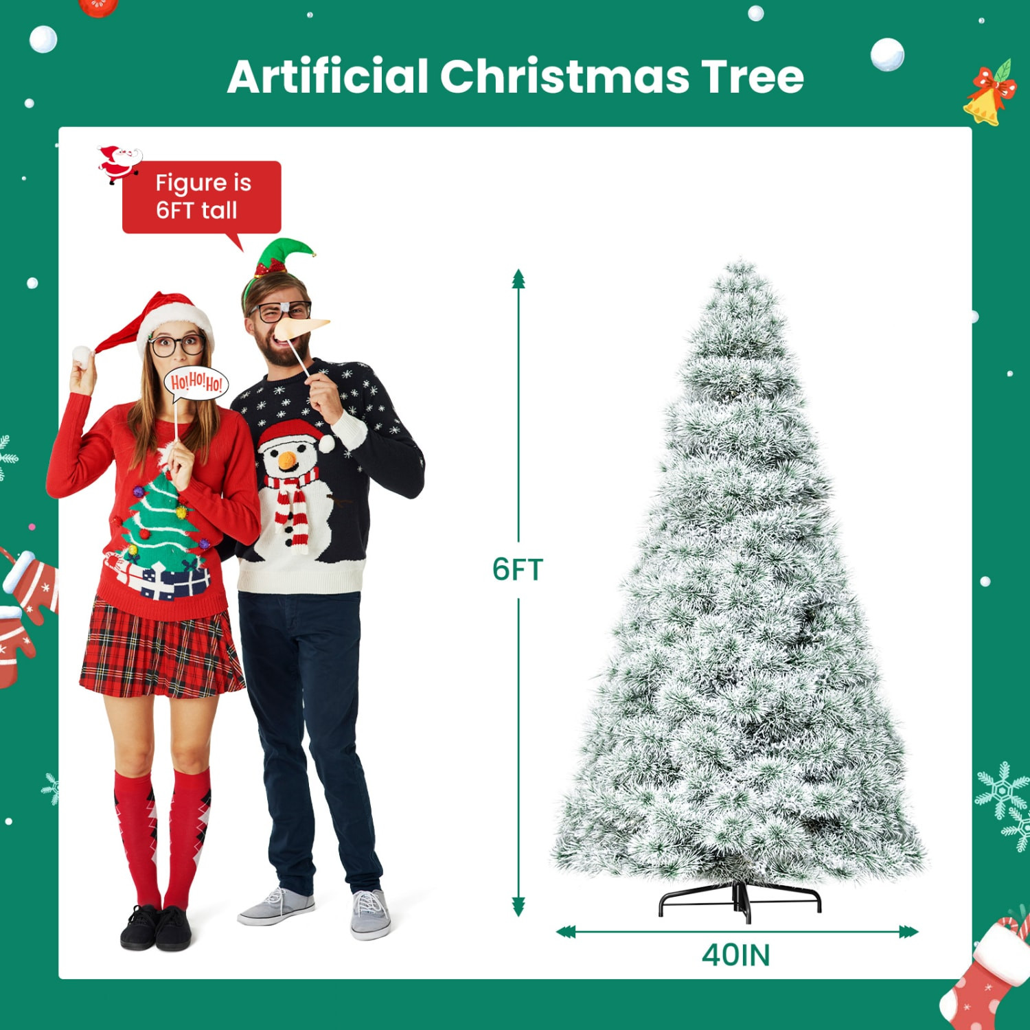 Add some festive spirit to your space with this Christmas tree. This stunning pre-lit artificial tree boasts a beautiful green needle color that is coated with white faux snow flocking, creating a pristine and elegant winter wonderland appearance. Its regular fullness shape offers a classic profile, making it a perfect centerpiece for holiday gatherings. Equipped with built-in lights, it illuminates your home with a warm glow, enhancing the overall ambiance. With 347 branch tips and 120 warm LED lights included, this festive tree adds a warm and inviting glow to any setting. With a sturdy tree stand included, it provides reliable support throughout the season. 72.00-inch h x 40.00-inch w x 40.00-inch d.