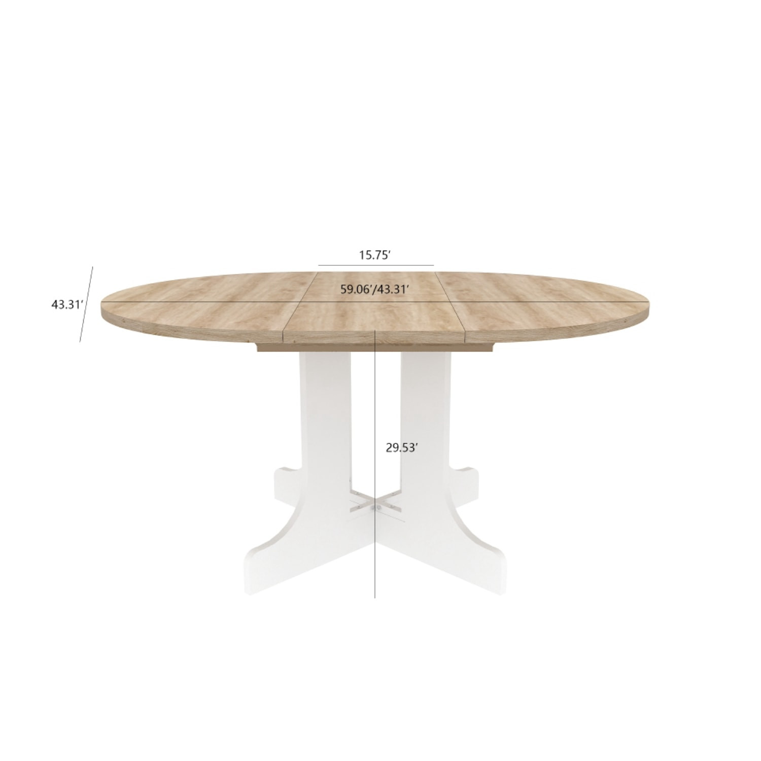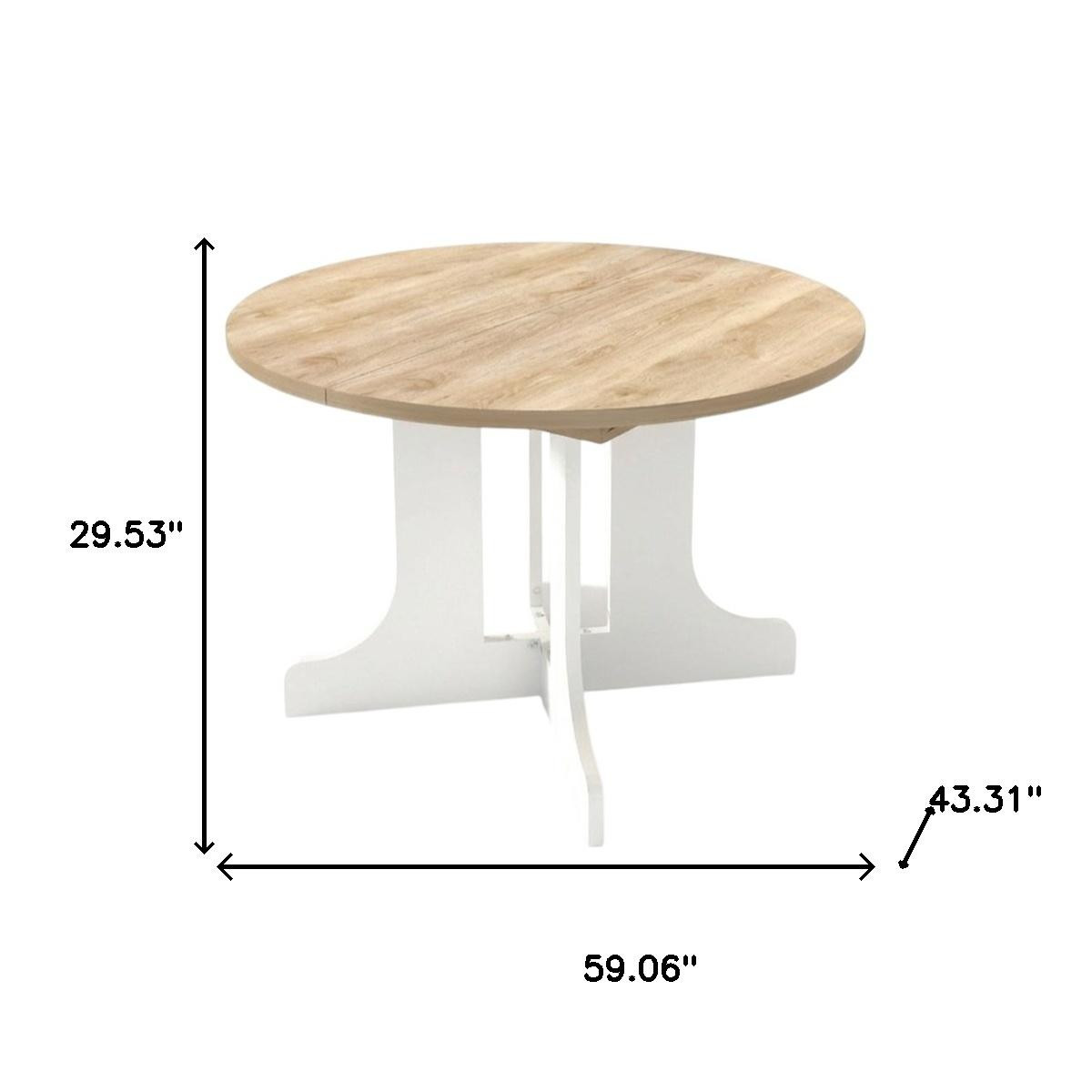 Make a statement with the 59-inch brown and white wood oval cross legs coffee table and infuse a dash of character and personality into your space. A white manufactured wood frame is finished off with a brown solid and manufactured wood top that is the epitome of quality construction and design. This oval table is an updated take on a classic. If you're looking for something that can fit into a living area, bedroom, or office, this coffee table is for you. 29.53-inch h x 59.06-inch w x 43.31-inch d.