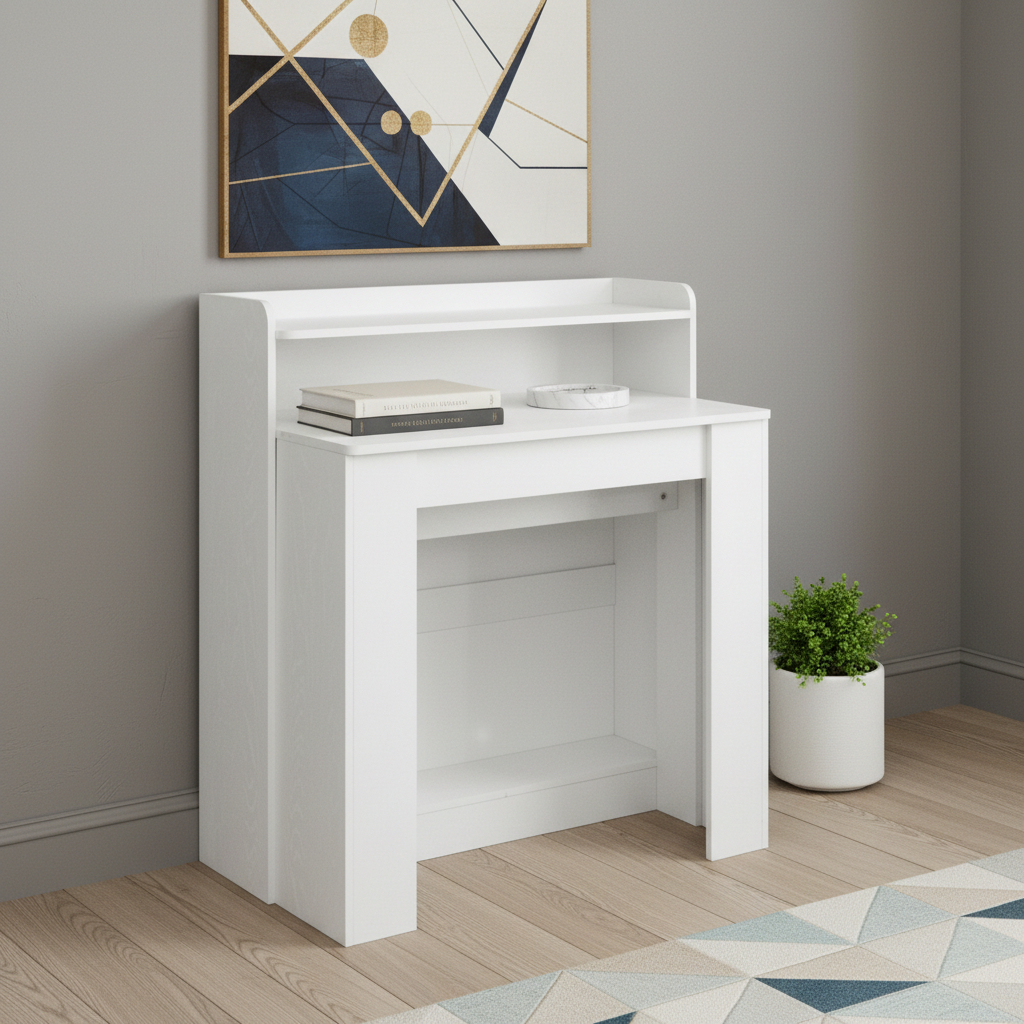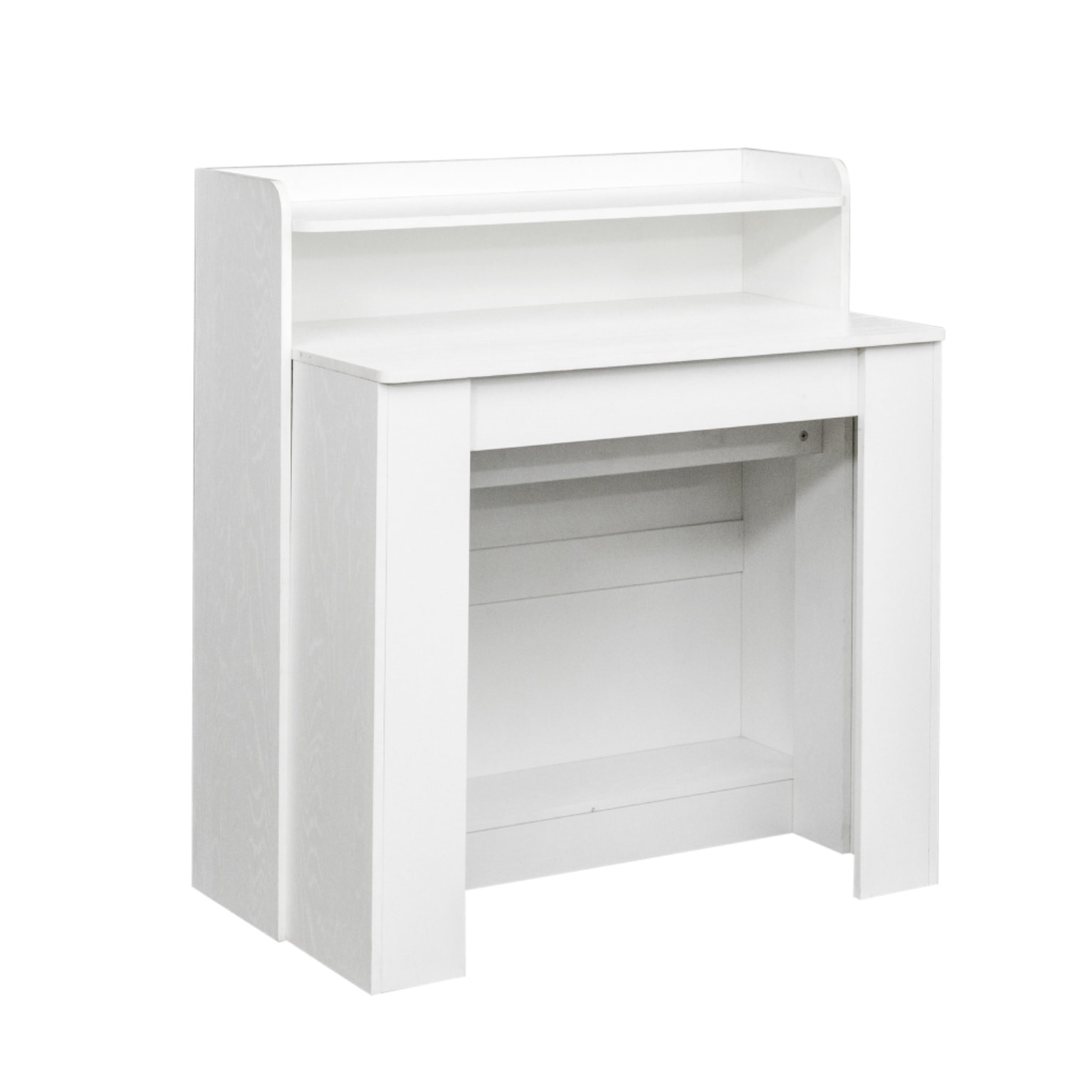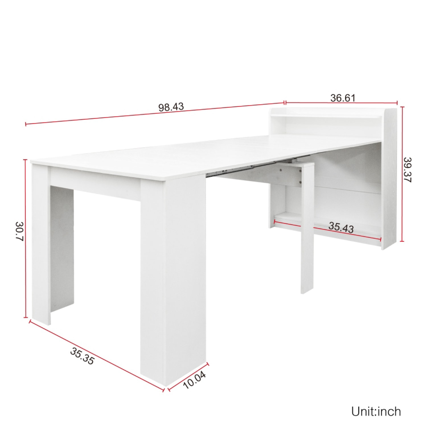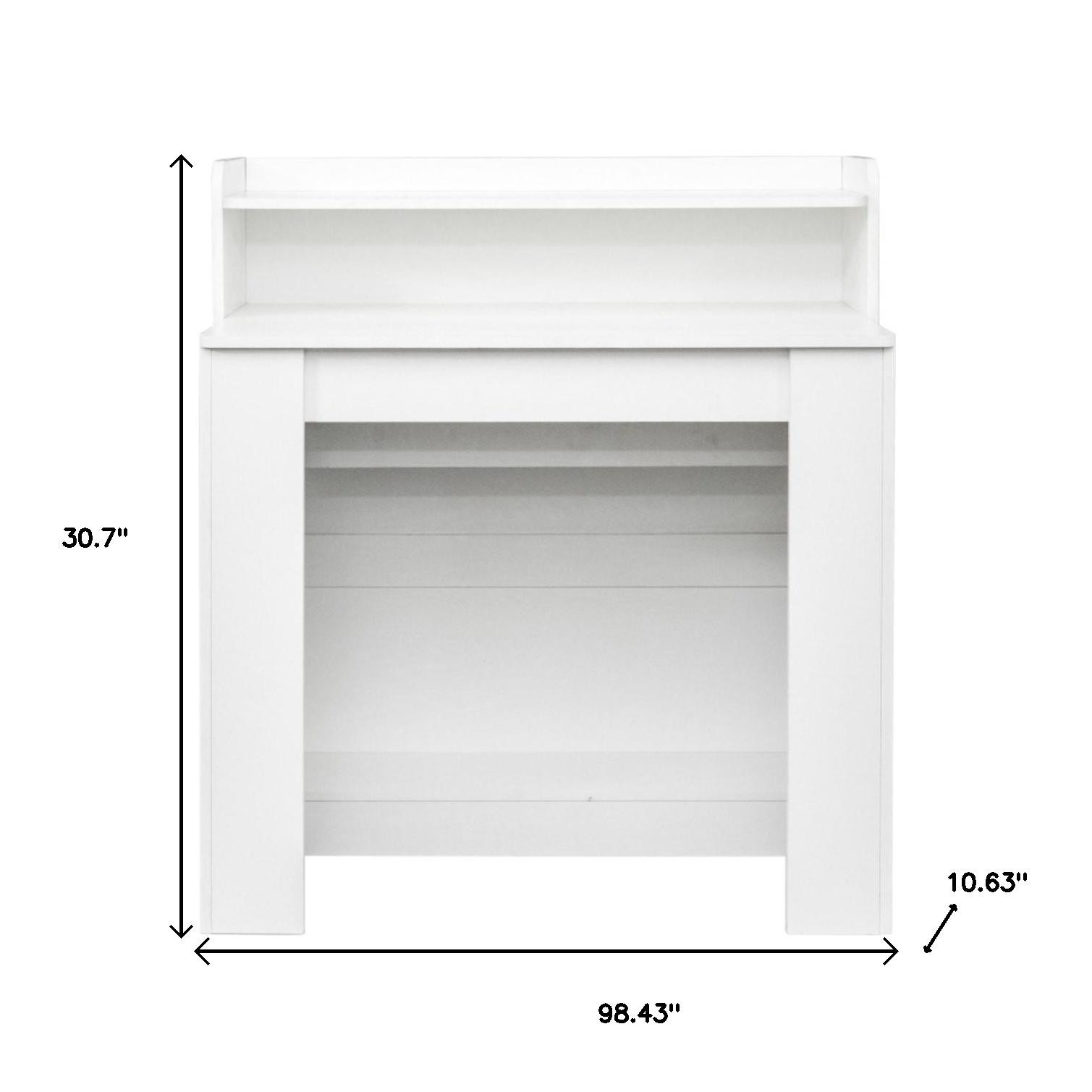 This stylish 98-inch white wood floor shelf coffee table is sure to inspire compliments no matter where it sits. A white coloration runs throughout this good looking manufactured wood and solid and manufactured wood table. This rectangular table is an classic yet updated way to accent your room. If you're looking for something that can fit into a living area, bedroom, or office, this coffee table is for you. 30.70-inch h x 98.43-inch w x 10.63-inch d.