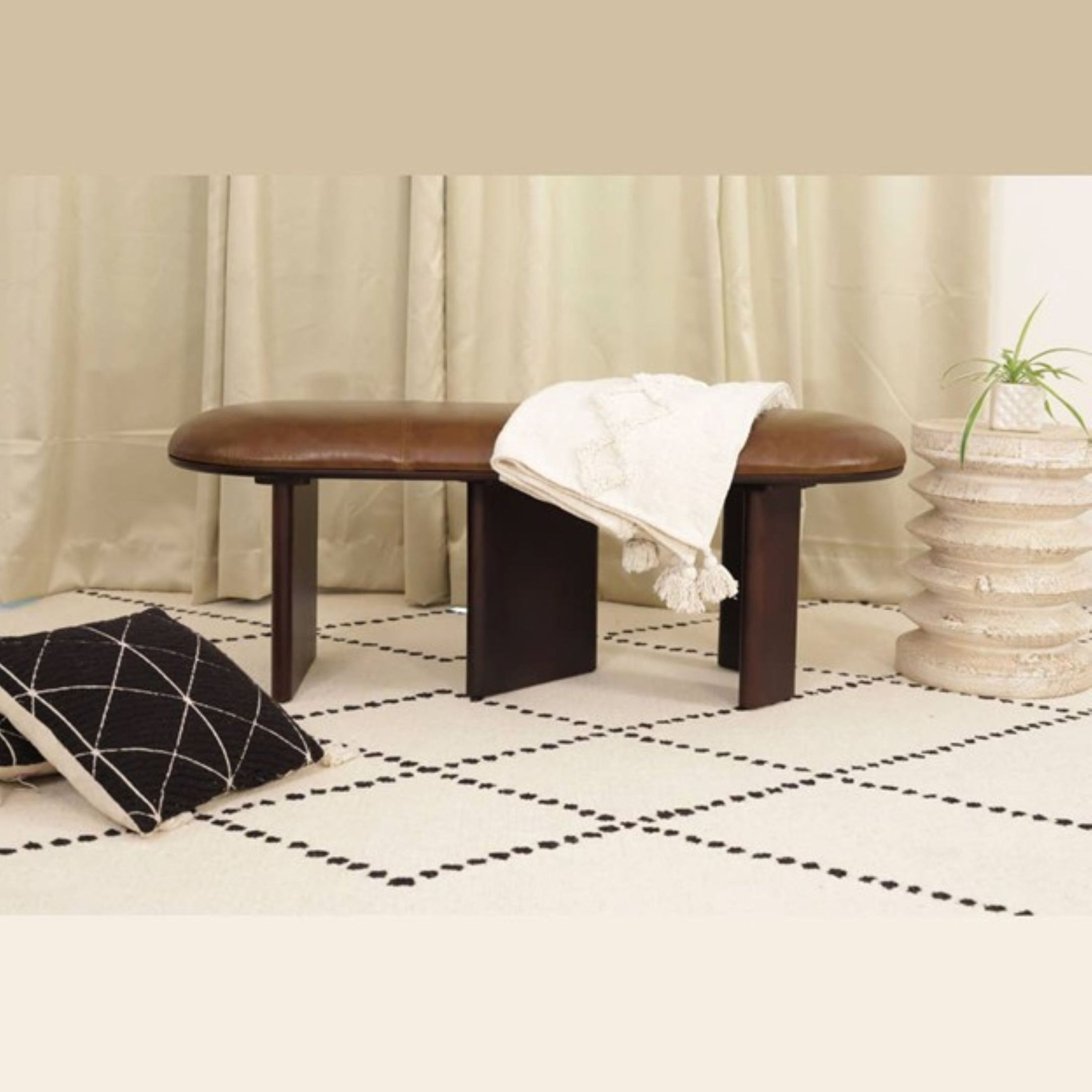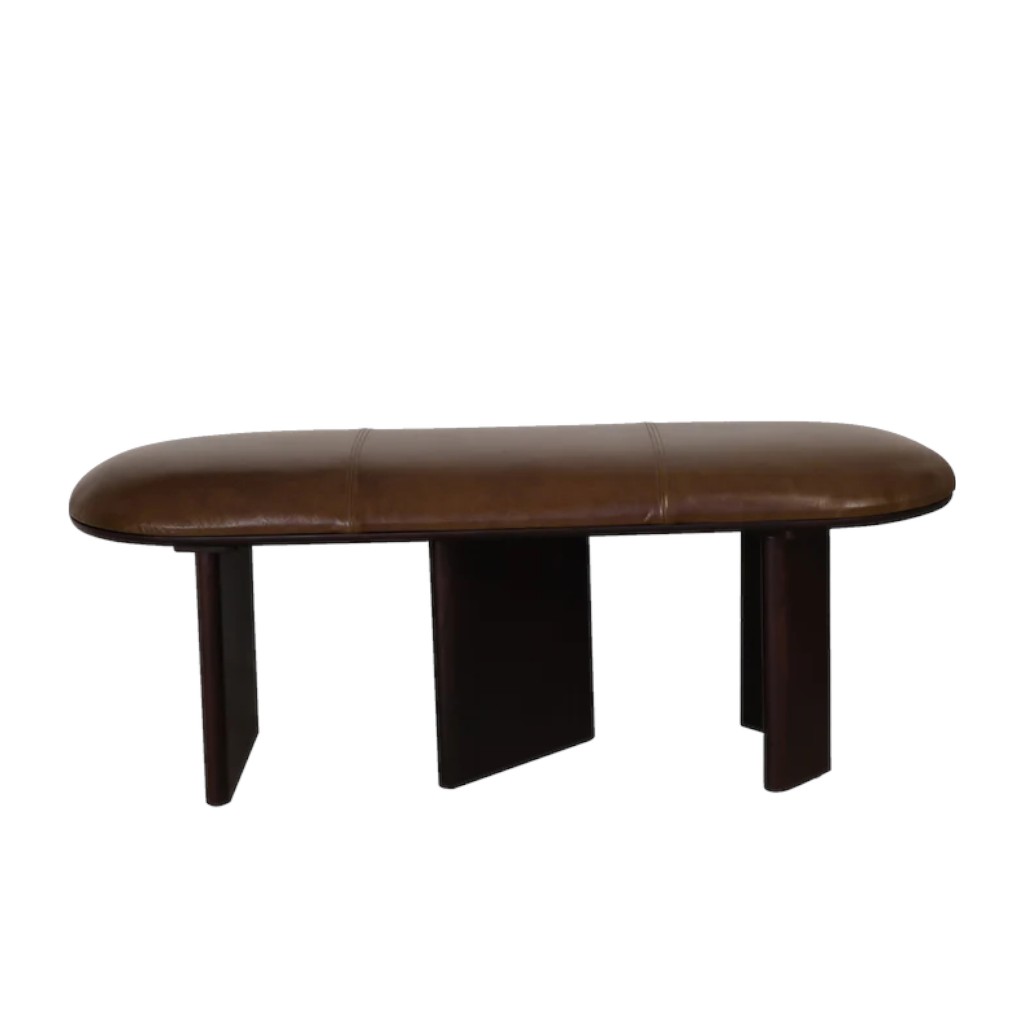 Genuine Leather Bench, Wood and Leather Bench, Solid Wood Bench |