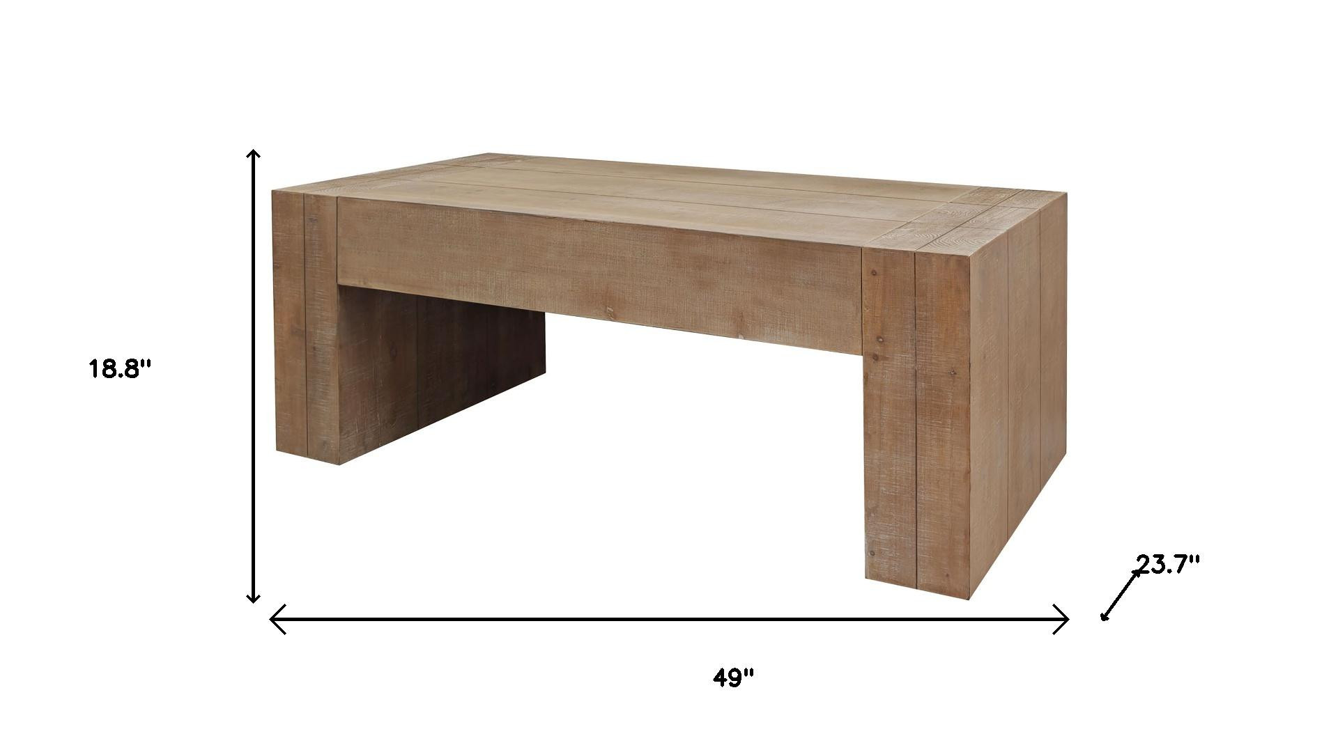 Stylish and super sturdy, the 49-inch natural wood coffee table is an amazingly good looking coffee table that will compliment your living room. A natural coloration runs throughout this good looking modern farmhouse clean yet rustic table. This rectangular table features sharp lines and a chunky stature that is an updated way to accent your room. If you're looking for something that can fit into a living area, bedroom, or office, this coffee table is for you. 18.80-inch h x 49.00-inch w x 23.70-inch d.