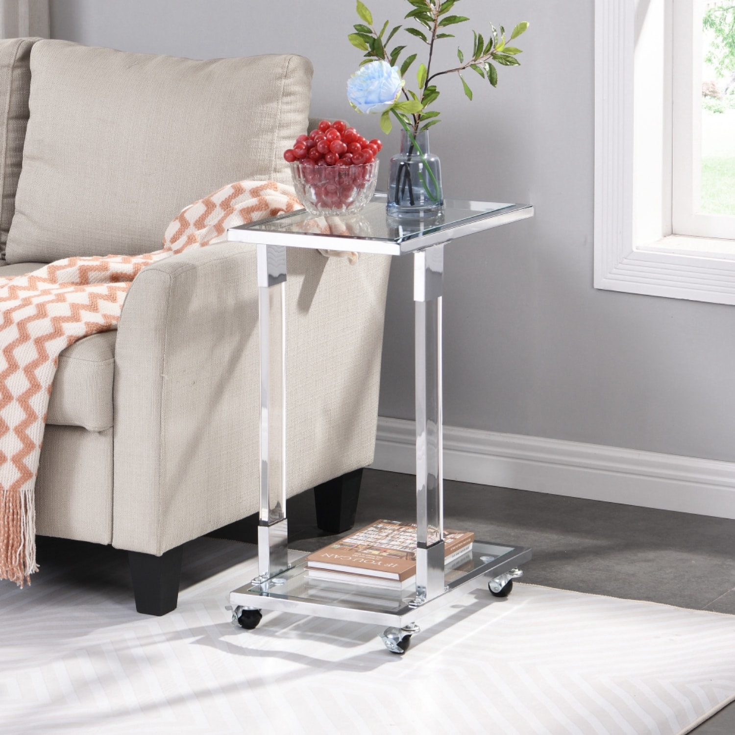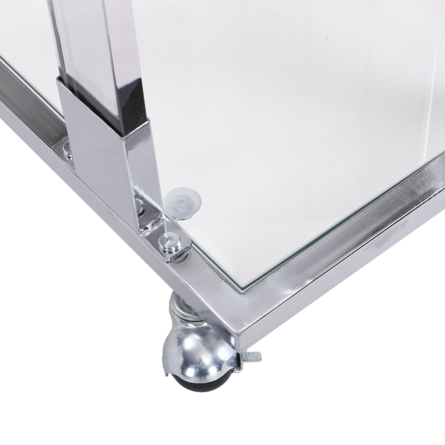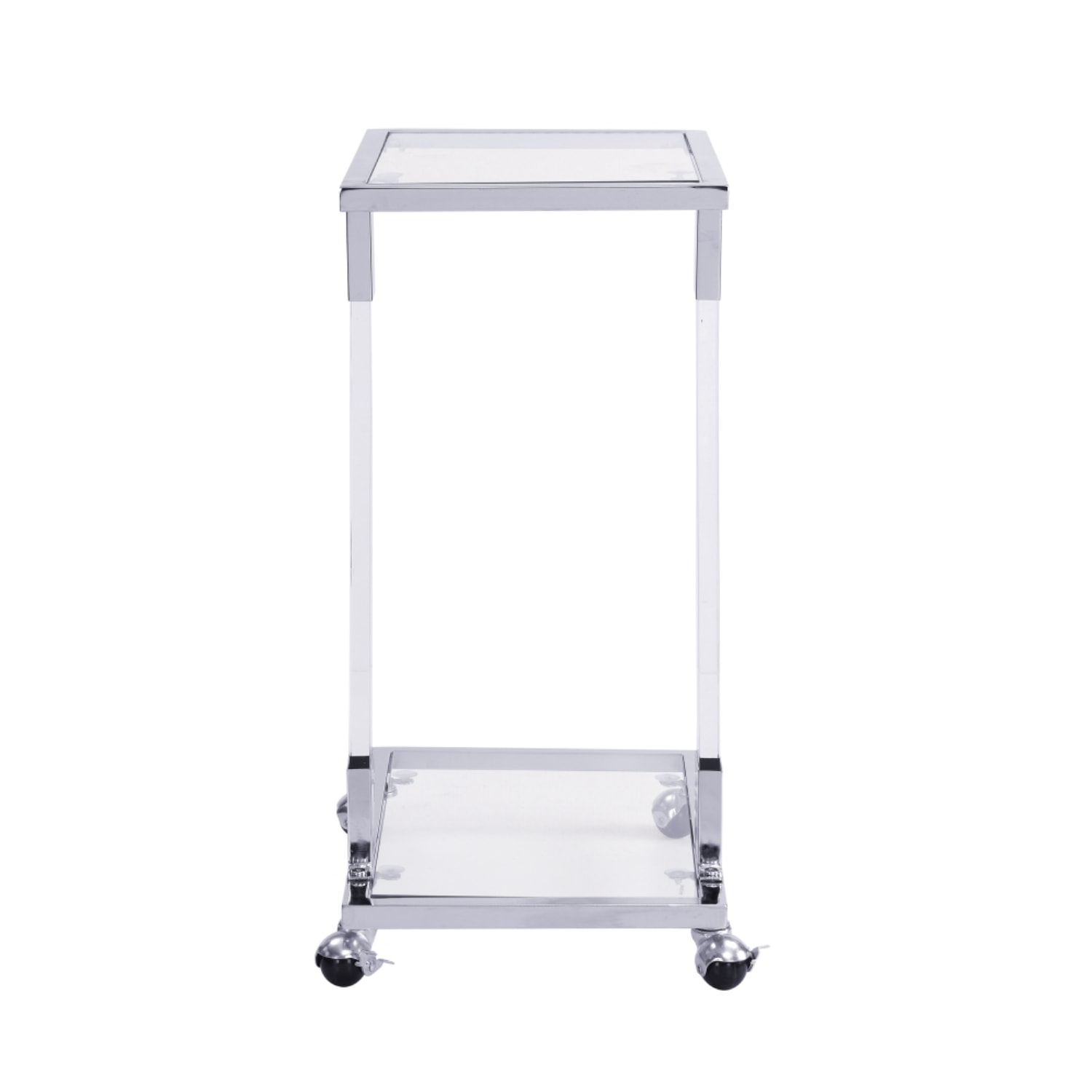 Make your living room or family room really stand out with this 26-inch white glass and acrylic square coffee table. This table features an updated monotone color scheme with white as the main color on both the glass top and the acrylic base. This square table utilizes its unique shape to give your room a modern geometric accent. Wheels give the table added versatility and mobility if needed. If you're looking for something that can fit into a living area, bedroom, or office, this coffee table is for you. 17.72-inch h x 25.60-inch w x 11.82-inch d.