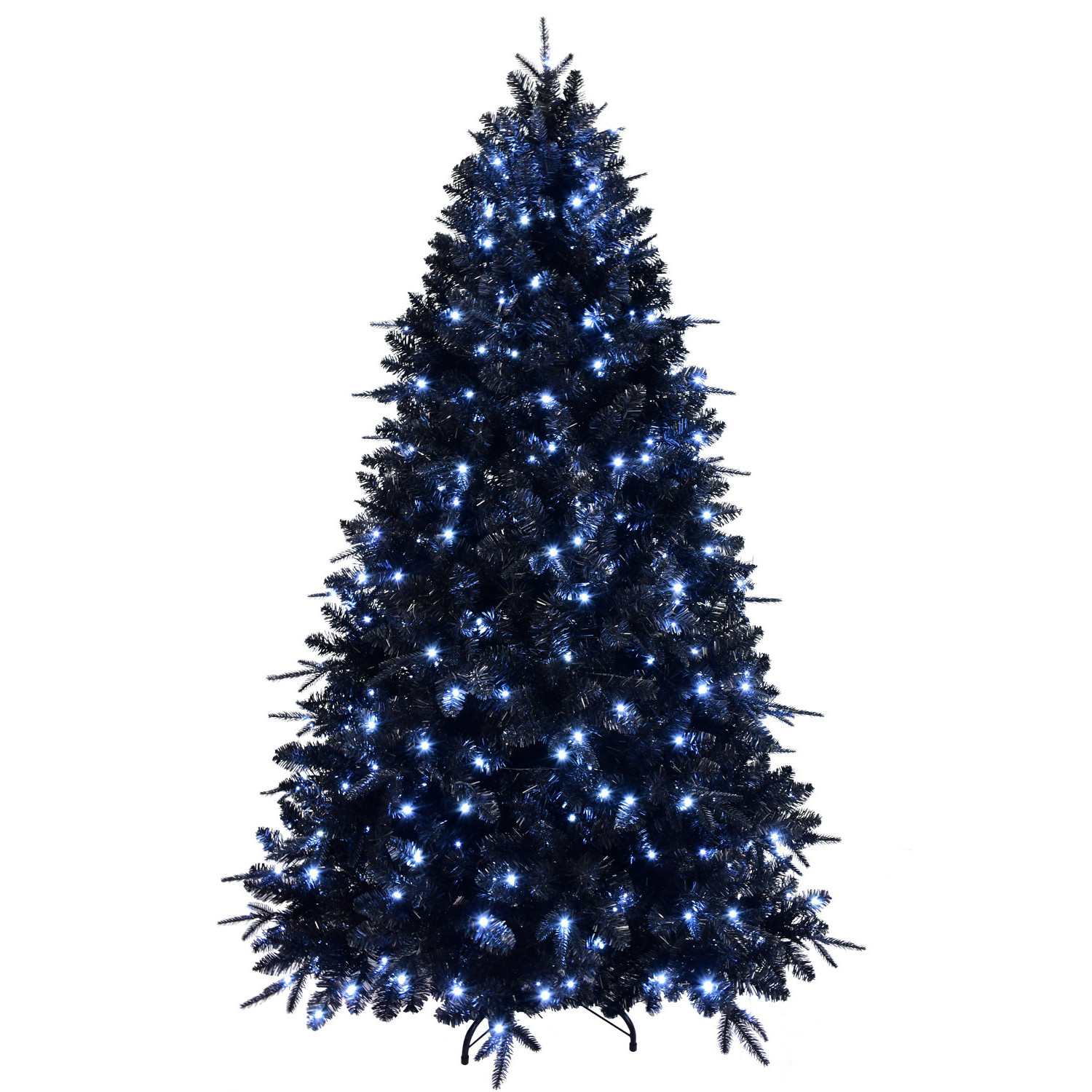 Celebrate the season in style with this 8-foot black pre lit full fir christmas tree. With its rich black needle color, this artificial tree adds a sophisticated touch to any holiday decor. Designed in a regular fullness shape, it offers a lush and inviting appearance for your festive gatherings. The led lights included provide a warm glow, while the electric plug-in power source ensures hassle-free setup. Boasting 600 constant color bulbs, you can enjoy a beautiful illumination that enhances your space. The sturdy tree stand ensures stability, making it a perfect centerpiece for your holiday celebrations, crafted from durable polyvinyl chloride for lasting use. 96.00-inch h x 60.00-inch w x 60.00-inch d.