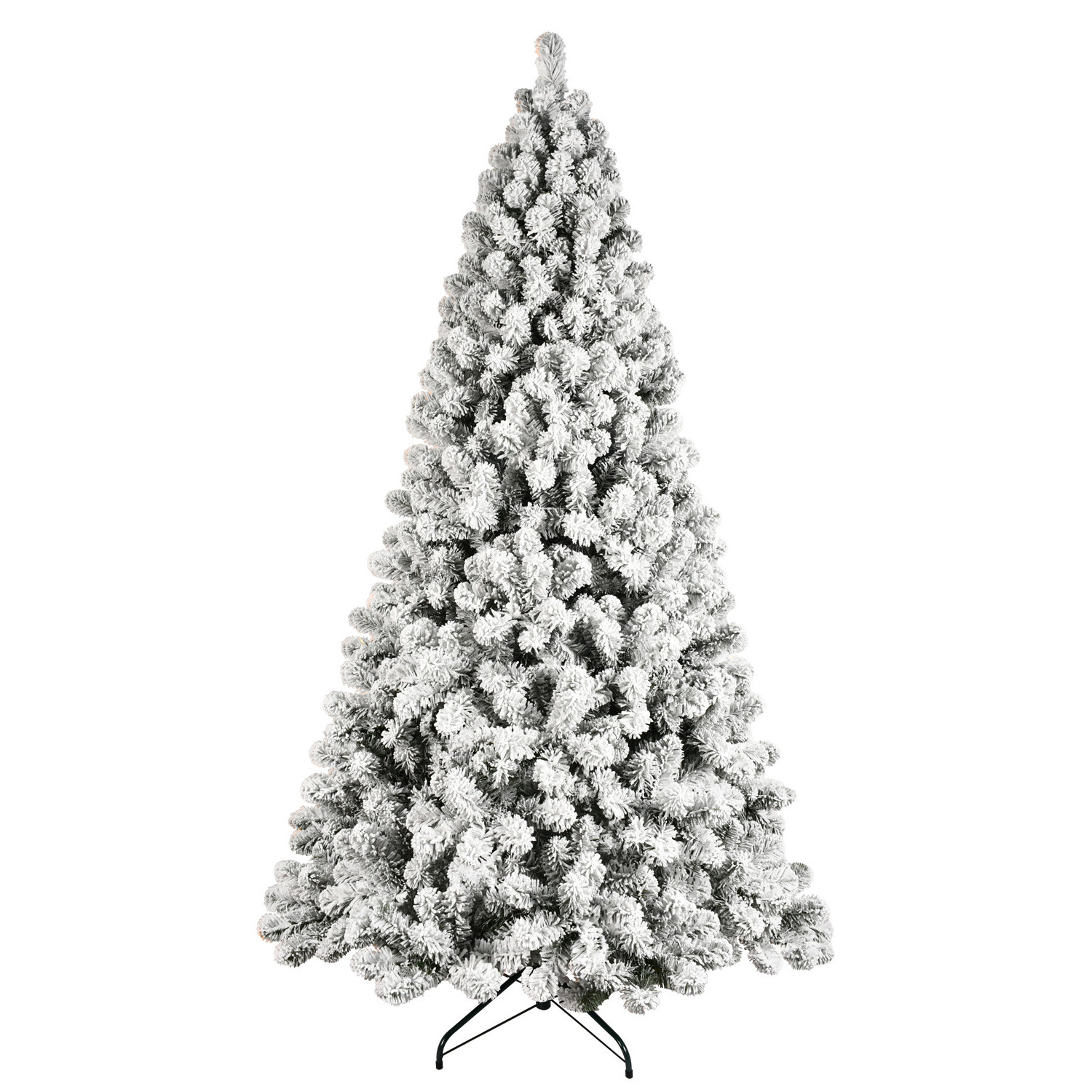 Celebrate the season in style with this 9-foot white pre lit full flocked fir christmas tree. Crafted from durable polyvinyl chloride, this artificial tree boasts stunning white needles that create a striking winter wonderland ambiance. With its regular fullness shape, the tree offers a lush and vibrant look that will enhance your holiday decor. Featuring 650 energy-efficient led bulbs, it provides beautiful constant color illumination, ensuring your living space is warmly lit throughout the festivities. The included tree stand ensures stability while you adorn it with your favorite ornaments, making this christmas tree the perfect centerpiece for your holiday celebrations. 108.00-inch h x 60.00-inch w x 60.00-inch d.