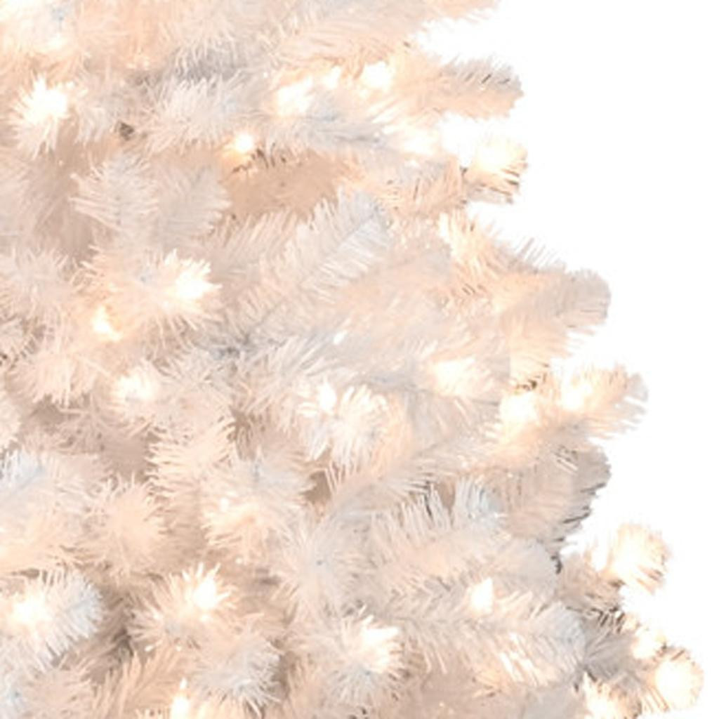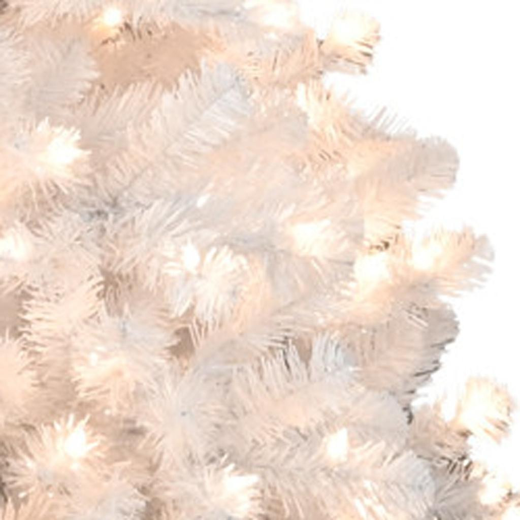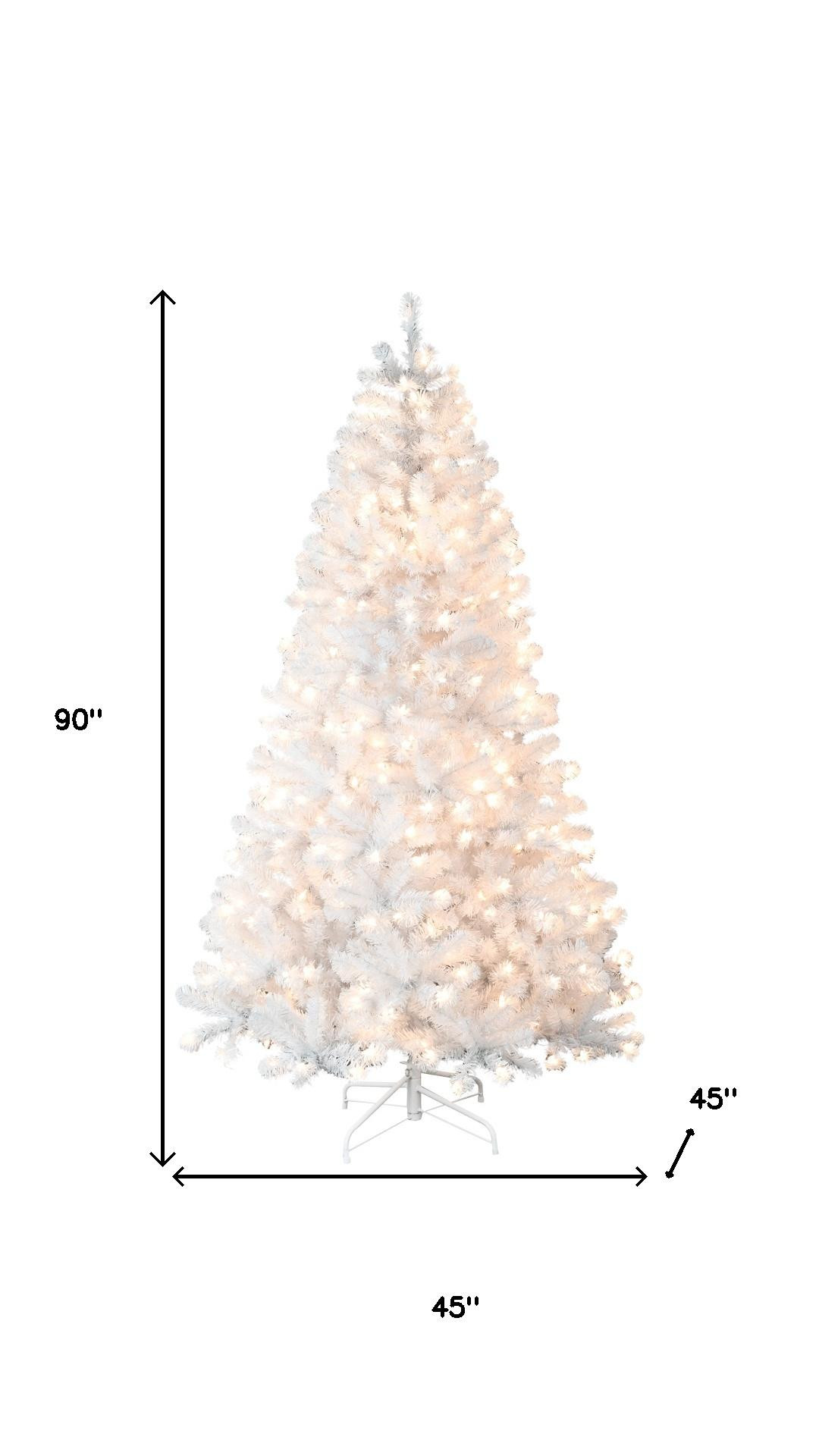 Celebrate the season in style with this 7. 5-foot white pre lit full flocked fir christmas tree. This artificial tree features a stunning white needle color, bringing an elegant touch to your holiday decor. With regular fullness, it offers a lush and vibrant appearance that enhances any room. The flocked branches create a soft, snowy effect that invokes the charm of winter wonderlands. Equipped with 450 energy-efficient led lights, this tree radiates a warm glow without flickering. The electric plug-in power source ensures hassle-free setup, while the included tree stand provides stability and support throughout the festive season. 90.00-inch h x 45.00-inch w x 45.00-inch d.
