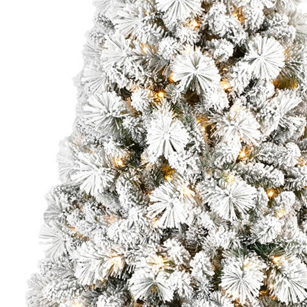 Add some festive spirit to your space with this christmas tree. Standing at an impressive 96 inches tall, this artificial fir tree boasts a stunning white needle color that adds a touch of elegance to your holiday decor. The tree features a flocked branch design, creating a winter wonderland ambiance in your home. With 600 led lights included, it ensures a bright and inviting glow throughout the season. Electric plug-in power allows for easy setup, while the constant color functionality means you can enjoy the lights without blinking interruptions. The included tree stand provides stability, making it a perfect centerpiece for your holiday celebrations. 96.00-inch h x 53.00-inch w x 53.00-inch d.