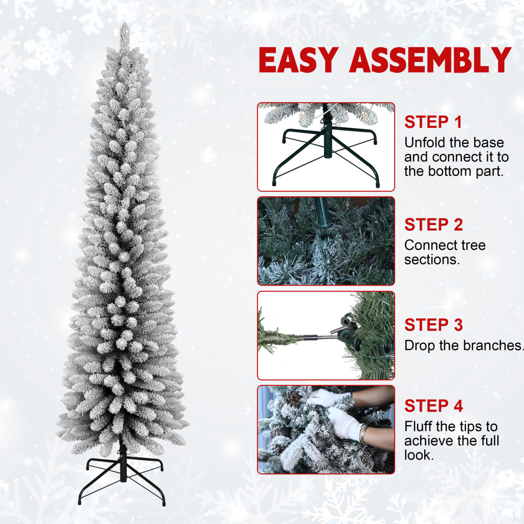 This 7-foot white slender flocked fir christmas tree is a great way to decorate and celebrate the season. Crafted from durable materials, it offers both style and longevity. The tree features a stunning white needle color that adds a touch of elegance to your holiday decor. With a tip count of 469, this artificial tree provides a lush and full appearance, making it perfect for showcasing your favorite ornaments. The included tree stand ensures stability and ease of setup, allowing you to transform your space into a winter wonderland effortlessly. Its slender shape makes it ideal for smaller areas while still making a bold festive statement. 84.00-inch h x 25.00-inch w x 25.00-inch d.