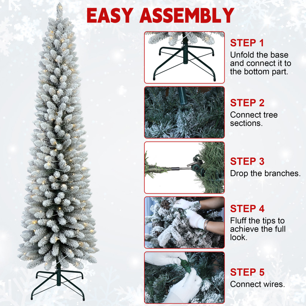Add some festive spirit to your space with this christmas tree. This artificial tree features a classic green color that brings a natural touch indoors and outdoors. With its regular fullness shape, it offers a lush appearance that enhances the holiday ambiance. The branches are elegantly flocked, creating a snow-kissed look that captures the magic of winter. Equipped with 200 led lights, this tree shines brightly, providing a warm glow throughout your celebrations. The electric plug-in power source makes setup convenient, while stay-lit bulbs ensure a consistent display. The included tree stand offers stability, making it easy to set up and enjoy for years to come. 84.00-inch h x 25.00-inch w x 25.00-inch d.