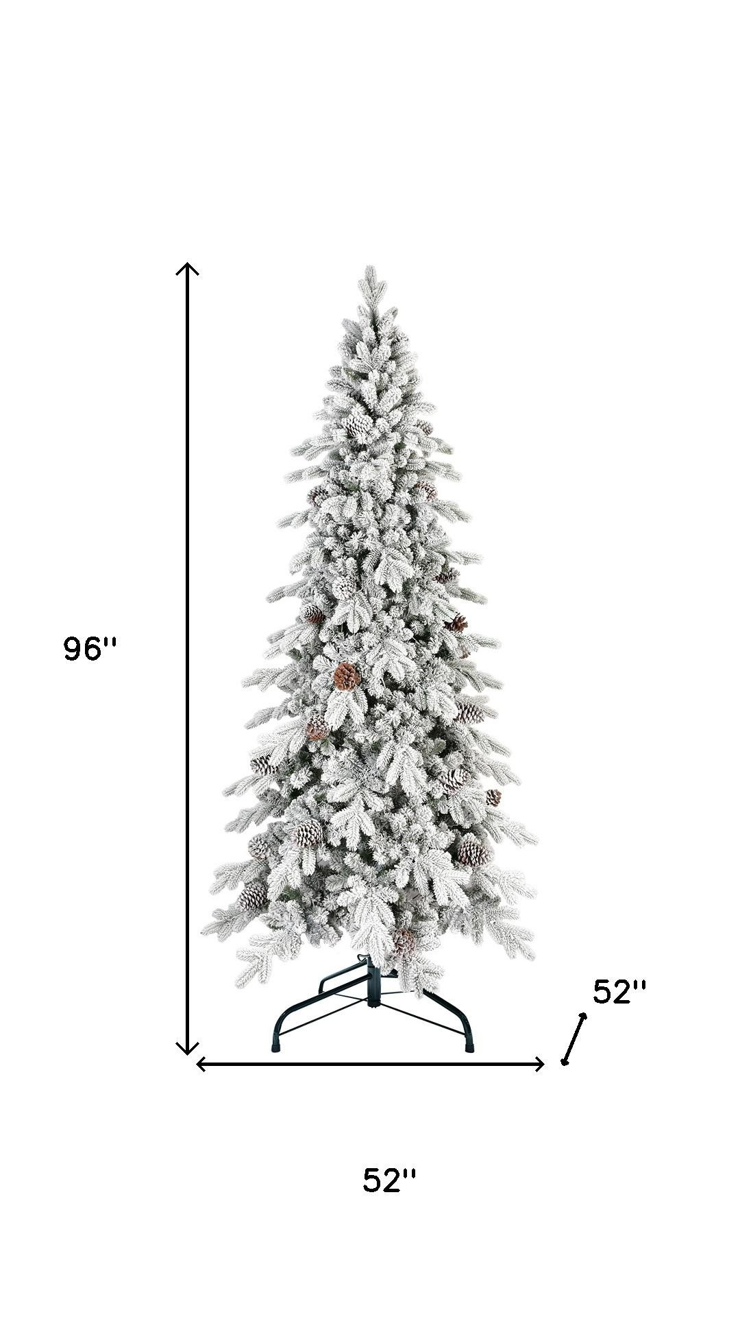 Add that special feeling to your space with this christmas tree. Standing tall at 96 inches, this artificial fir tree is designed to impress with its regular fullness and flocked branches, creating a stunning winter wonderland effect. The luxurious white needle color adds an elegant touch, making it the perfect centerpiece for your holiday décor. Crafted from durable polyvinyl chloride, this tree ensures longevity while maintaining its beautiful appearance year after year. A sturdy tree stand is included for easy setup and stability, allowing you to focus on decorating and celebrating the season. Make your holiday traditions even more special with this enchanting tree. 96.00-inch h x 52.00-inch w x 52.00-inch d.
