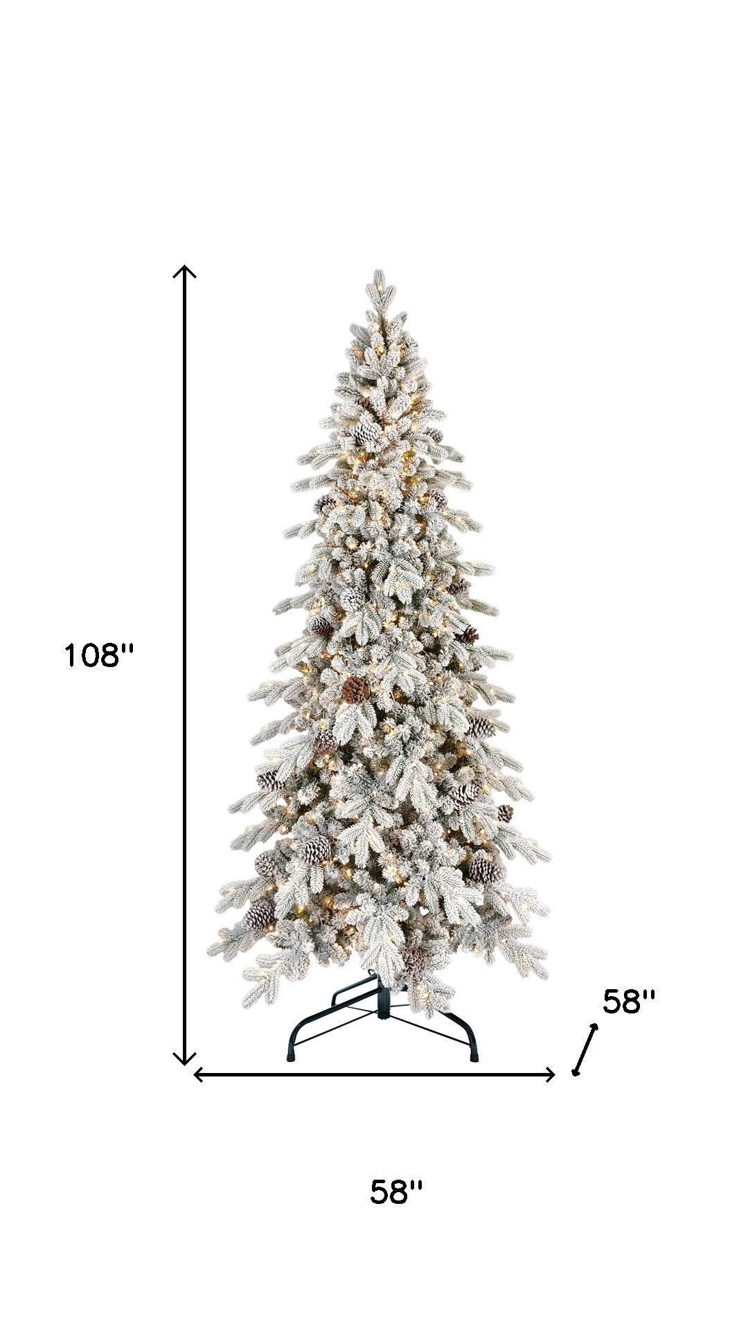 Add that special feeling to your space with this christmas tree. Designed with a beautiful flocked finish, this artificial fir tree features lush regular fullness that enhances any holiday decor. The white needle color adds a touch of elegance, while the included led lights provide a warm, inviting glow. With constant color light functions and stay-lit bulbs, this tree ensures a consistent festive ambiance throughout the season. The electric plug-in power source offers convenience, and the sturdy tree stand ensures stability. Crafted from durable polyvinyl chloride, this tree is built to last for many holidays to come, making it a perfect centerpiece for your celebrations. 108.00-inch h x 58.00-inch w x 58.00-inch d.
