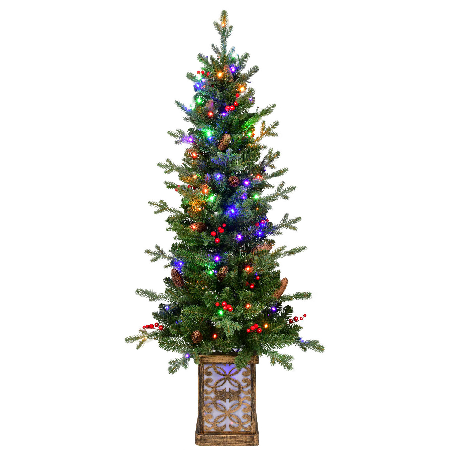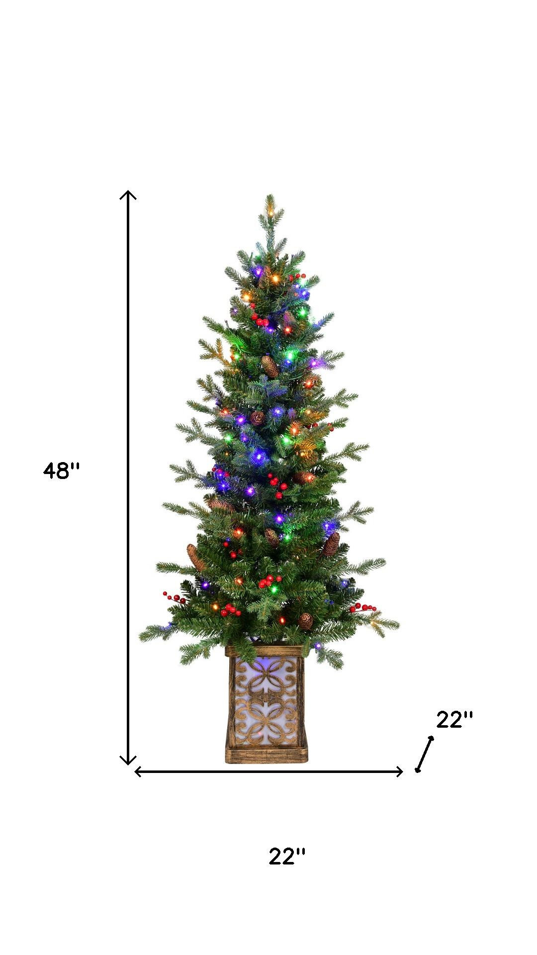 Celebrate the season in style with this 4-foot pre lit full fir christmas tree. This beautifully crafted artificial tree features a lush green color, providing a vibrant touch to your holiday decor. Its regular fullness creates an enchanting silhouette, perfect for both small and large spaces. With multicolored led lights included, your home will be filled with warmth and festivity. The electric plug-in power source allows for easy setup and enjoyment, while the constant color light function ensures a steady glow throughout the season. Constructed from durable polyvinyl chloride material, this tree is designed to last for many holidays to come, complete with a charming potted stand. 48.00-inch h x 22.00-inch w x 22.00-inch d.