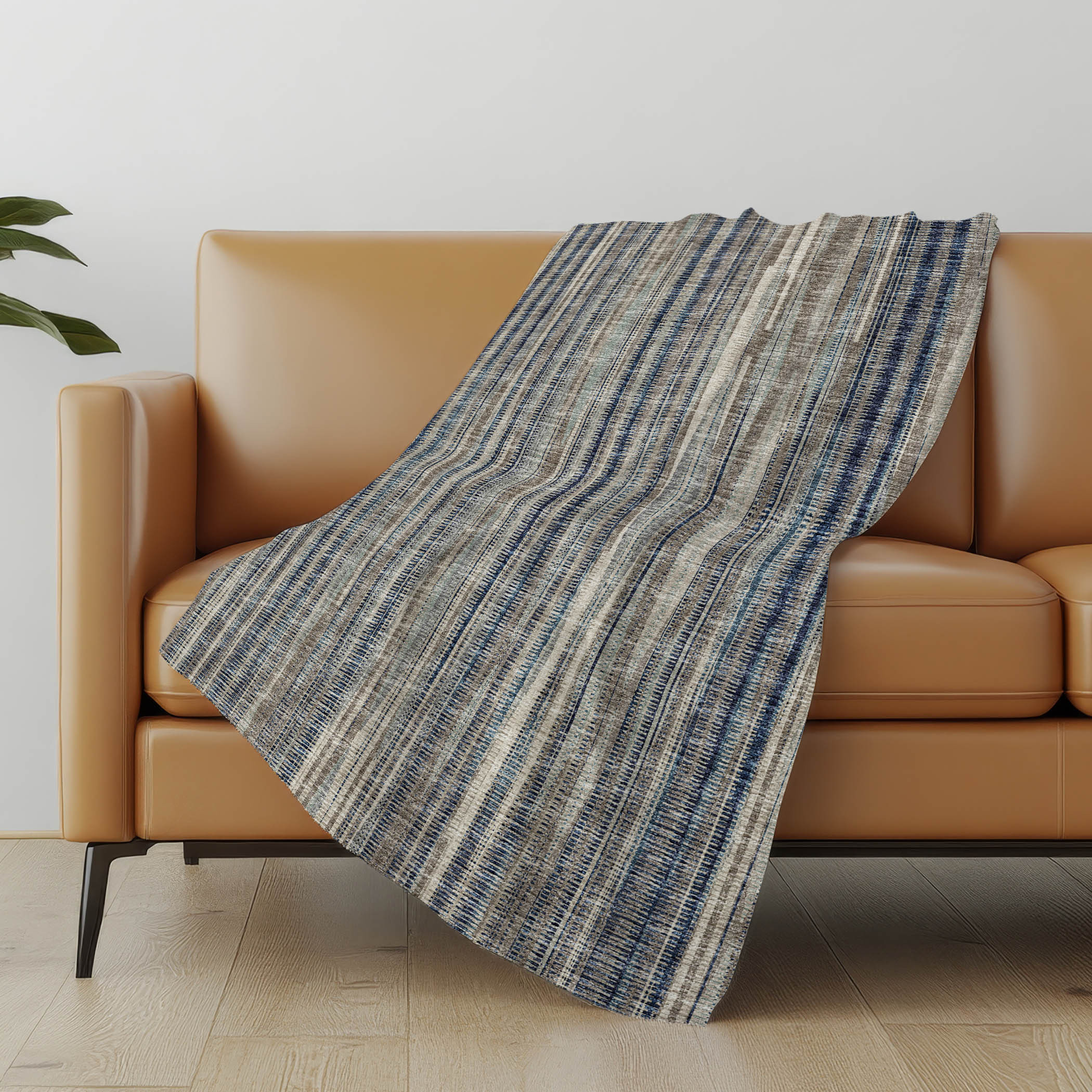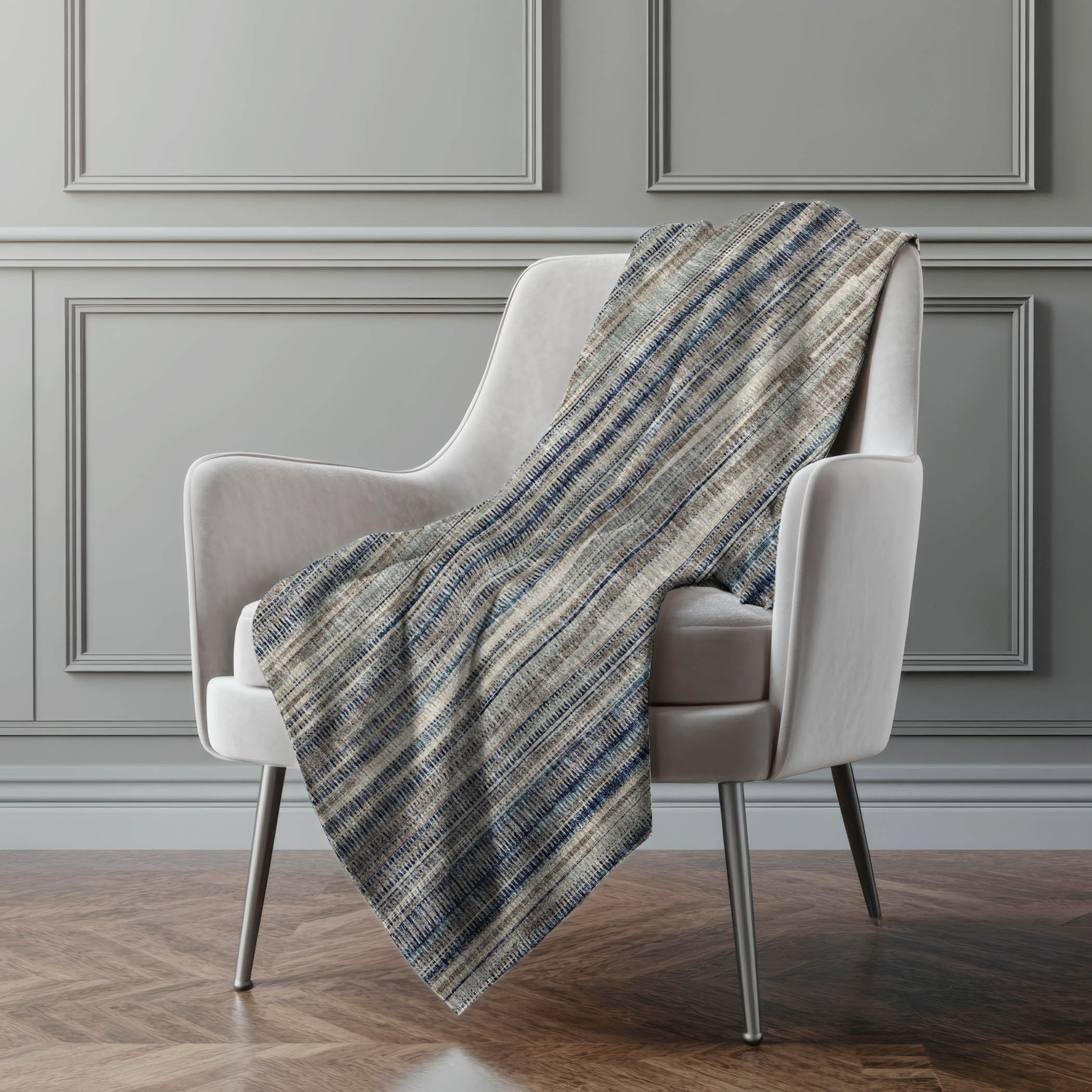 This 50-inch x 70-inch brown and blue striped polyester woven plush throw blanket is the best (and most stylish) way to wrap you and your loved ones in the epitome of cozy all year long. This plush throw is cozy soft beyond belief and oh-so-giftable. Features a woven striped design that offers sumptuous softness and texture that you'll cherish for years to come. Made from polyester this blanket will make a great addition to any room it's added to. Perfect for your favorite chair, bed or lounging on the couch, this blanket helps bring a warm and fashionable flair to your space. 70.00-inch h x 50.00-inch w x 0.50-inch d.