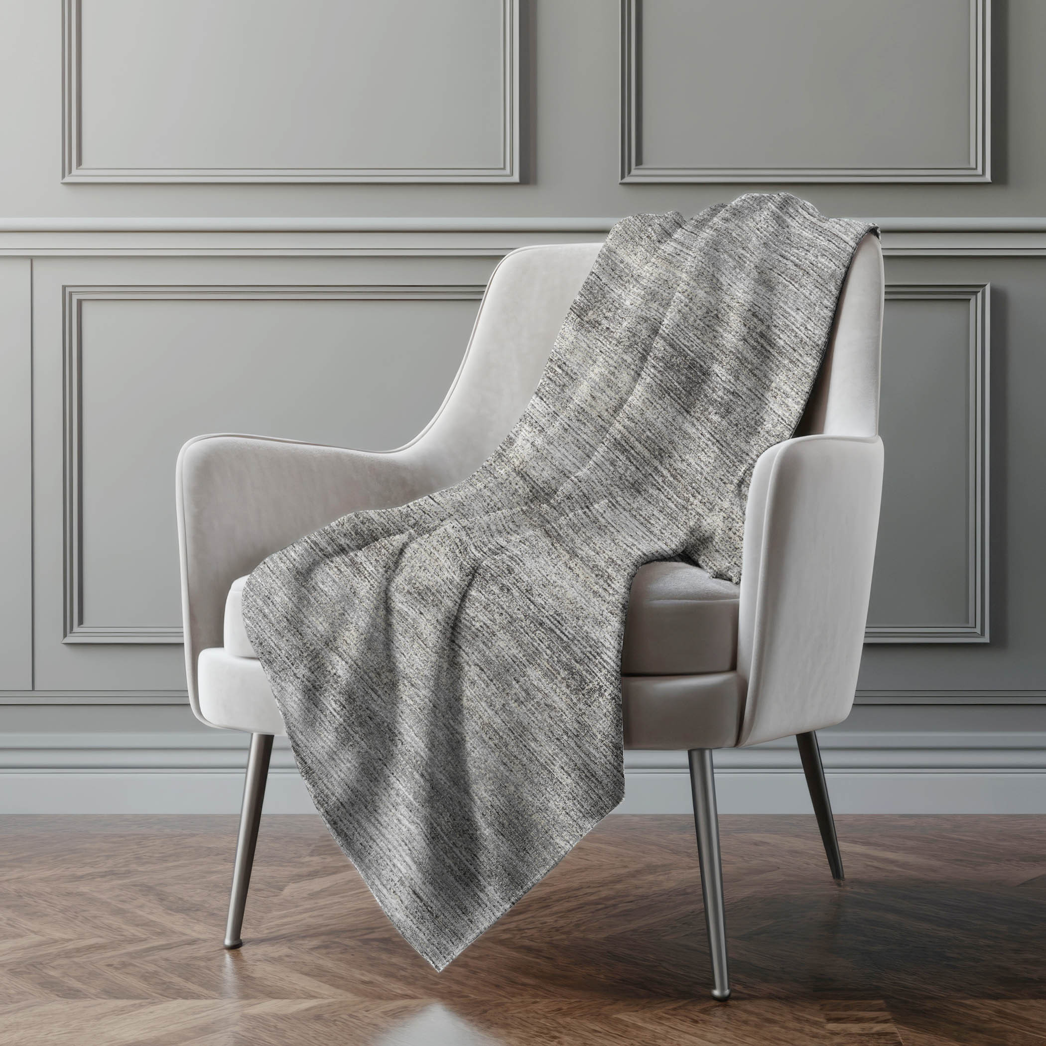Bring warmth, comfort and style to your space with this 50-inch x 70-inch silver and gray abstract polyester woven plush throw blanket. This ultra-soft plush blanket is designed for ultimate softness. Features a woven abstract design that offers sumptuous softness and texture that you'll cherish for years to come. Made from polyester this blanket will make a great addition to any room it's added to. This cozy throw blanket is sure to become your go-to couch companion. 70.00-inch h x 50.00-inch w x 0.50-inch d.