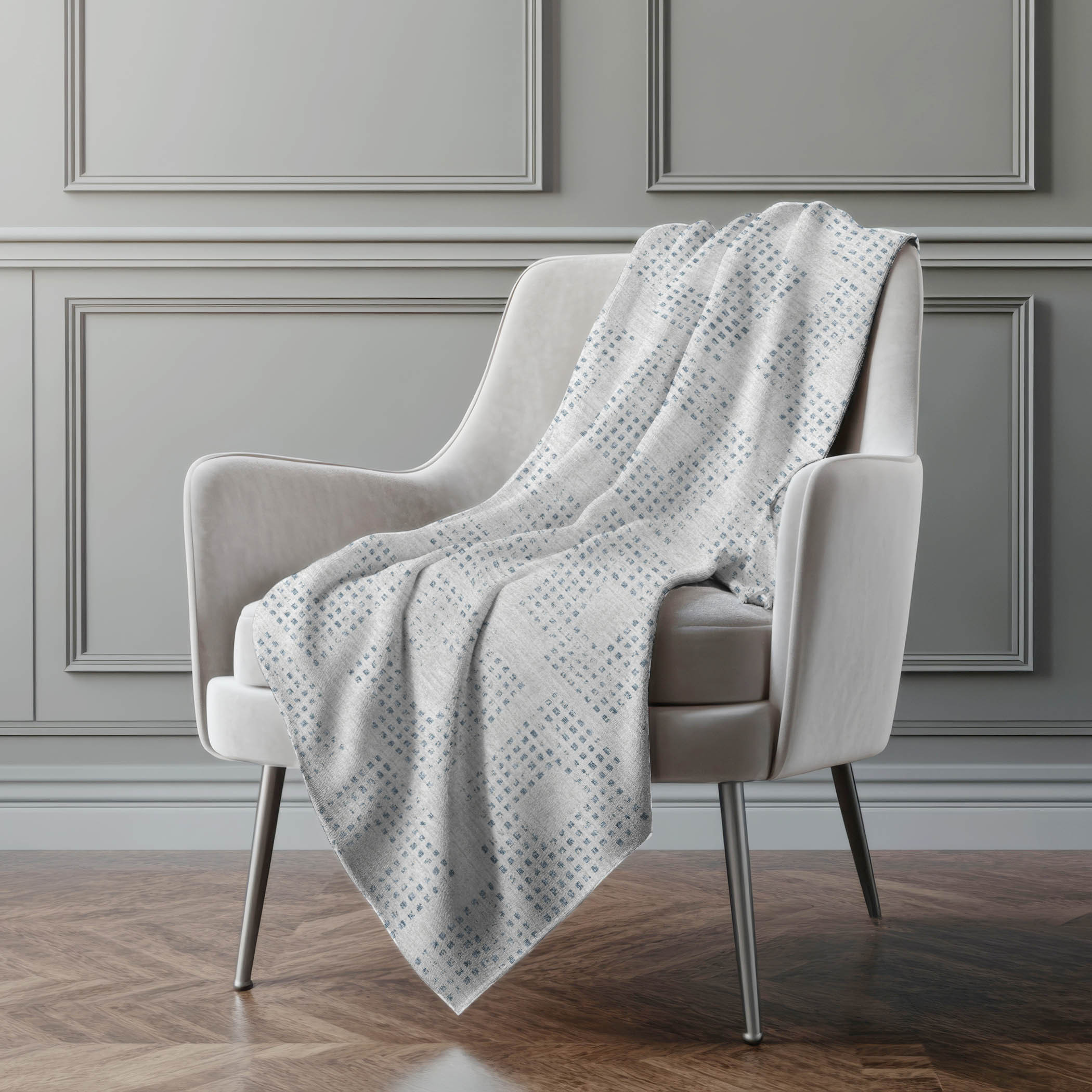 This 50-inch x 70-inch silver and blue geometric polyester woven plush throw blanket is a stylish addition to any sofa. This ultra-soft plush blanket is designed for ultimate softness. Features a woven geometric design that offers sumptuous softness and texture that you'll cherish for years to come. Made from polyester this blanket will make a great addition to any room it's added to. This cozy throw blanket is sure to become your go-to couch companion. 70.00-inch h x 50.00-inch w x 0.50-inch d.