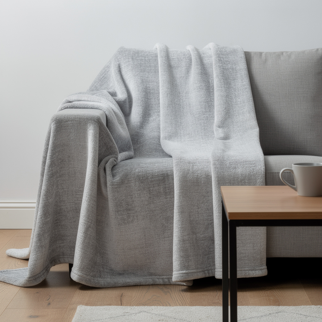 This 50-inch x 70-inch gray and silver abstract microfiber plush throw blanket brings a classic, refined style to your space. This ultra-soft plush blanket is designed for ultimate softness. Features a woven abstract design that offers sumptuous softness and texture that you'll cherish for years to come. Made from microfiber this blanket will make a great addition to any room it's added to. Add extra texture to your decor and turn your room into an inviting space. This cozy throw blanket makes the perfect add-on to movie nights and lazy afternoons. 70.00-inch h x 50.00-inch w x 0.50-inch d.