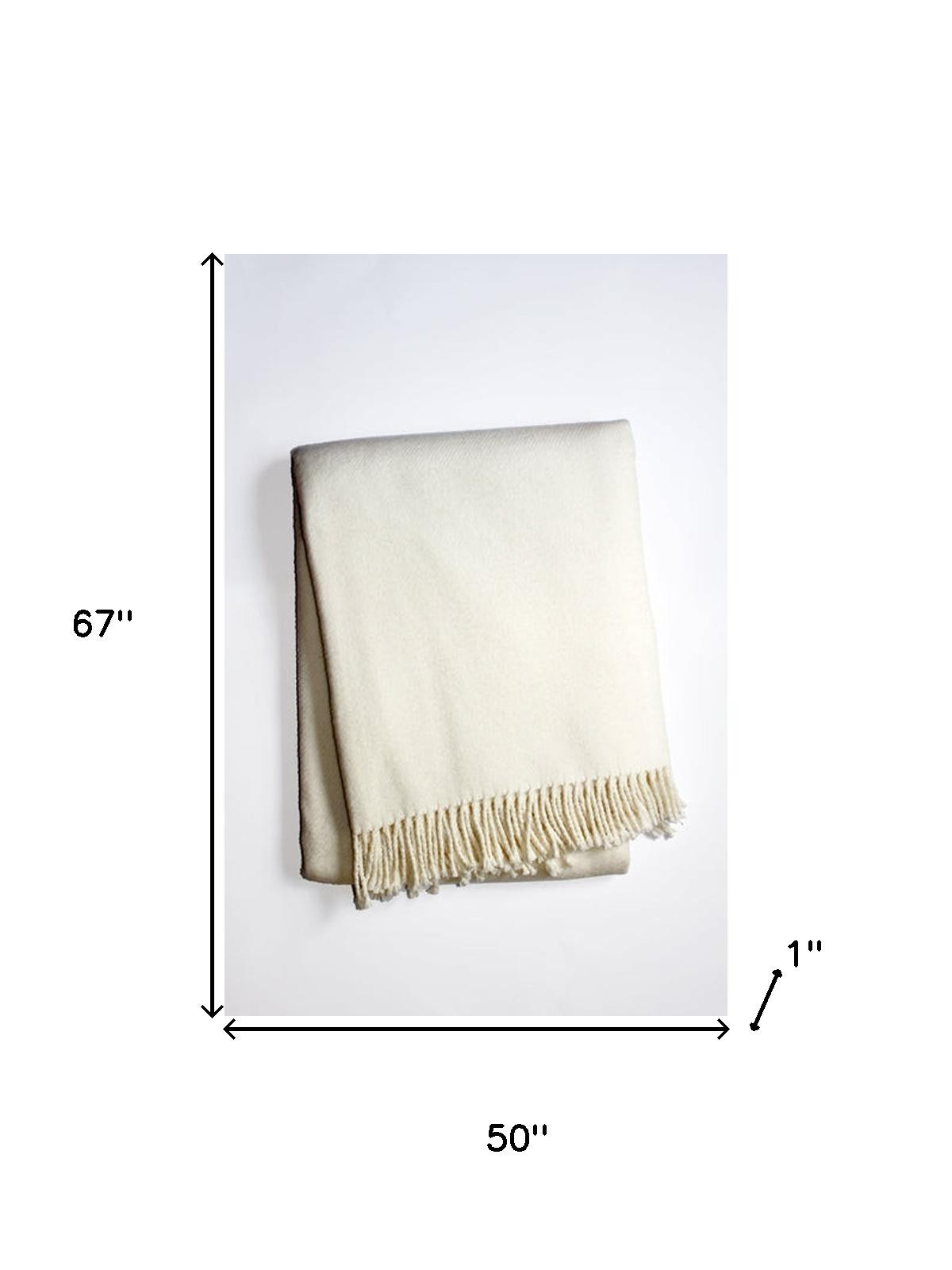 This 50-inch x 67-inch cream cotton blend woven plush throw blanket with fringe is a stylish addition to any sofa. This ultra-soft plush blanket is designed for ultimate softness. Made from cotton blend this blanket will make a great addition to any room it's added to. Add extra texture to your decor and turn your room into an inviting space. This cozy throw blanket is sure to become your go-to couch companion. 67.00-inch h x 50.00-inch w x 1.00-inch d.