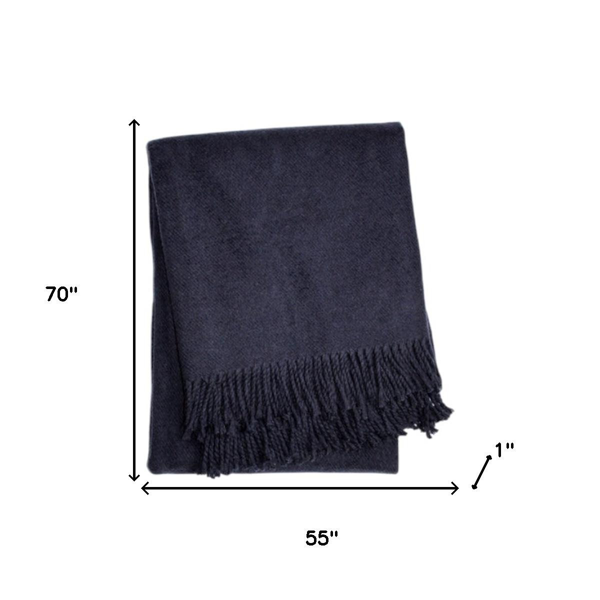 This 55-inch x 70-inch navy blue cotton blend woven plush throw blanket with fringe is a stylish addition to any sofa. This ultra-soft plush blanket is designed for ultimate comfort. Made from a cozy blend of cotton and acrylic, this solid color blanket will make a great gift or addition to any room it's added to. Add extra texture to your decor and turn your room into an inviting space. This cozy throw blanket is sure to become your go-to couch companion. 70.00-inch h x 55.00-inch w x 0.30-inch d.