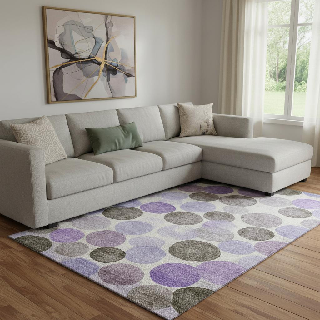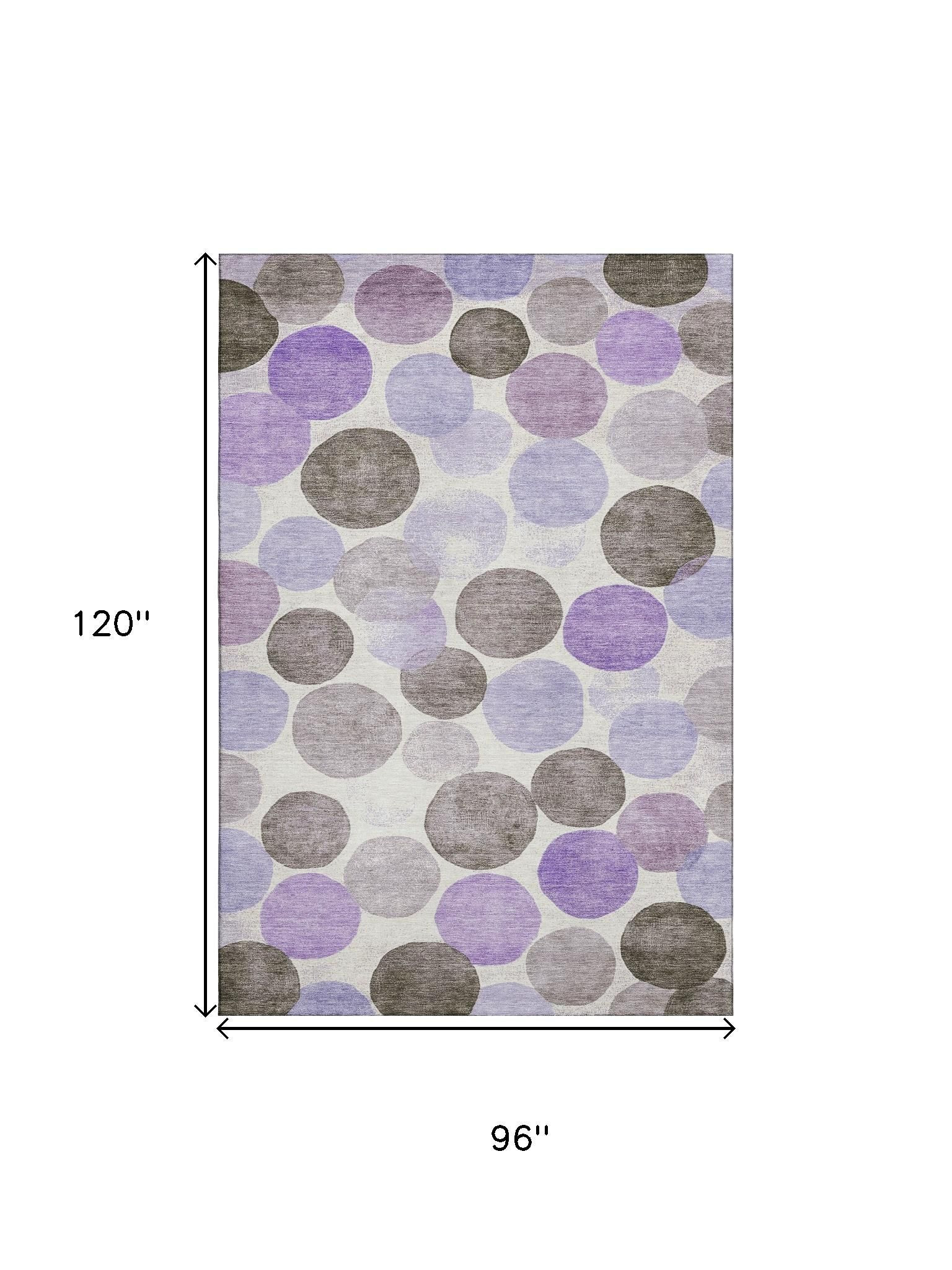 Add great coloration and comfortable texture to your space with this 8-foot x 10-foot purple brown and ivory geometric washable area rug with uv protection. Ideal for spaces with kids and pets, this rug is stain resistant to help repel dirt and spilled liquids. Built to last, this rug crafted from polyester fibers is known for its durability and long lasting appeal. Rugs are a great way to showcase your style, hide imperfections, warm your home and reduce noise. This larger sized, transitional styled rug is ready to create a focal point or statement piece in your room. 96.00-inch h x 120.00-inch w x 0.39-inch d.