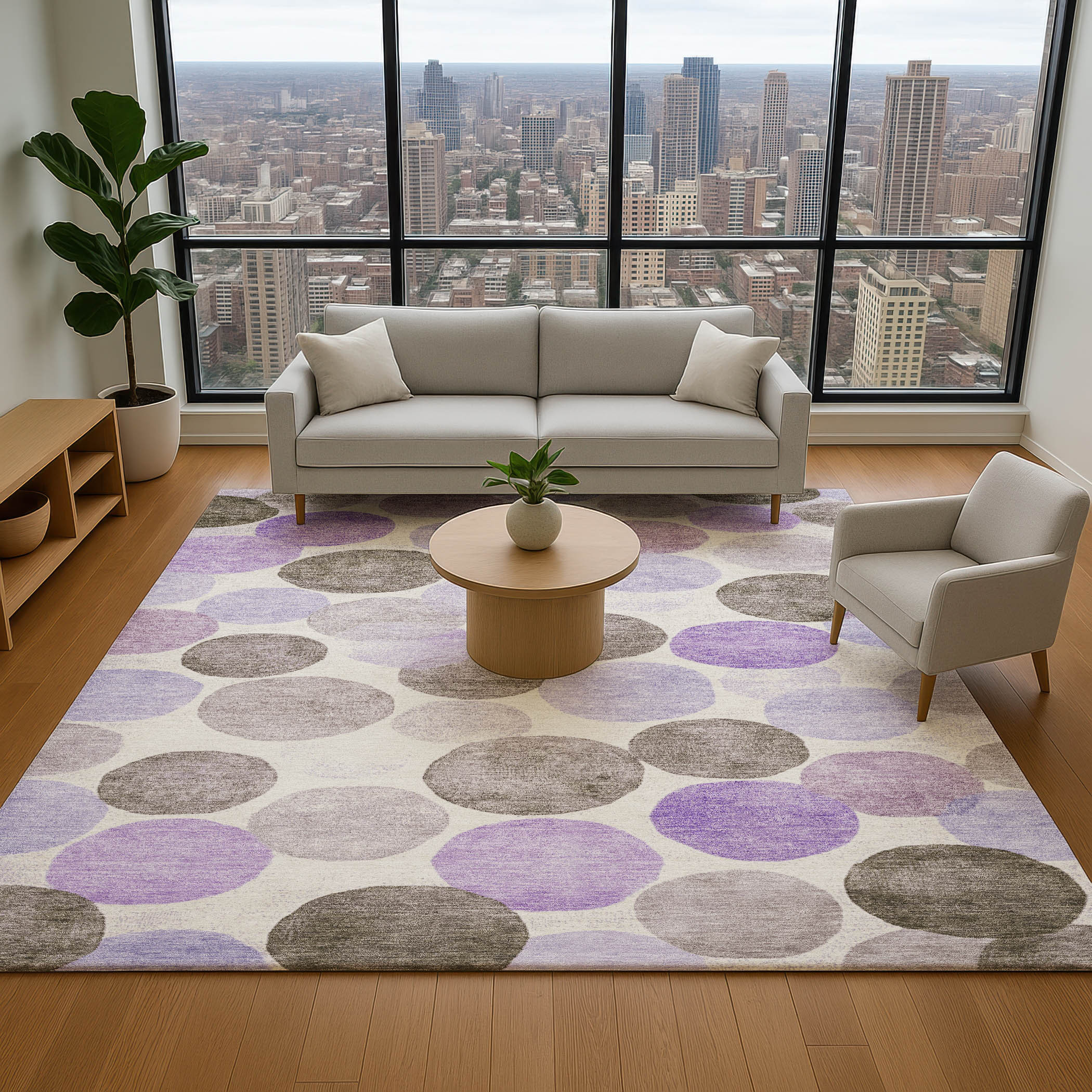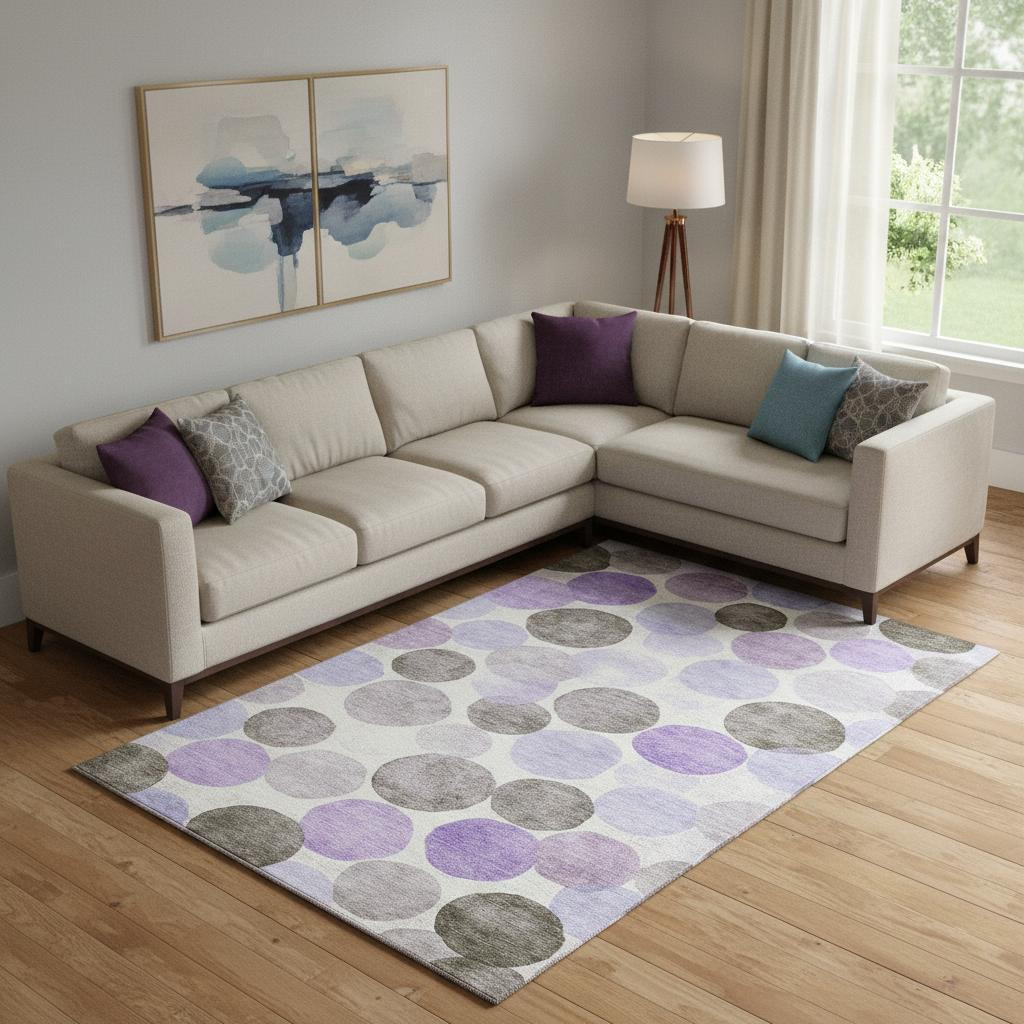 Set an inviting tone in your space with this 9-foot x 12-foot purple brown and ivory geometric washable area rug with uv protection. Ideal for spaces with kids and pets, this rug is stain resistant to help repel dirt and spilled liquids. Built to last, this rug crafted from polyester fibers is known for its durability and long lasting appeal. Rugs are a great way to showcase your style, hide imperfections, warm your home and reduce noise. This larger sized, transitional styled rug is ready to create a focal point or statement piece in your room. 108.00-inch h x 144.00-inch w x 0.39-inch d.