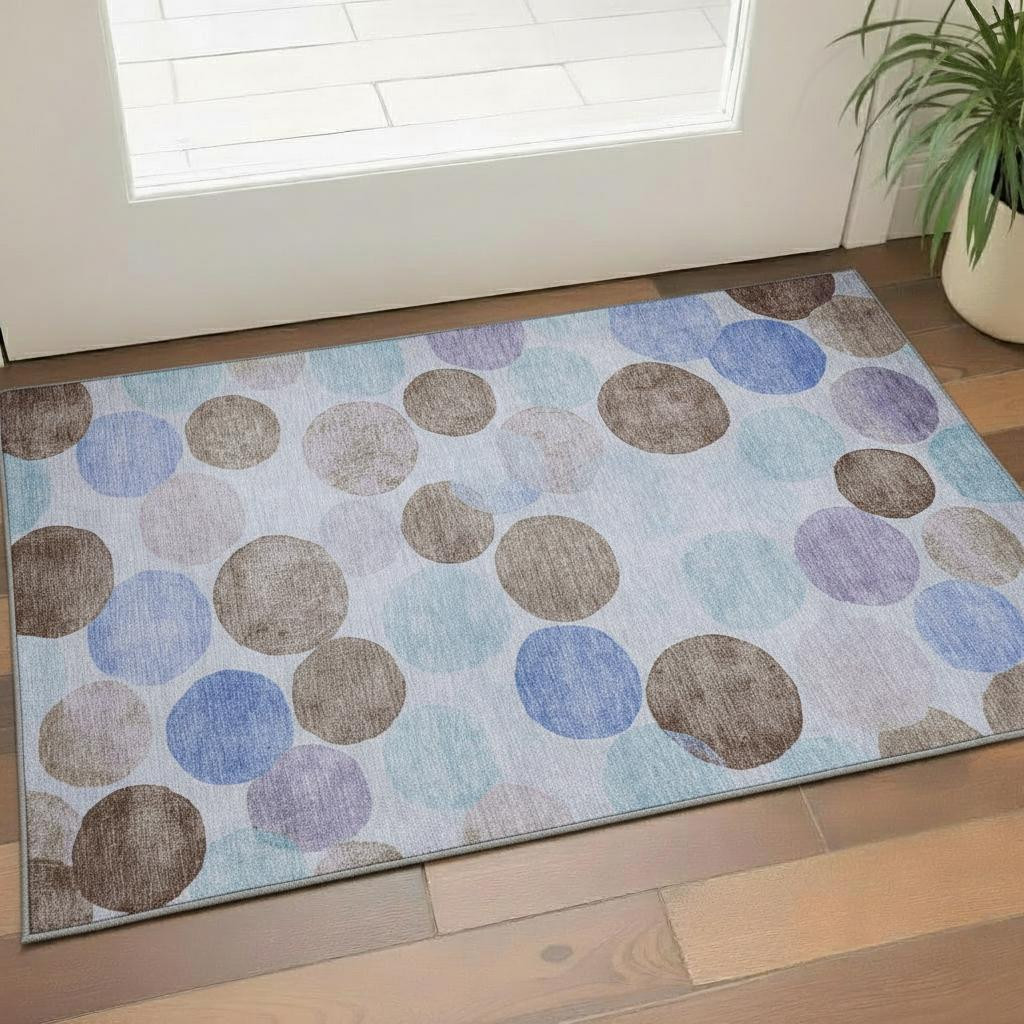 Add great coloration and comfortable texture to your space with this 3-foot x 5-foot sky blue lavender and taupe geometric washable area rug with uv protection. Ideal for spaces with kids and pets, this rug is stain resistant to help repel dirt and spilled liquids. Built to last, this rug crafted from polyester fibers is known for its durability and long lasting appeal. Rugs are a great way to showcase your style, hide imperfections, warm your home and reduce noise. This smaller sized, transitional styled rug is just what you need for your walkway, bedside, in front of door, cabinet, refrigerator, or chair. 36.00-inch h x 60.00-inch w x 0.39-inch d.