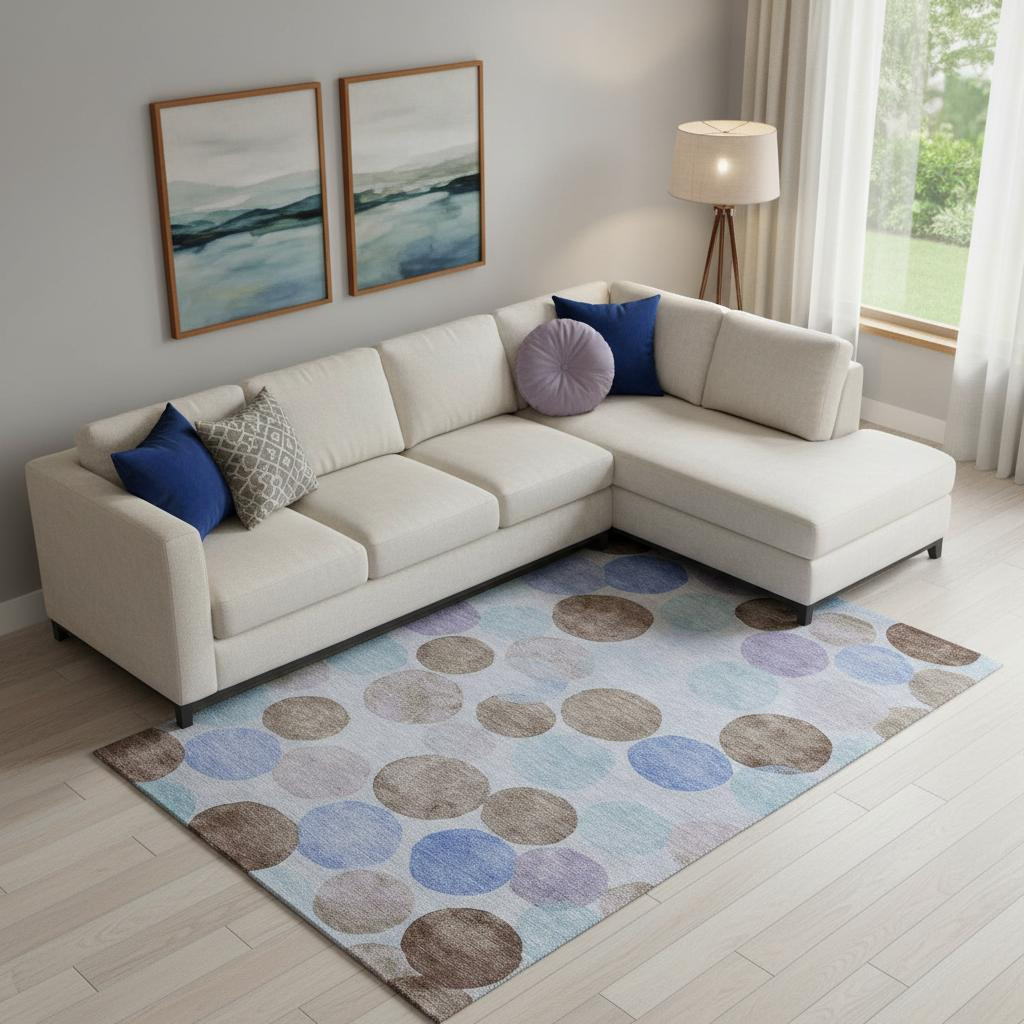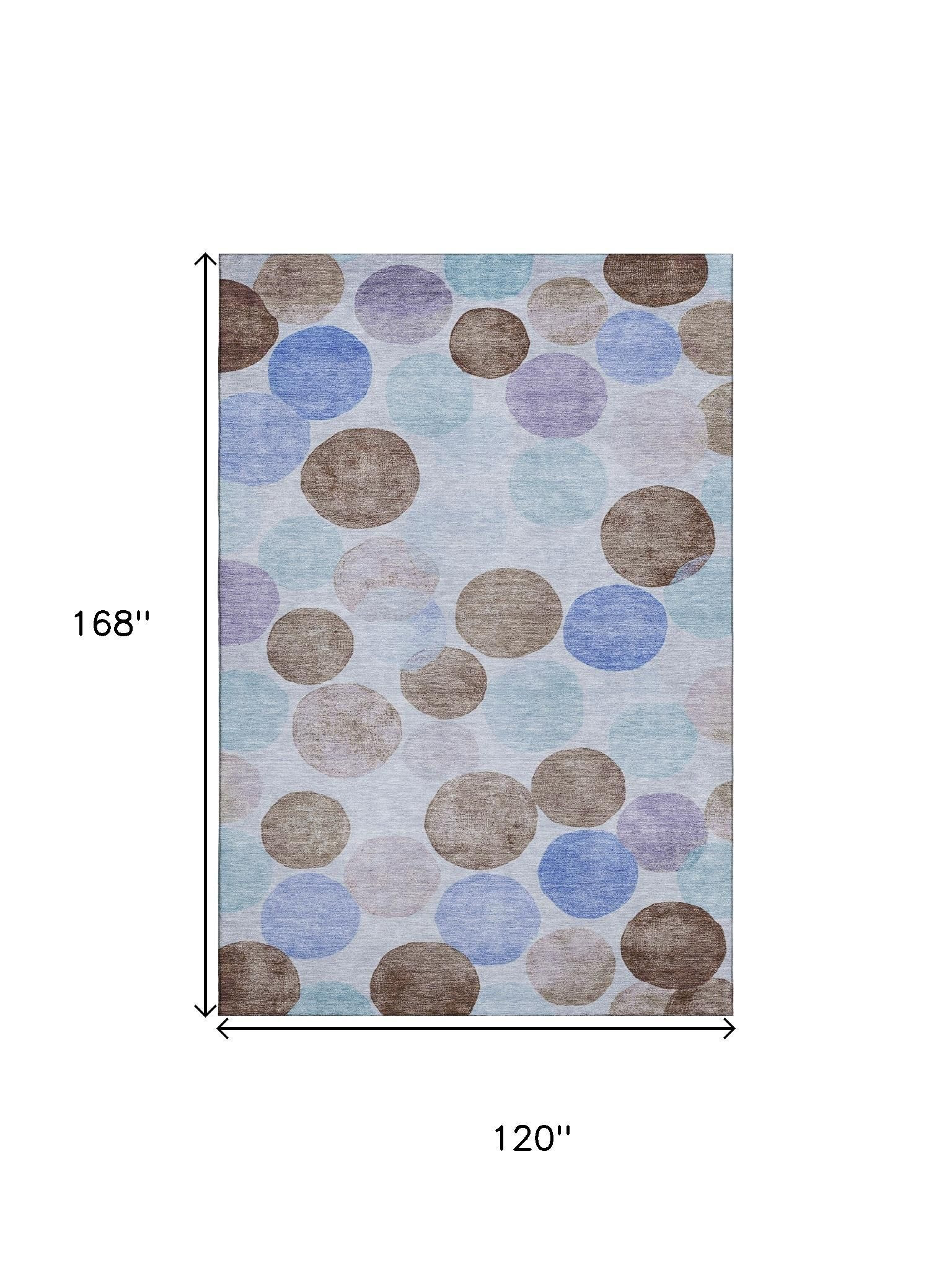 Add great coloration and comfortable texture to your space with this 10-foot x 14-foot sky blue lavender and taupe geometric washable area rug with uv protection. Ideal for spaces with kids and pets, this rug is stain resistant to help repel dirt and spilled liquids. Built to last, this rug crafted from polyester fibers is known for its durability and long lasting appeal. Rugs are a great way to showcase your style, hide imperfections, warm your home and reduce noise. This larger sized, transitional styled rug is ready to create a focal point or statement piece in your room. 120.00-inch h x 168.00-inch w x 0.39-inch d.