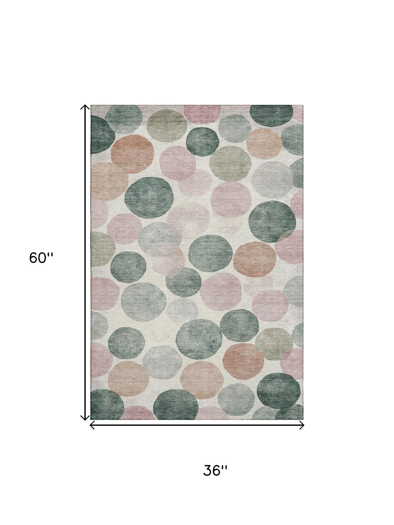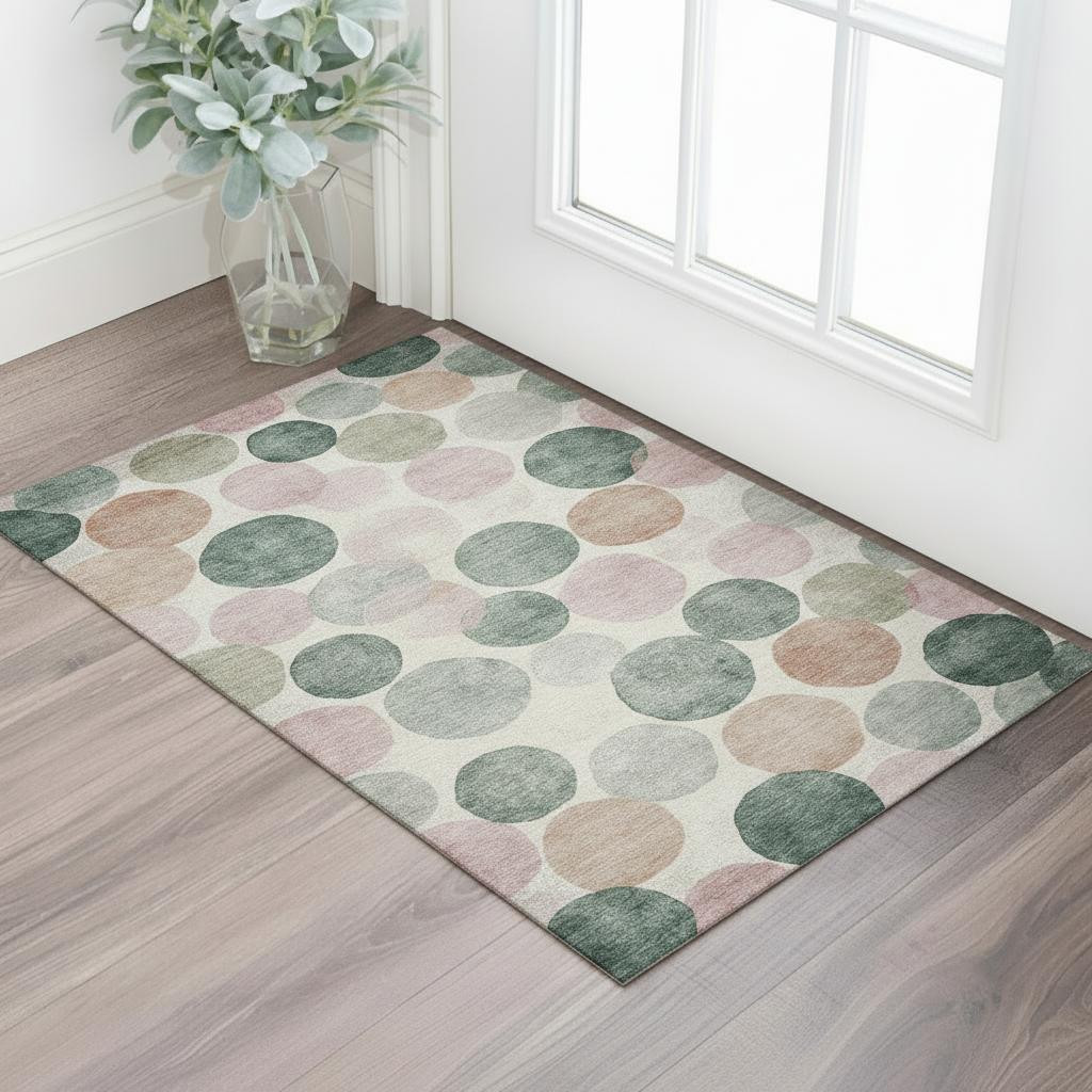 Add some artistry to your room with this 3-foot x 5-foot salmon emerald and ivory geometric washable area rug with uv protection. Ideal for spaces with kids and pets, this rug is stain resistant to help repel dirt and spilled liquids. Built to last, this rug crafted from polyester fibers is known for its durability and long lasting appeal. Rugs are a great way to showcase your style, hide imperfections, warm your home and reduce noise. This smaller sized, transitional styled rug is just what you need for your walkway, bedside, in front of door, cabinet, refrigerator, or chair. 36.00-inch h x 60.00-inch w x 0.39-inch d.
