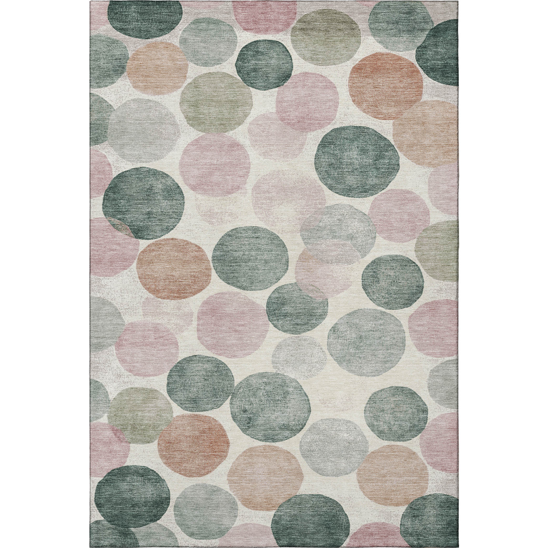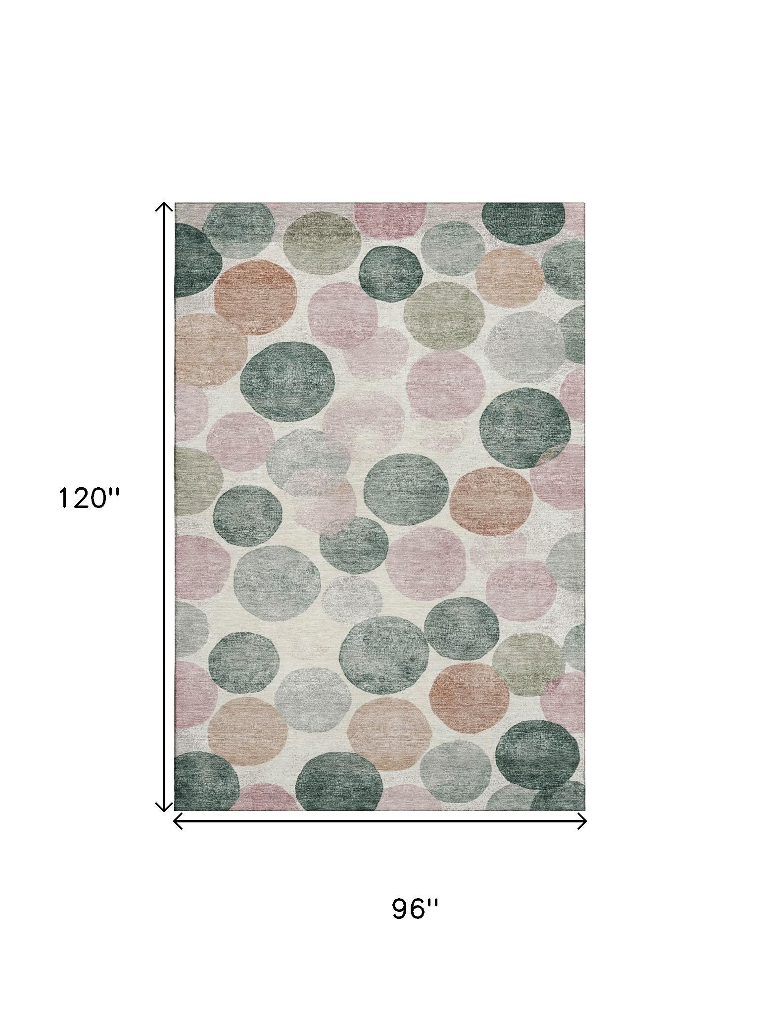 This 8-foot x 10-foot salmon emerald and ivory geometric washable area rug with uv protection, is a great way to add warmth to a room. Ideal for spaces with kids and pets, this rug is stain resistant to help repel dirt and spilled liquids. Built to last, this rug crafted from polyester fibers is known for its durability and long lasting appeal. Rugs are a great way to showcase your style, hide imperfections, warm your home and reduce noise. This larger sized, transitional styled rug is ready to create a focal point or statement piece in your room. 96.00-inch h x 120.00-inch w x 0.39-inch d.