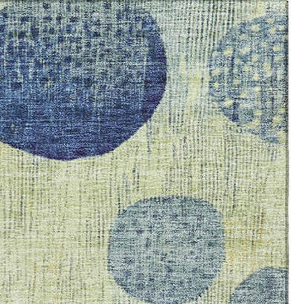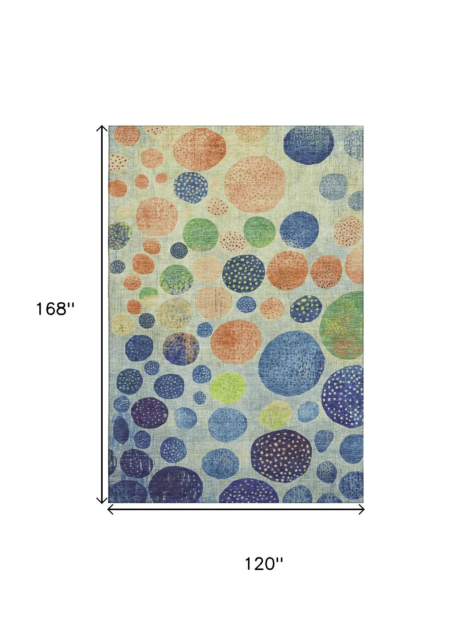Set an inviting tone in your space with this 10-foot x 14-foot navy blue green and peach geometric washable area rug with uv protection. Ideal for spaces with kids and pets, this rug is stain resistant to help repel dirt and spilled liquids. Built to last, this rug crafted from polyester fibers is known for its durability and long lasting appeal. Rugs are a great way to showcase your style, hide imperfections, warm your home and reduce noise. This larger sized, transitional styled rug is ready to create a focal point or statement piece in your room. 120.00-inch h x 168.00-inch w x 0.39-inch d.