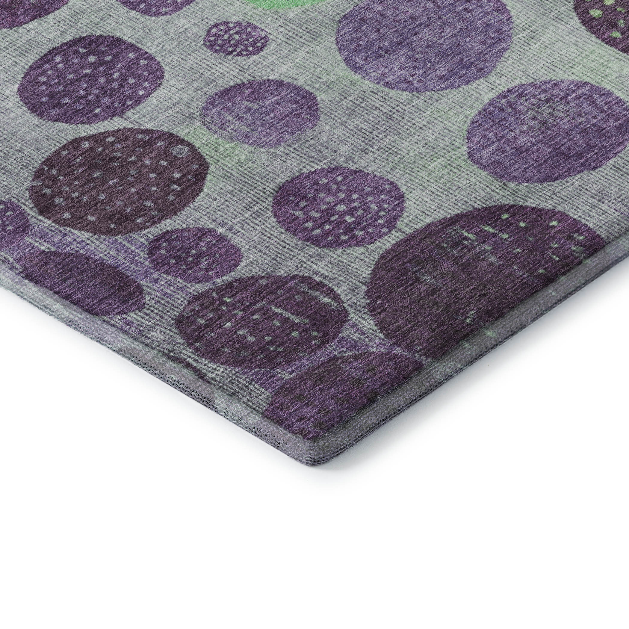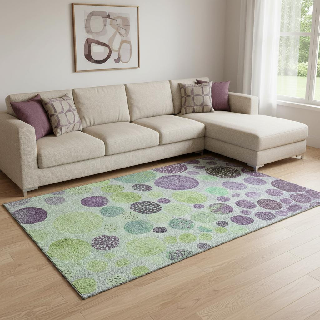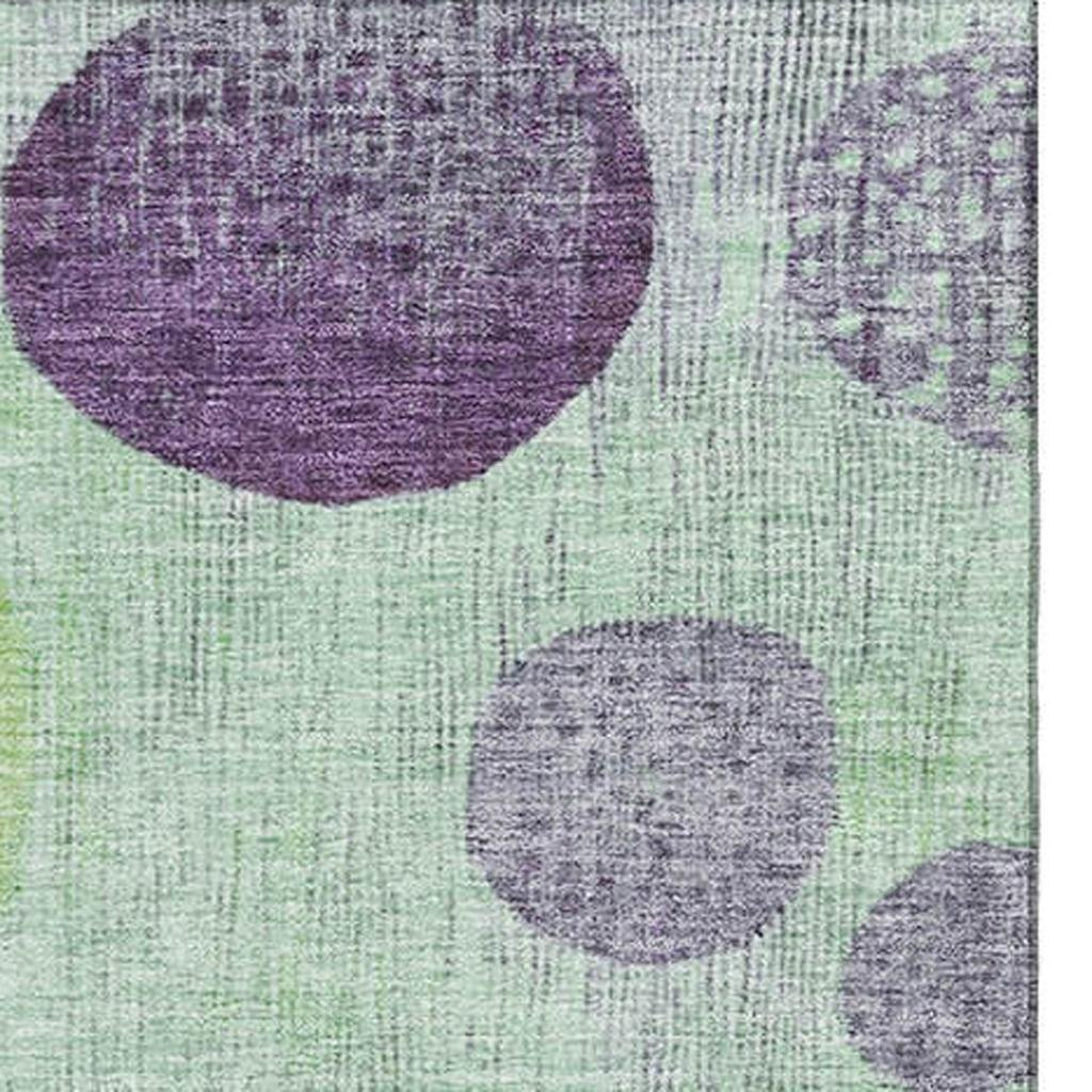 Add some artistry to your room with this 8-foot x 10-foot purple and green geometric washable area rug with uv protection. Ideal for spaces with kids and pets, this rug is stain resistant to help repel dirt and spilled liquids. Built to last, this rug crafted from polyester fibers is known for its durability and long lasting appeal. Rugs are a great way to showcase your style, hide imperfections, warm your home and reduce noise. This larger sized, transitional styled rug is ready to create a focal point or statement piece in your room. 96.00-inch h x 120.00-inch w x 0.39-inch d.