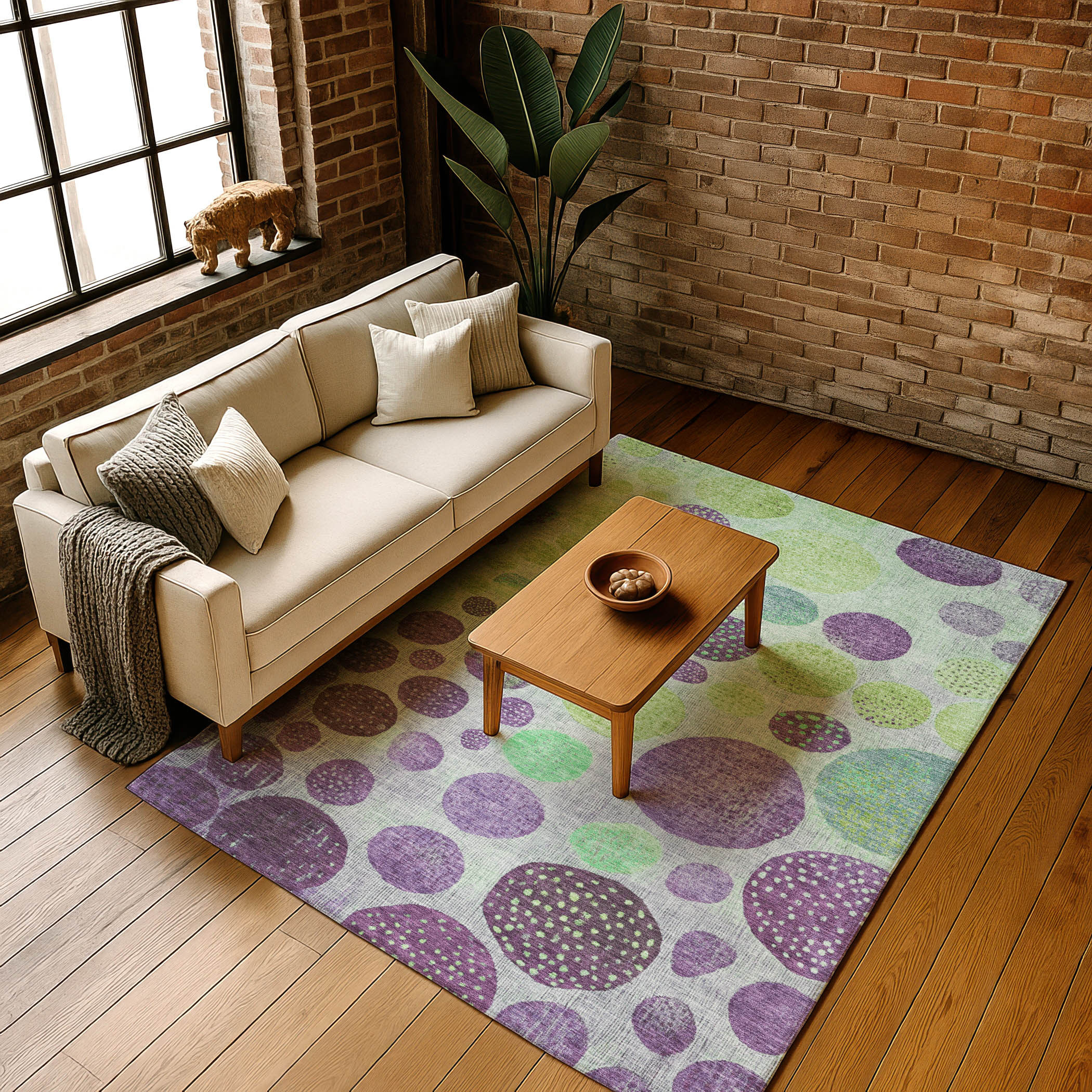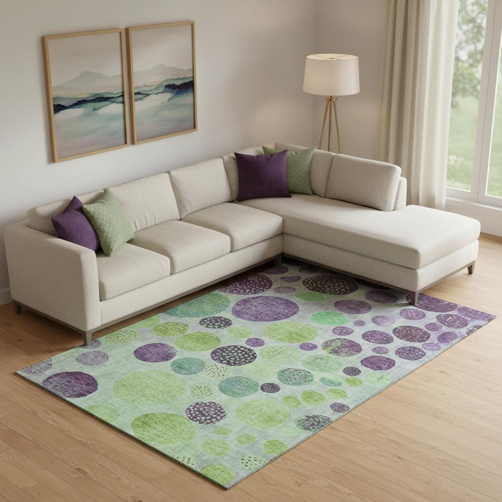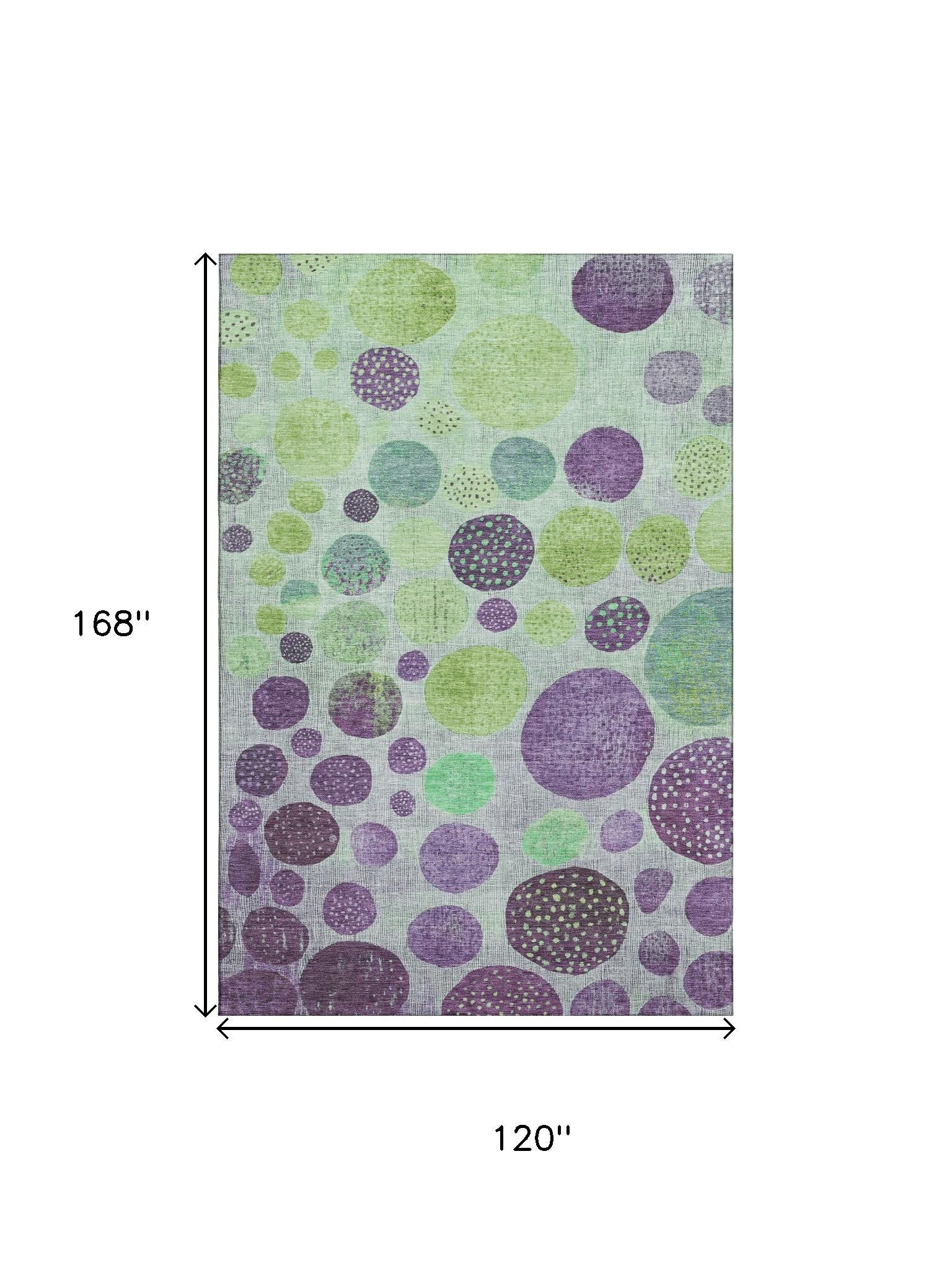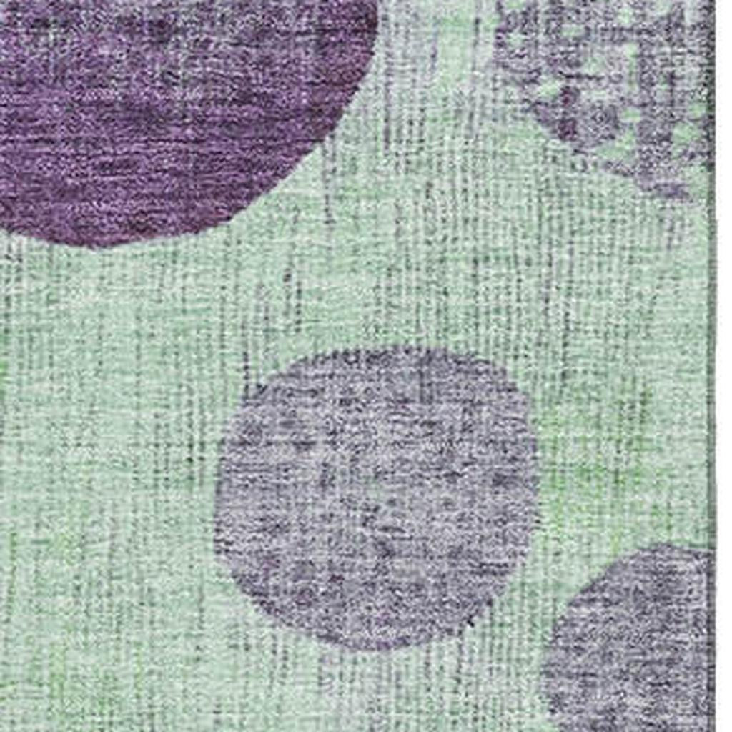 Set an inviting tone in your space with this 10-foot x 14-foot purple and green geometric washable area rug with uv protection. Ideal for spaces with kids and pets, this rug is stain resistant to help repel dirt and spilled liquids. Built to last, this rug crafted from polyester fibers is known for its durability and long lasting appeal. Rugs are a great way to showcase your style, hide imperfections, warm your home and reduce noise. This larger sized, transitional styled rug is ready to create a focal point or statement piece in your room. 120.00-inch h x 168.00-inch w x 0.39-inch d.