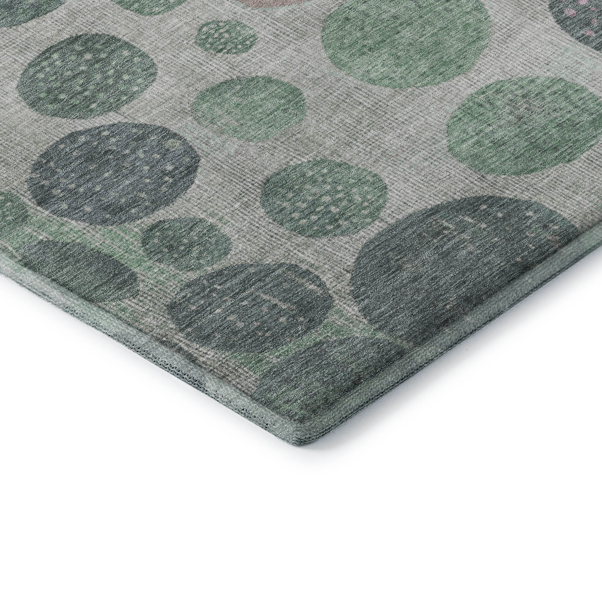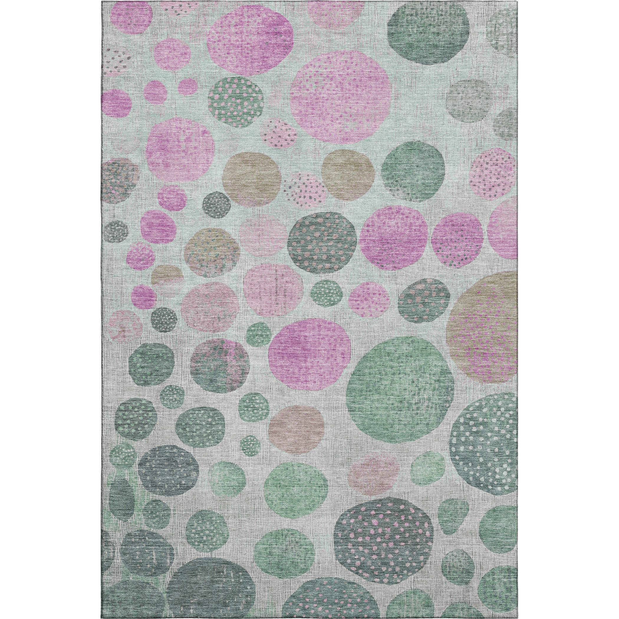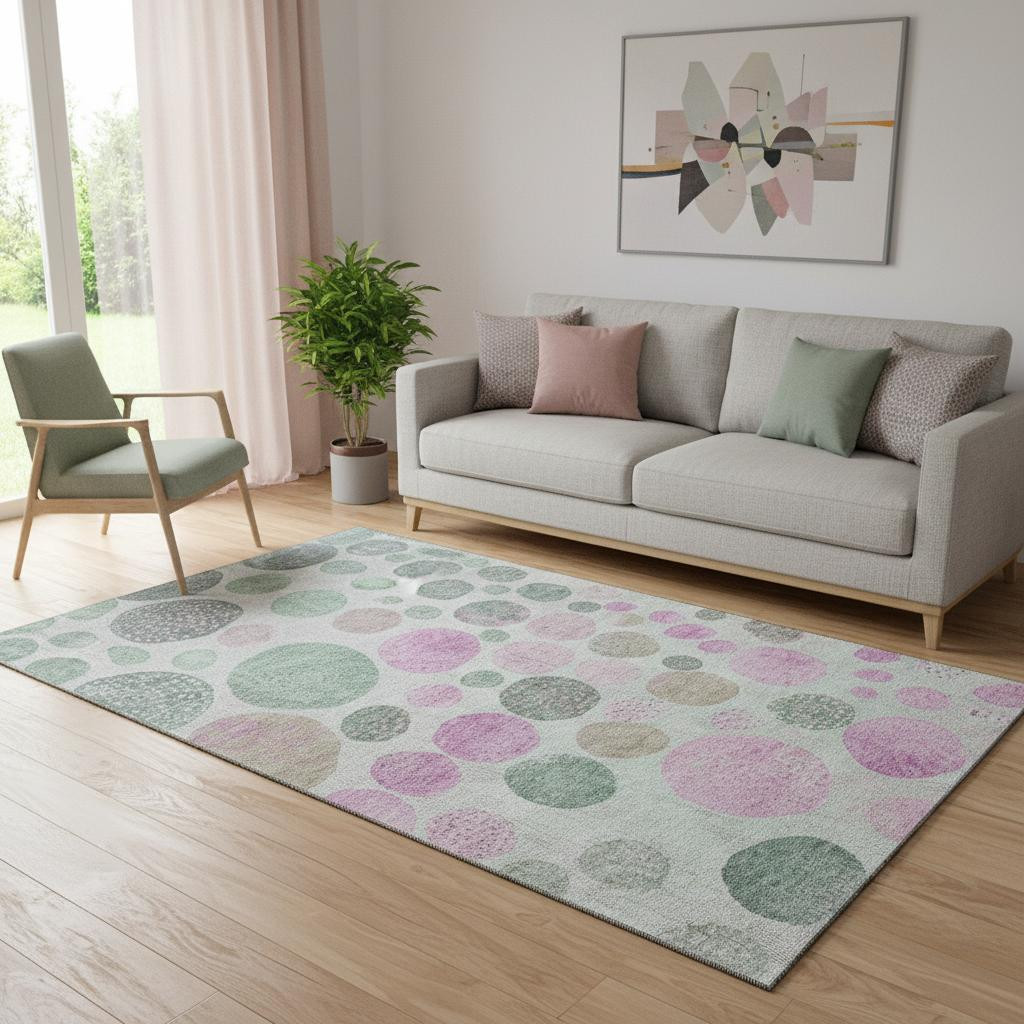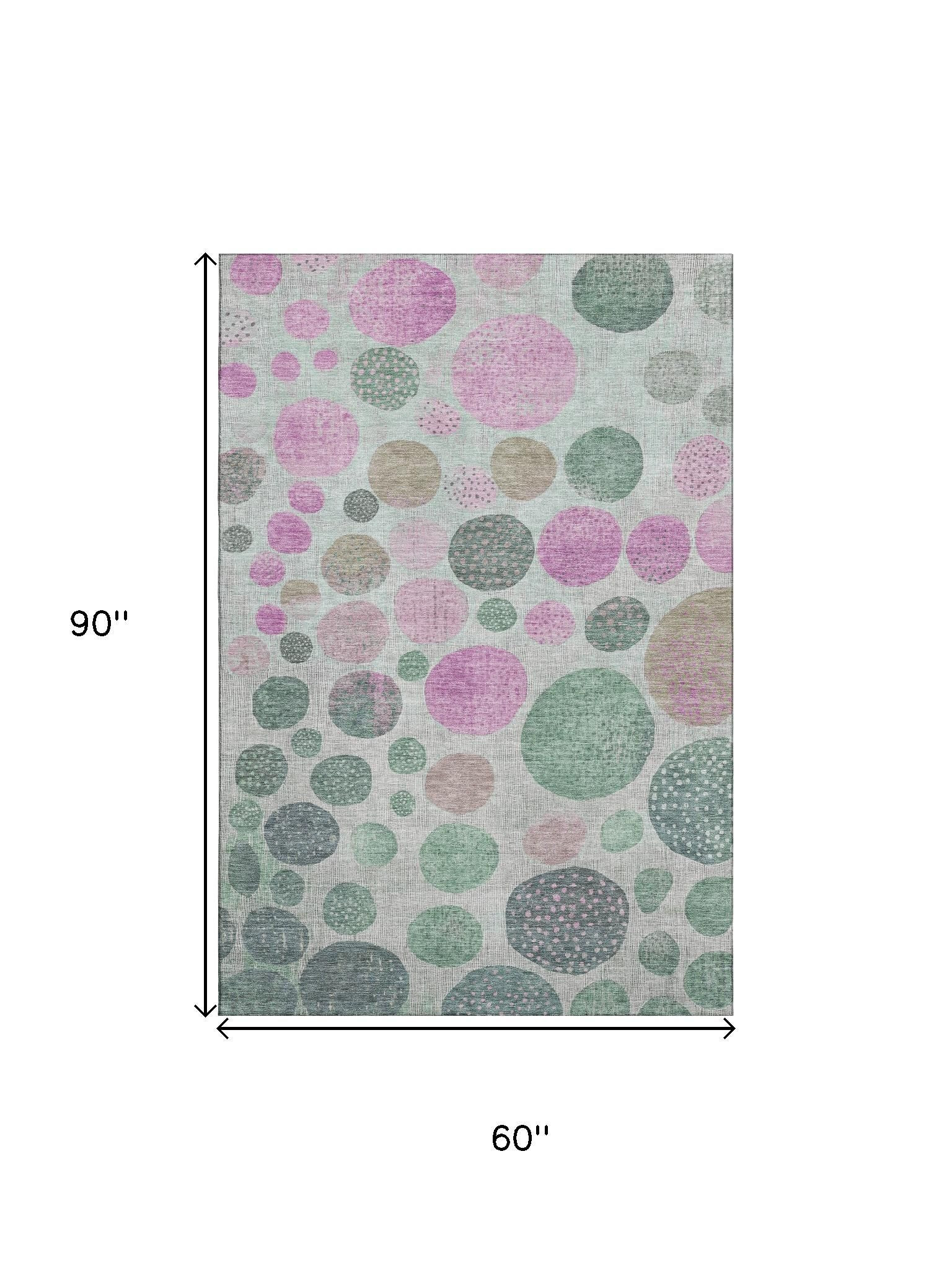 Add some artistry to your room with this 5-foot x 8-foot sage and blush geometric washable area rug with uv protection. Ideal for spaces with kids and pets, this rug is stain resistant to help repel dirt and spilled liquids. Built to last, this rug crafted from polyester fibers is known for its durability and long lasting appeal. Rugs are a great way to showcase your style, hide imperfections, warm your home and reduce noise. This larger sized, transitional styled rug is ready to create a focal point or statement piece in your room. 60.00-inch h x 90.00-inch w x 0.39-inch d.