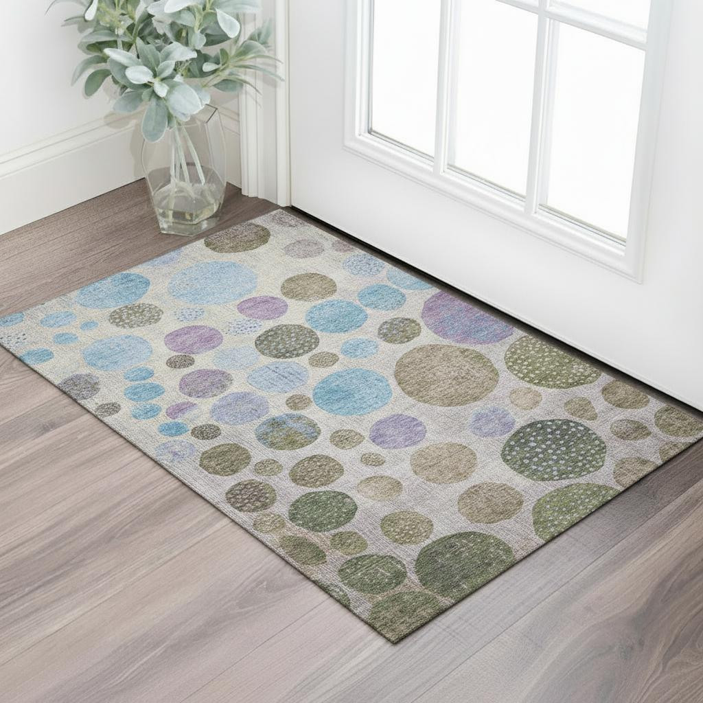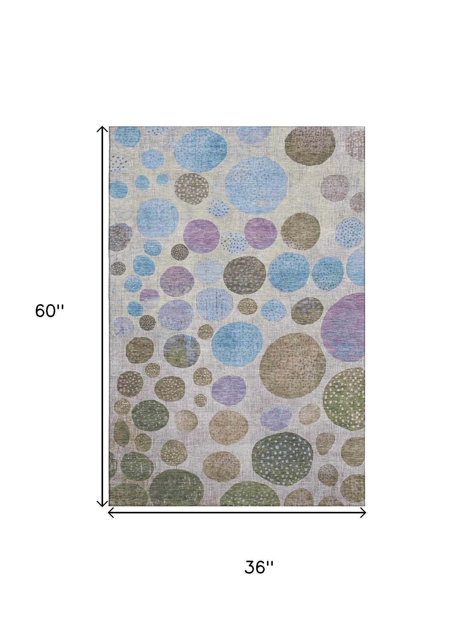 Add great coloration and comfortable texture to your space with this 3-foot x 5-foot taupe blue and beige geometric washable area rug with uv protection. Ideal for spaces with kids and pets, this rug is stain resistant to help repel dirt and spilled liquids. Built to last, this rug crafted from polyester fibers is known for its durability and long lasting appeal. Rugs are a great way to showcase your style, hide imperfections, warm your home and reduce noise. This smaller sized, transitional styled rug is just what you need for your walkway, bedside, in front of door, cabinet, refrigerator, or chair. 36.00-inch h x 60.00-inch w x 0.39-inch d.