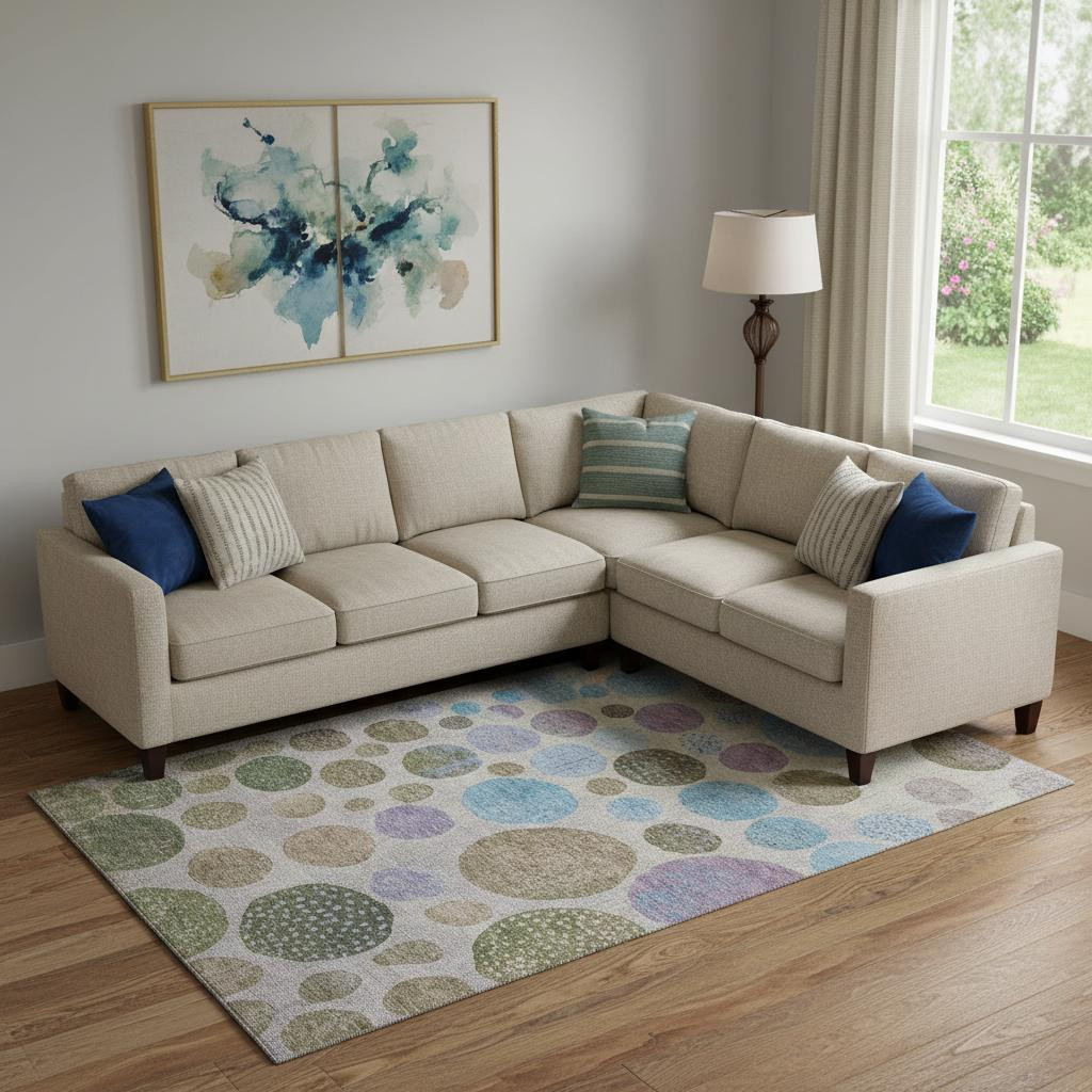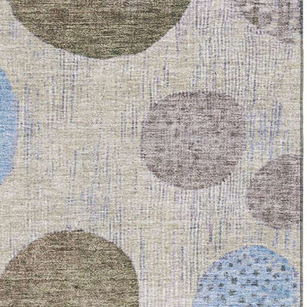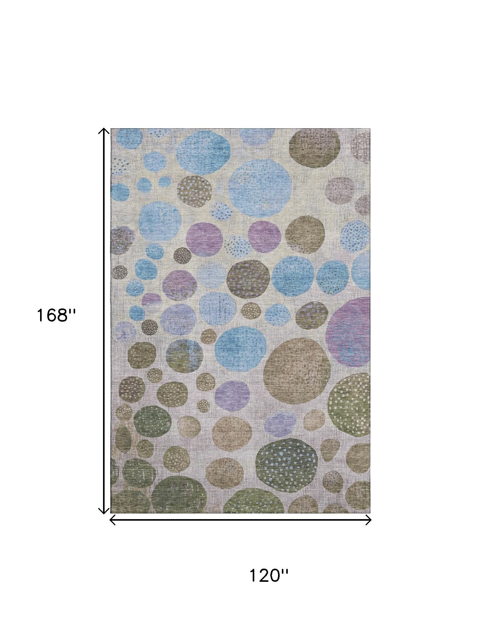 Add some artistry to your room with this 10-foot x 14-foot taupe blue and beige geometric washable area rug with uv protection. Ideal for spaces with kids and pets, this rug is stain resistant to help repel dirt and spilled liquids. Built to last, this rug crafted from polyester fibers is known for its durability and long lasting appeal. Rugs are a great way to showcase your style, hide imperfections, warm your home and reduce noise. This larger sized, transitional styled rug is ready to create a focal point or statement piece in your room. 120.00-inch h x 168.00-inch w x 0.39-inch d.
