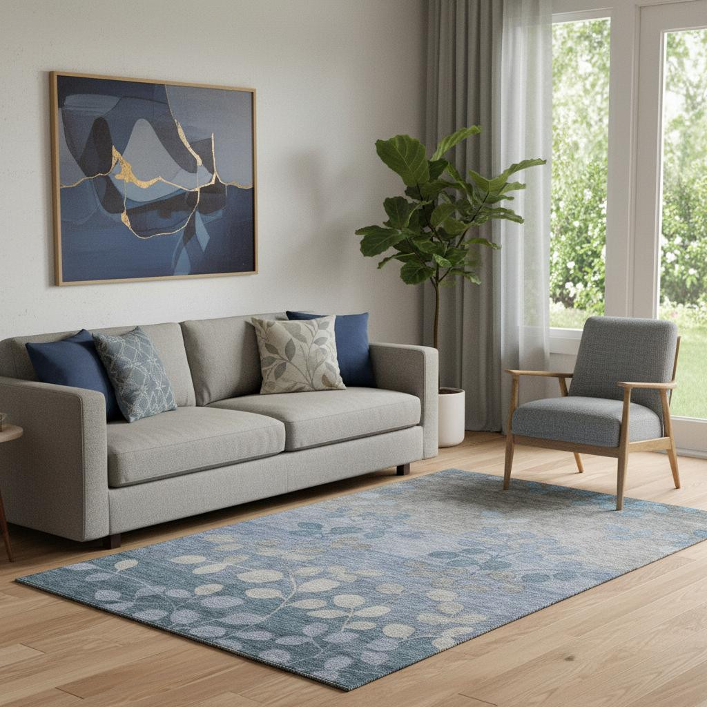 Set an inviting tone in your space with this 5-foot x 8-foot denim blue and gray floral washable area rug with uv protection. Ideal for spaces with kids and pets, this rug is stain resistant to help repel dirt and spilled liquids. Built to last, this rug crafted from polyester fibers is known for its durability and long lasting appeal. Rugs are a great way to showcase your style, hide imperfections, warm your home and reduce noise. This larger sized, transitional styled rug is ready to create a focal point or statement piece in your room. 60.00-inch h x 90.00-inch w x 0.39-inch d.