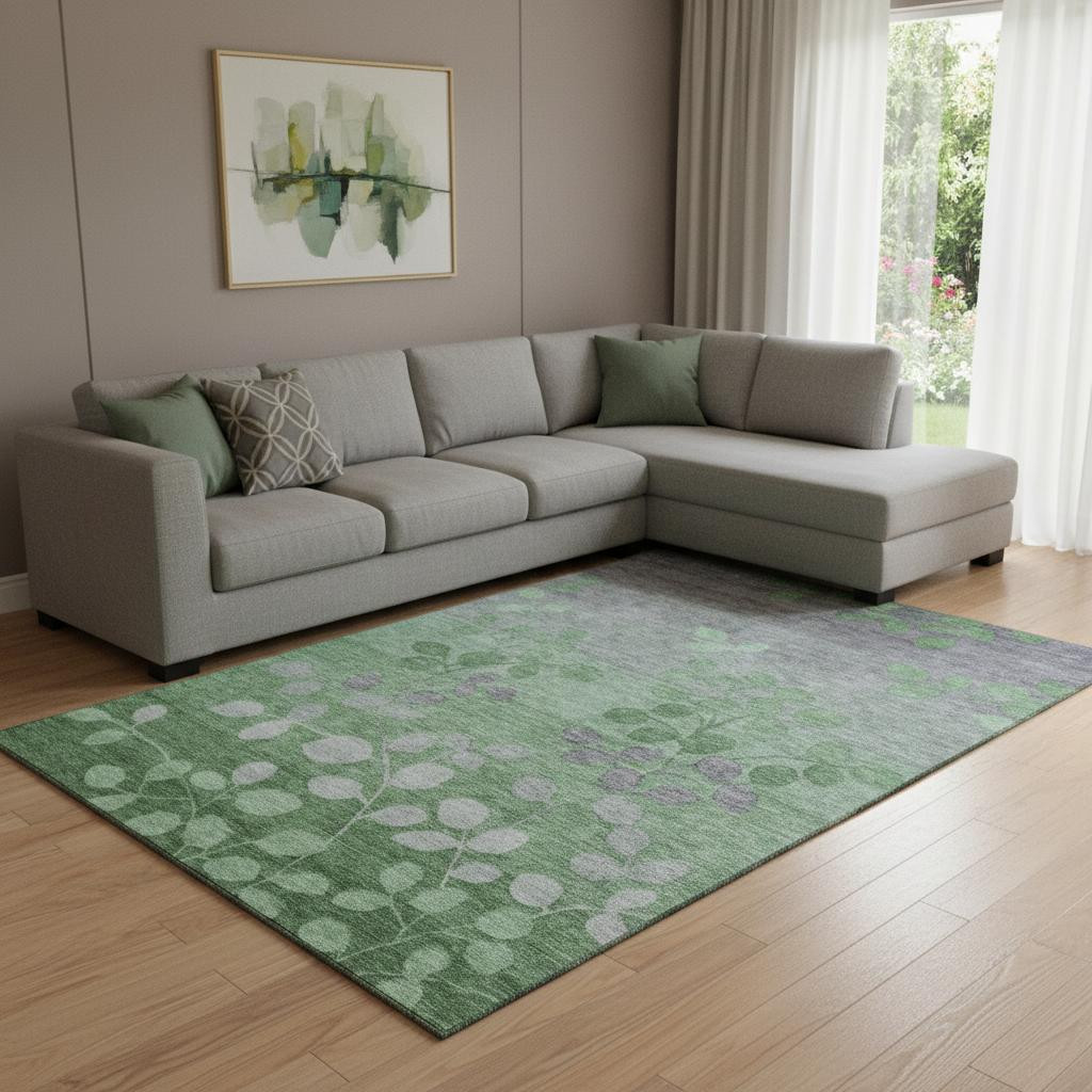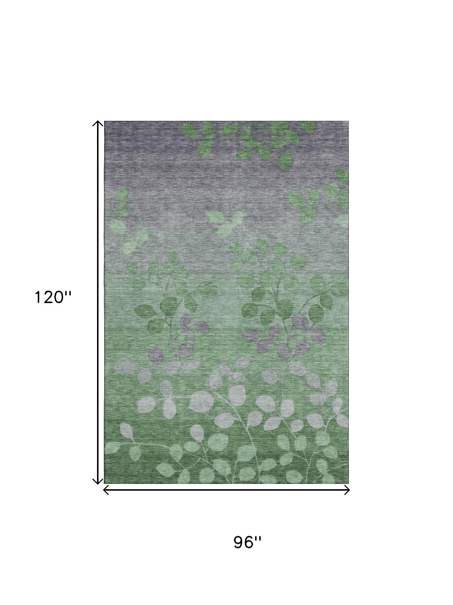 Set an inviting tone in your space with this 8-foot x 10-foot green and gray floral washable area rug with uv protection. Ideal for spaces with kids and pets, this rug is stain resistant to help repel dirt and spilled liquids. Built to last, this rug crafted from polyester fibers is known for its durability and long lasting appeal. Rugs are a great way to showcase your style, hide imperfections, warm your home and reduce noise. This larger sized, transitional styled rug is ready to create a focal point or statement piece in your room. 96.00-inch h x 120.00-inch w x 0.39-inch d.