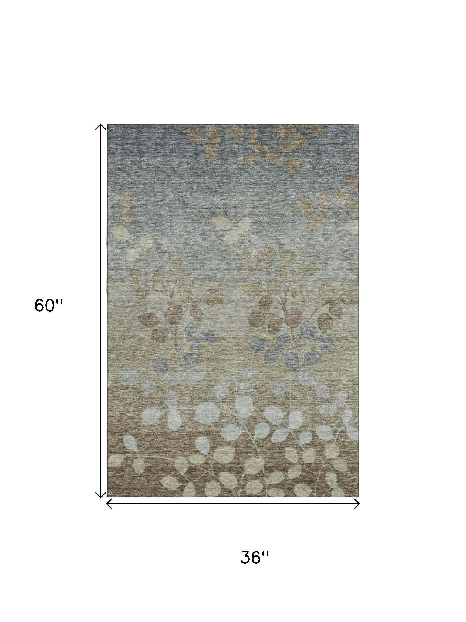Set an inviting tone in your space with this 3-foot x 5-foot khaki and gray floral washable area rug with uv protection. Ideal for spaces with kids and pets, this rug is stain resistant to help repel dirt and spilled liquids. Built to last, this rug crafted from polyester fibers is known for its durability and long lasting appeal. Rugs are a great way to showcase your style, hide imperfections, warm your home and reduce noise. This smaller sized, transitional styled rug is just what you need for your walkway, bedside, in front of door, cabinet, refrigerator, or chair. 36.00-inch h x 60.00-inch w x 0.39-inch d.