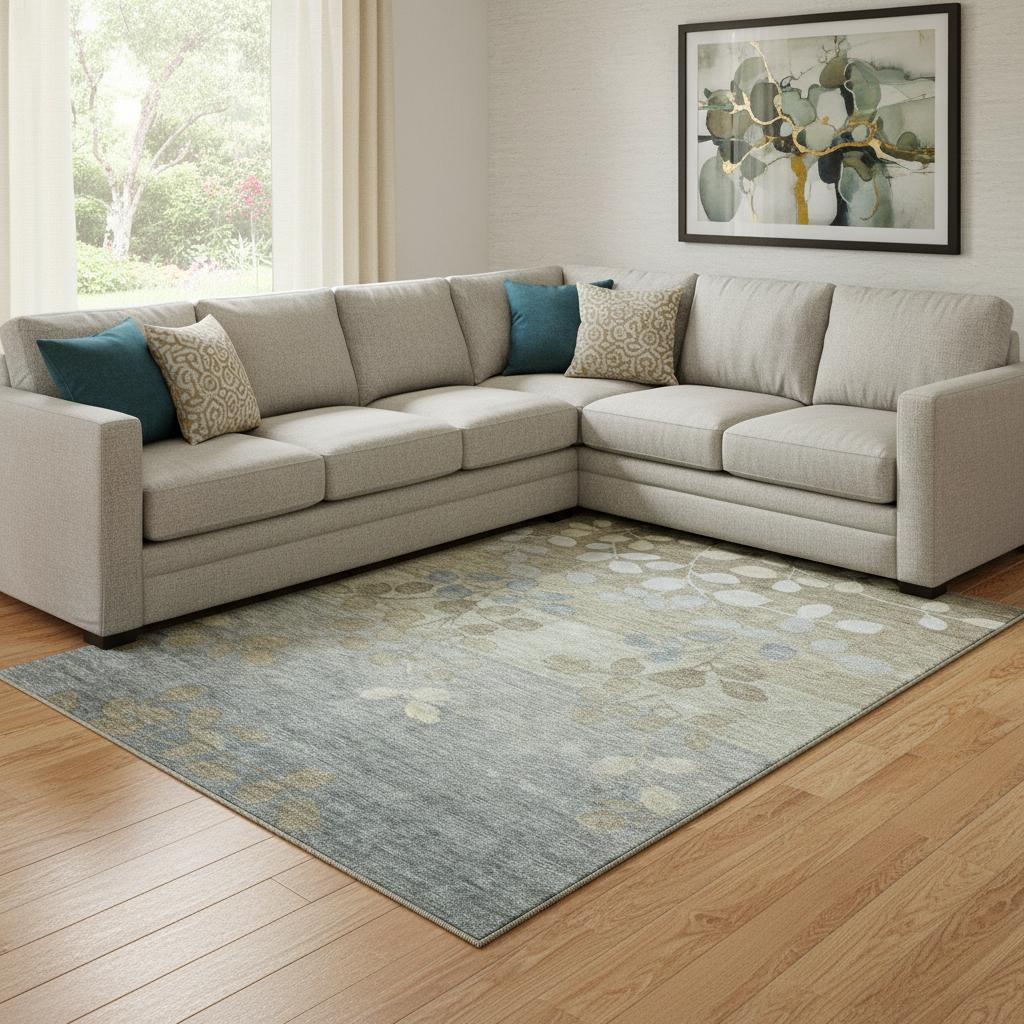 Set an inviting tone in your space with this 8-foot x 10-foot khaki and gray floral washable area rug with uv protection. Ideal for spaces with kids and pets, this rug is stain resistant to help repel dirt and spilled liquids. Built to last, this rug crafted from polyester fibers is known for its durability and long lasting appeal. Rugs are a great way to showcase your style, hide imperfections, warm your home and reduce noise. This larger sized, transitional styled rug is ready to create a focal point or statement piece in your room. 96.00-inch h x 120.00-inch w x 0.39-inch d.