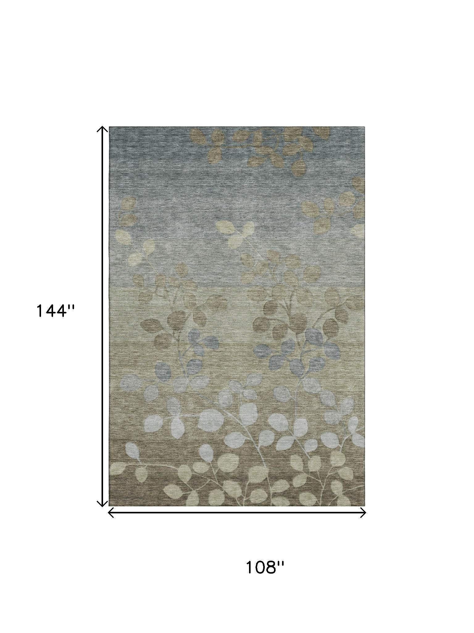 This 9-foot x 12-foot khaki and gray floral washable area rug with uv protection, is a great way to add warmth to a room. Ideal for spaces with kids and pets, this rug is stain resistant to help repel dirt and spilled liquids. Built to last, this rug crafted from polyester fibers is known for its durability and long lasting appeal. Rugs are a great way to showcase your style, hide imperfections, warm your home and reduce noise. This larger sized, transitional styled rug is ready to create a focal point or statement piece in your room. 108.00-inch h x 144.00-inch w x 0.39-inch d.