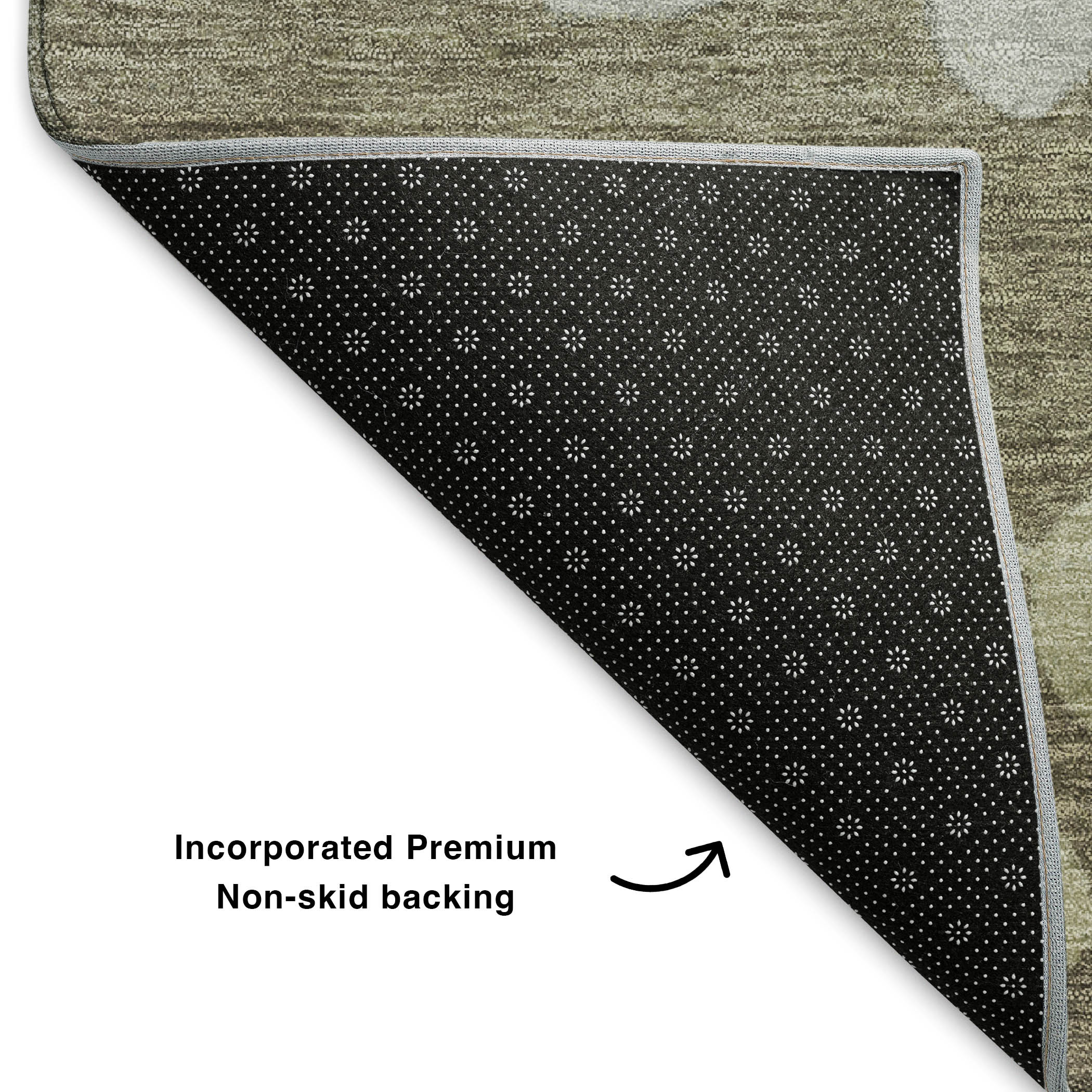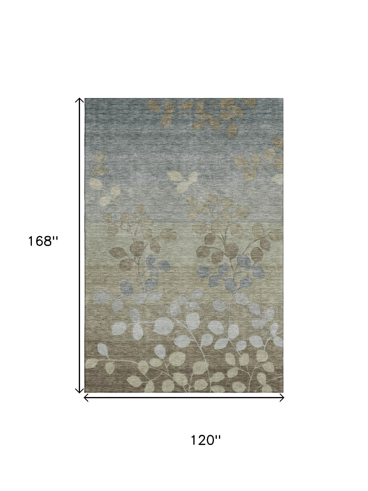 Set an inviting tone in your space with this 10-foot x 14-foot khaki and gray floral washable area rug with uv protection. Ideal for spaces with kids and pets, this rug is stain resistant to help repel dirt and spilled liquids. Built to last, this rug crafted from polyester fibers is known for its durability and long lasting appeal. Rugs are a great way to showcase your style, hide imperfections, warm your home and reduce noise. This larger sized, transitional styled rug is ready to create a focal point or statement piece in your room. 120.00-inch h x 168.00-inch w x 0.39-inch d.