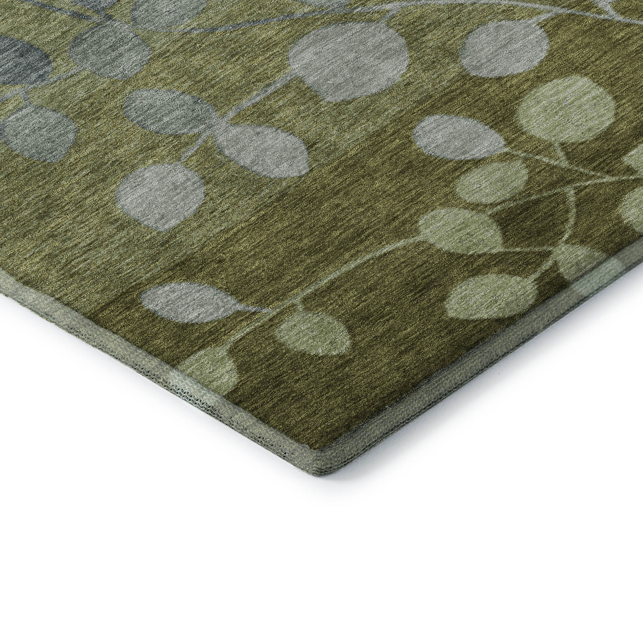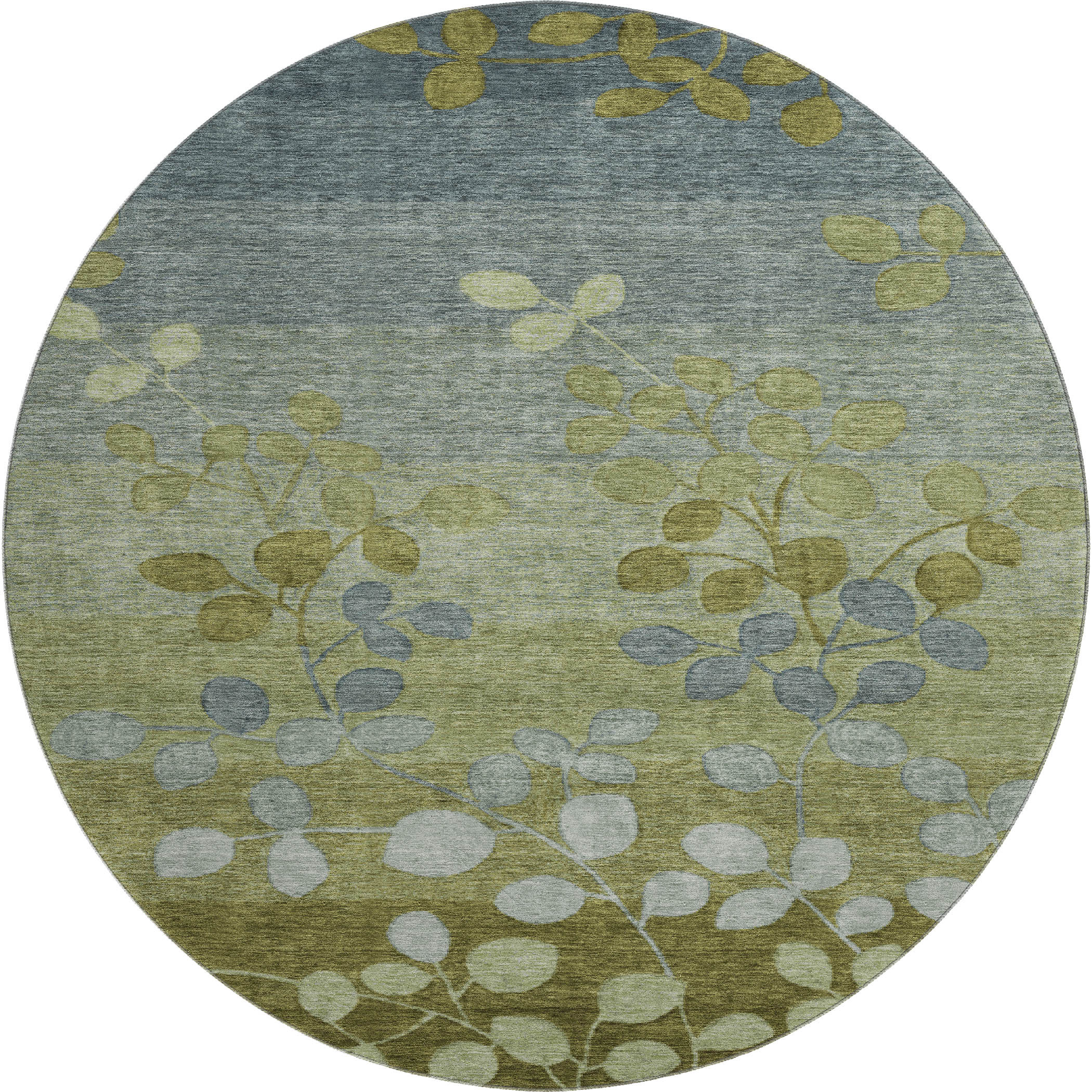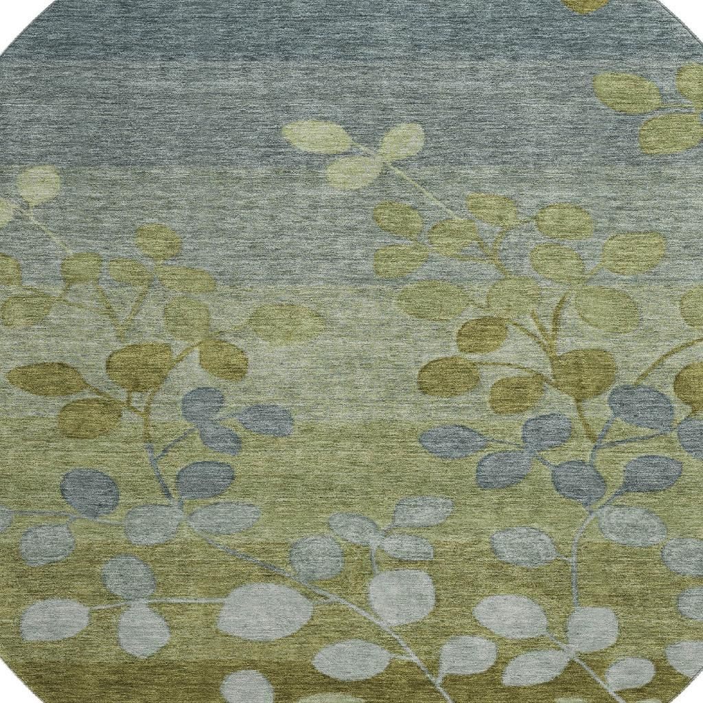 Add some artistry to your room with this 8-foot olive green and gray floral washable round rug with uv protection. Ideal for spaces with kids and pets, this rug is stain resistant to help repel dirt and spilled liquids. Built to last, this rug crafted from polyester fibers is known for its durability and long lasting appeal. Rugs are a great way to showcase your style, hide imperfections, warm your home and reduce noise. This larger sized, transitional styled rug is ready to create a focal point or statement piece in your room. 96.00-inch h x 96.00-inch w x 0.39-inch d.