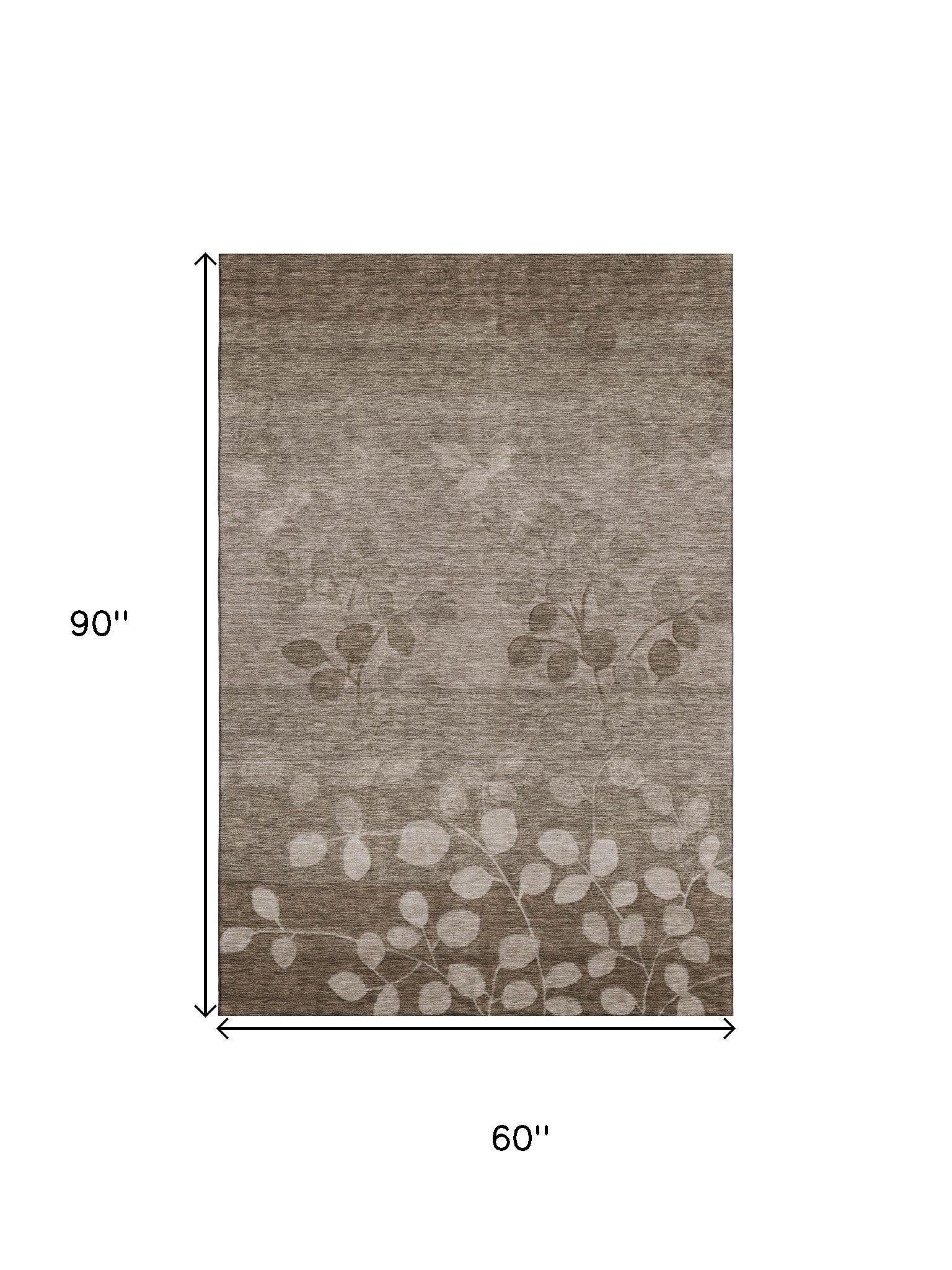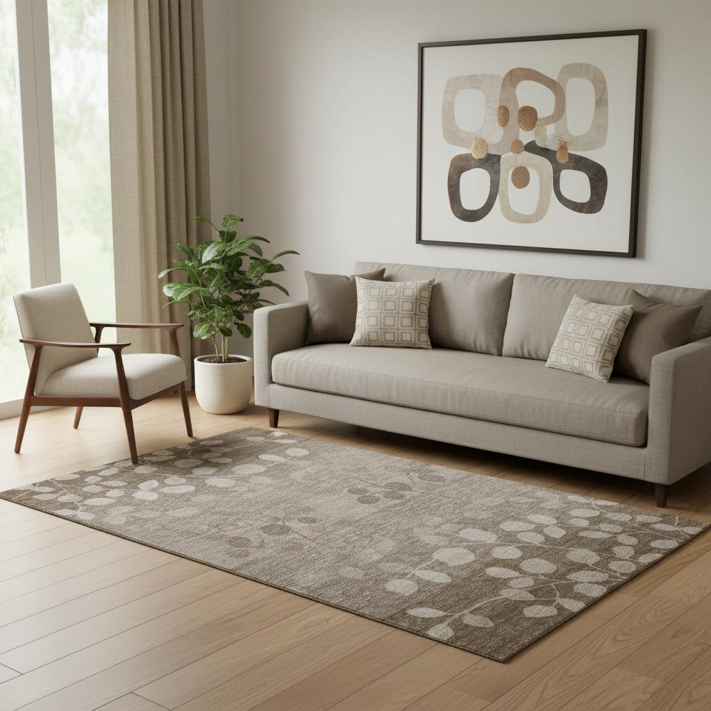 Add some artistry to your room with this 5-foot x 8-foot taupe and beige floral washable area rug with uv protection. Ideal for spaces with kids and pets, this rug is stain resistant to help repel dirt and spilled liquids. Built to last, this rug crafted from polyester fibers is known for its durability and long lasting appeal. Rugs are a great way to showcase your style, hide imperfections, warm your home and reduce noise. This larger sized, transitional styled rug is ready to create a focal point or statement piece in your room. 60.00-inch h x 90.00-inch w x 0.39-inch d.