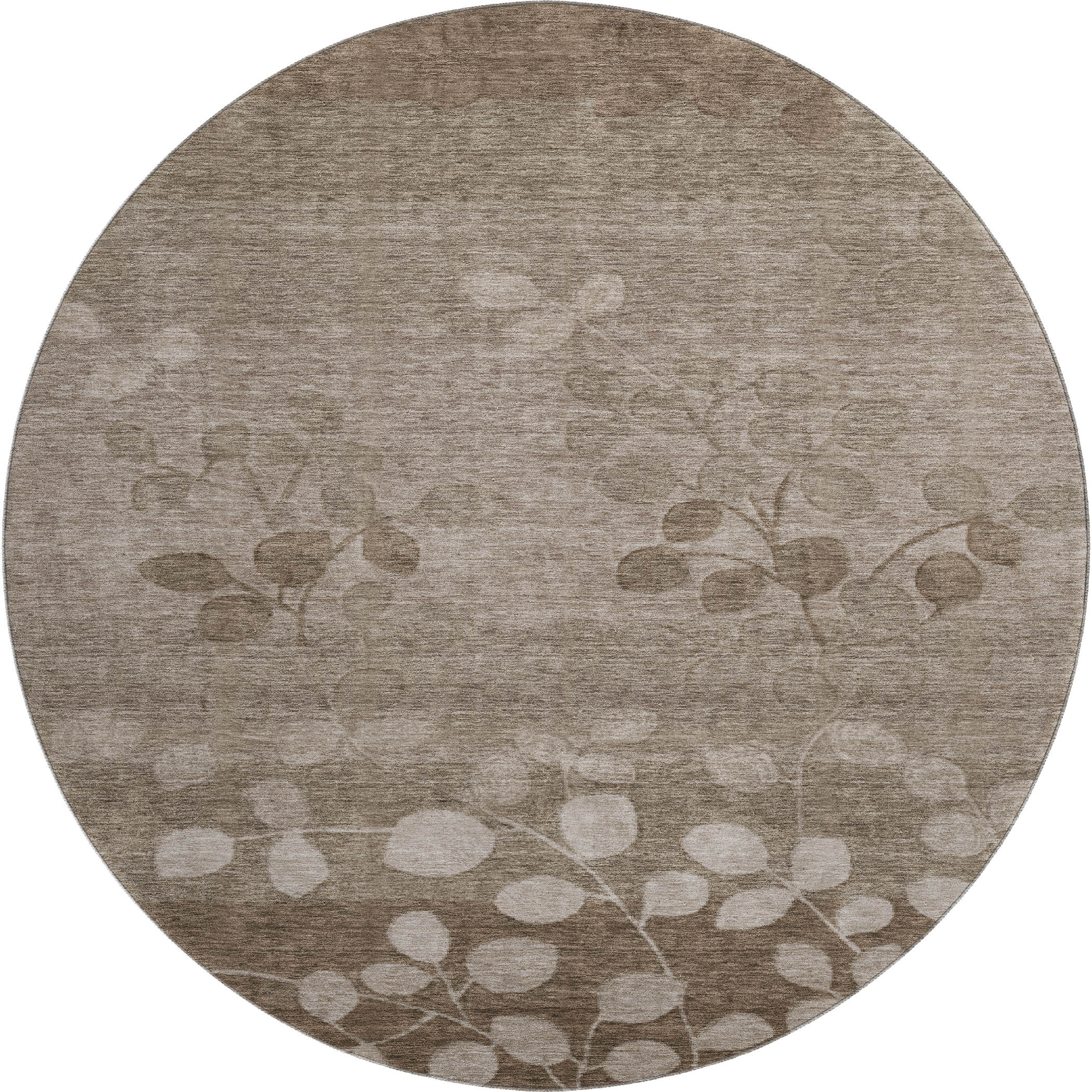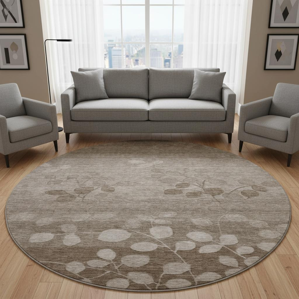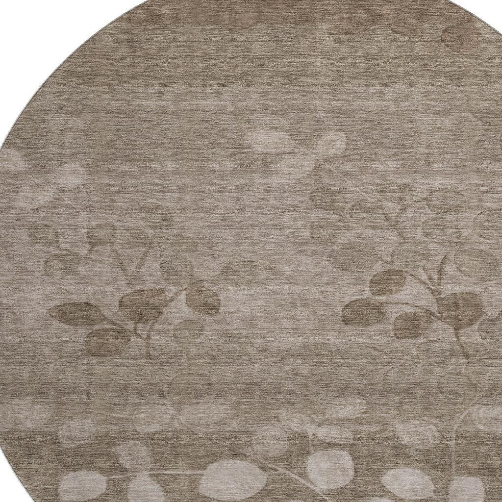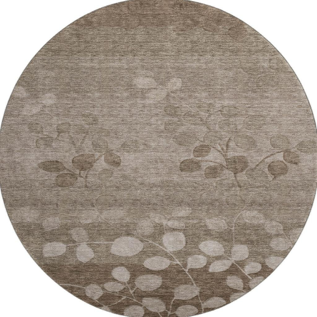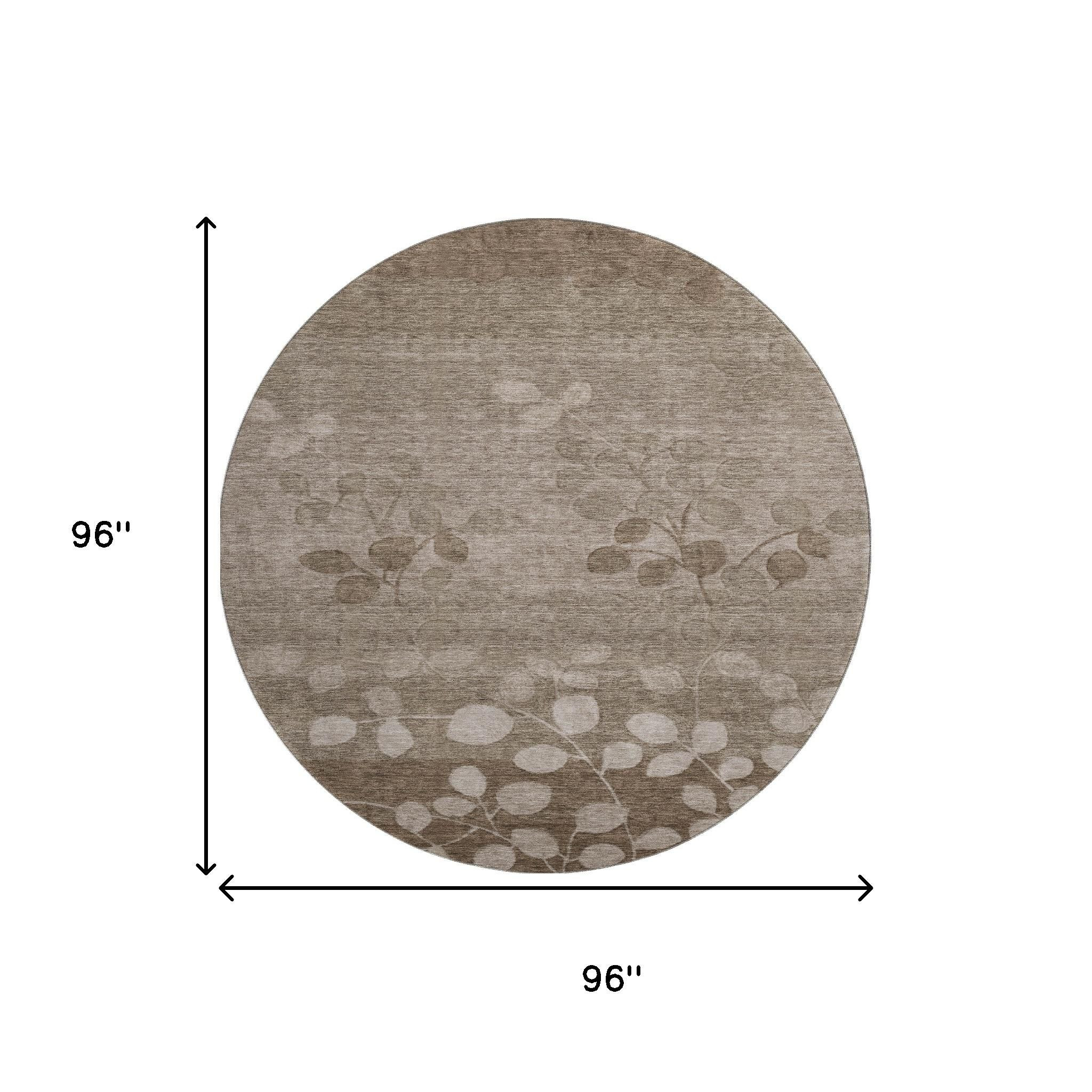 This 8-foot taupe and beige floral washable round rug with uv protection, is a great way to add warmth to a room. Ideal for spaces with kids and pets, this rug is stain resistant to help repel dirt and spilled liquids. Built to last, this rug crafted from polyester fibers is known for its durability and long lasting appeal. Rugs are a great way to showcase your style, hide imperfections, warm your home and reduce noise. This larger sized, transitional styled rug is ready to create a focal point or statement piece in your room. 96.00-inch h x 96.00-inch w x 0.39-inch d.